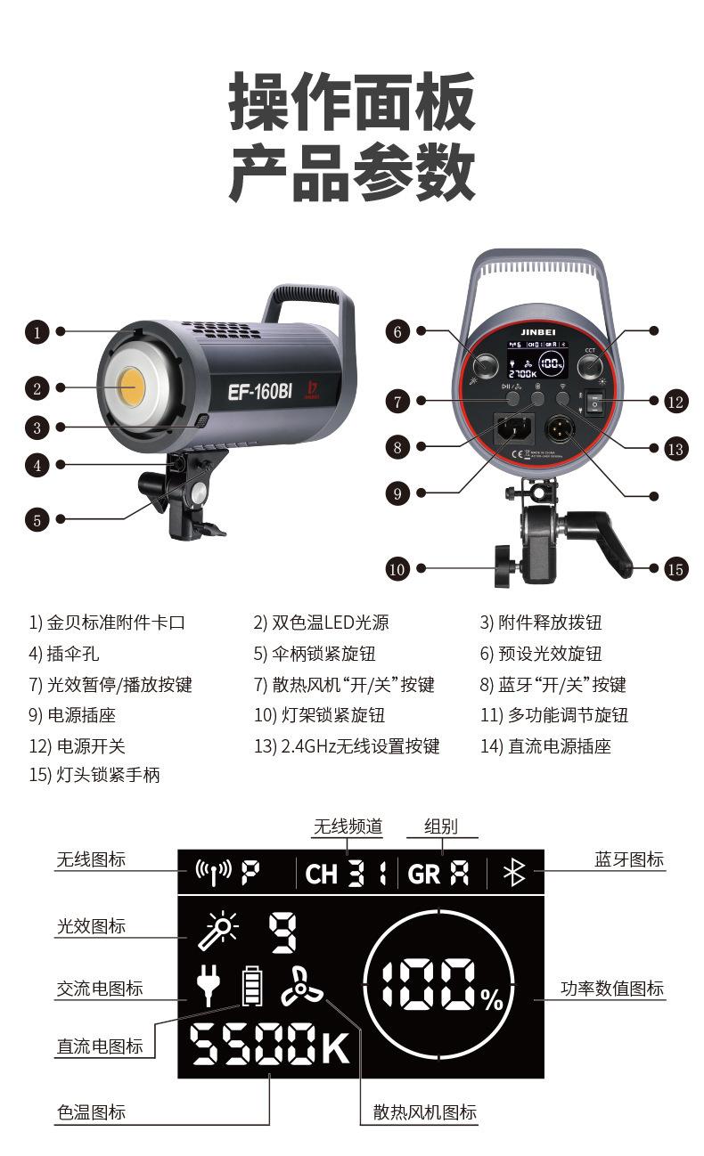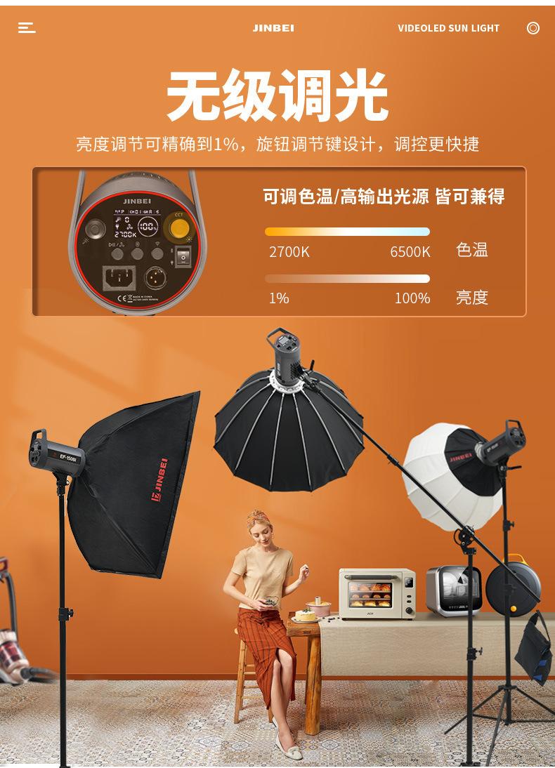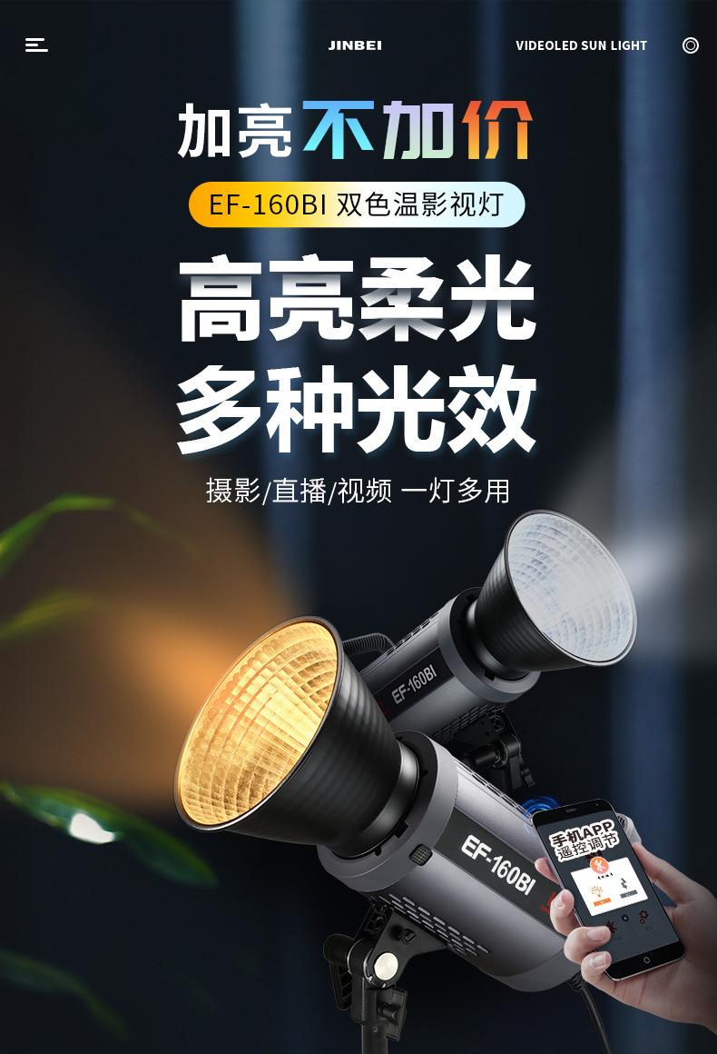 Luz LED para fotografía Jinbei EF-160BI con temperatura de color ajustable, luz en vivo, luz para cámara de video, luz esférica suave