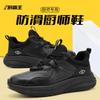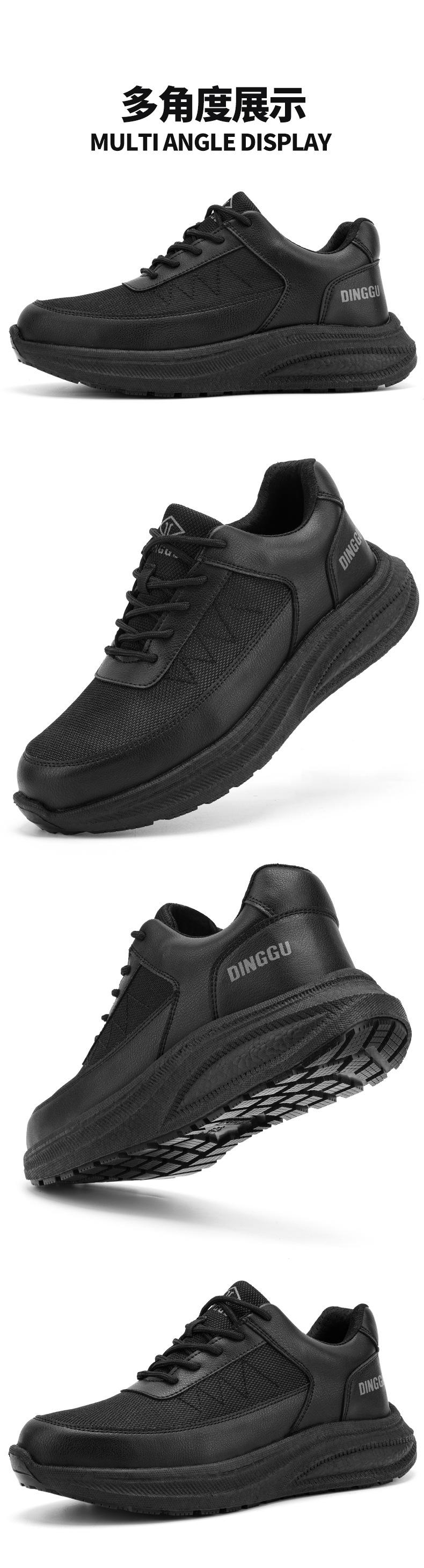 Zapatos de Chef Dinggu para Hombre, Zapatos de Cocina Impermeables y Resistentes al Aceite, Zapatos de Protección Laboral para Hombre, Zapatos de Trabajo de Cuero con Plataforma Negra con Cordones para Hotel