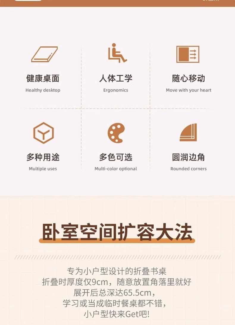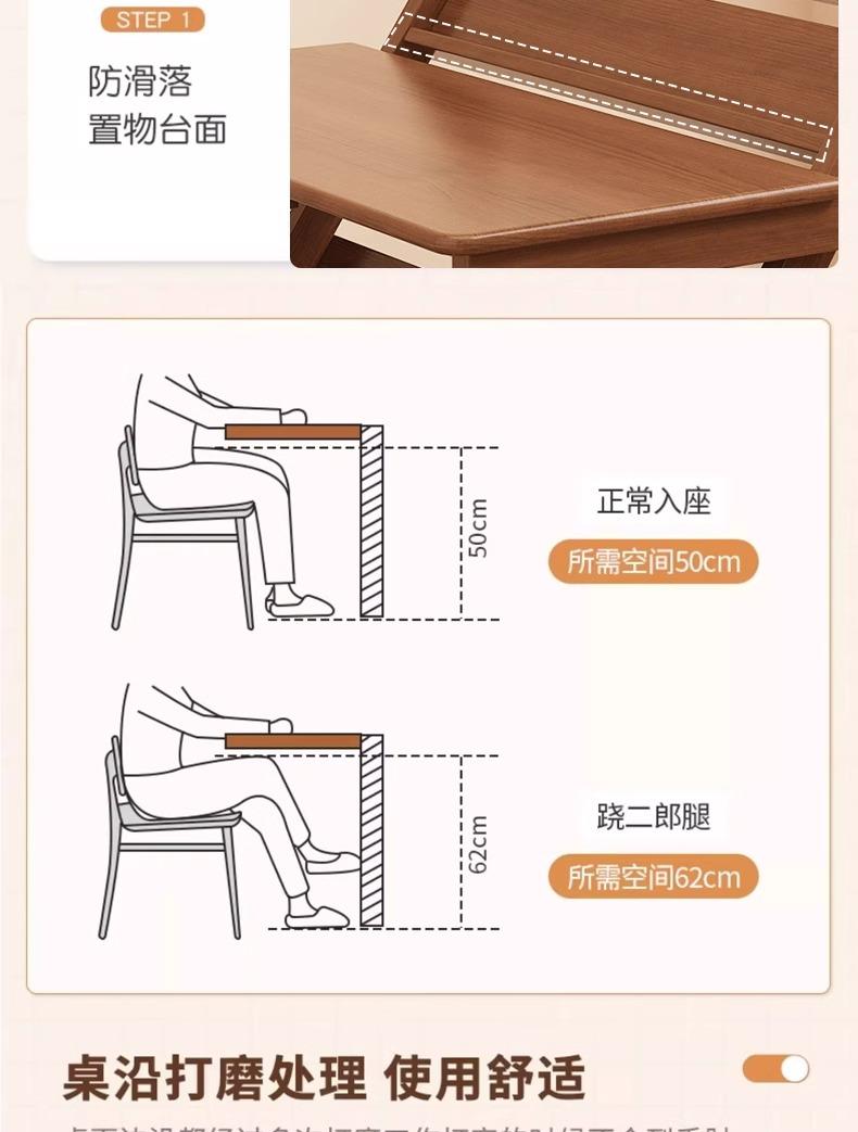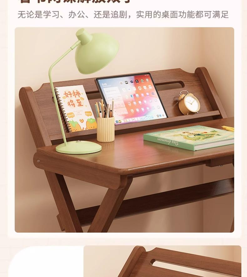 [solid wood adjustable upgraded version] folding desk + upholstered chair - solid wood color 60cm