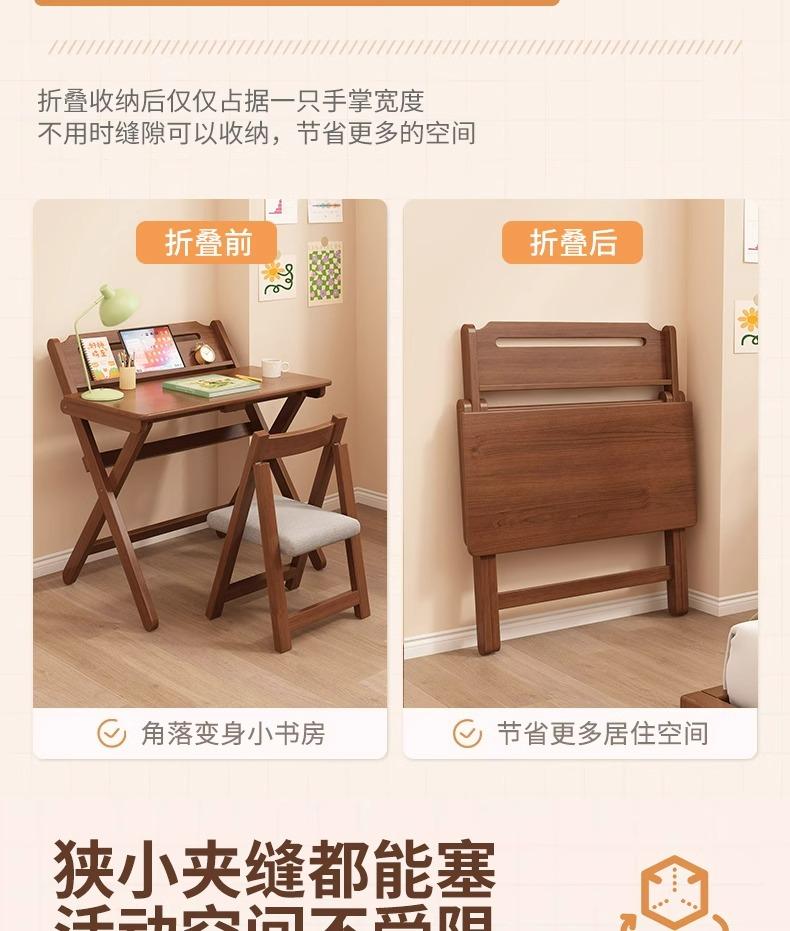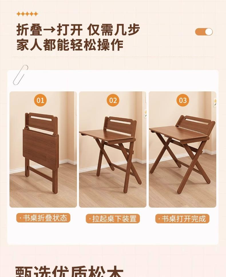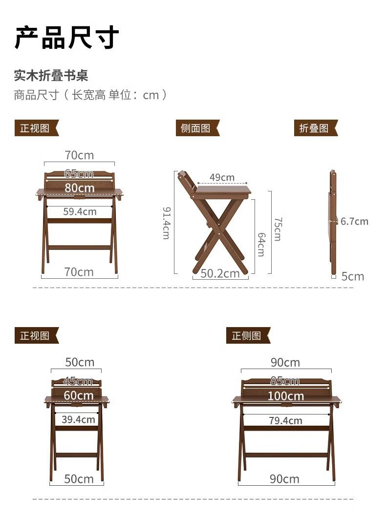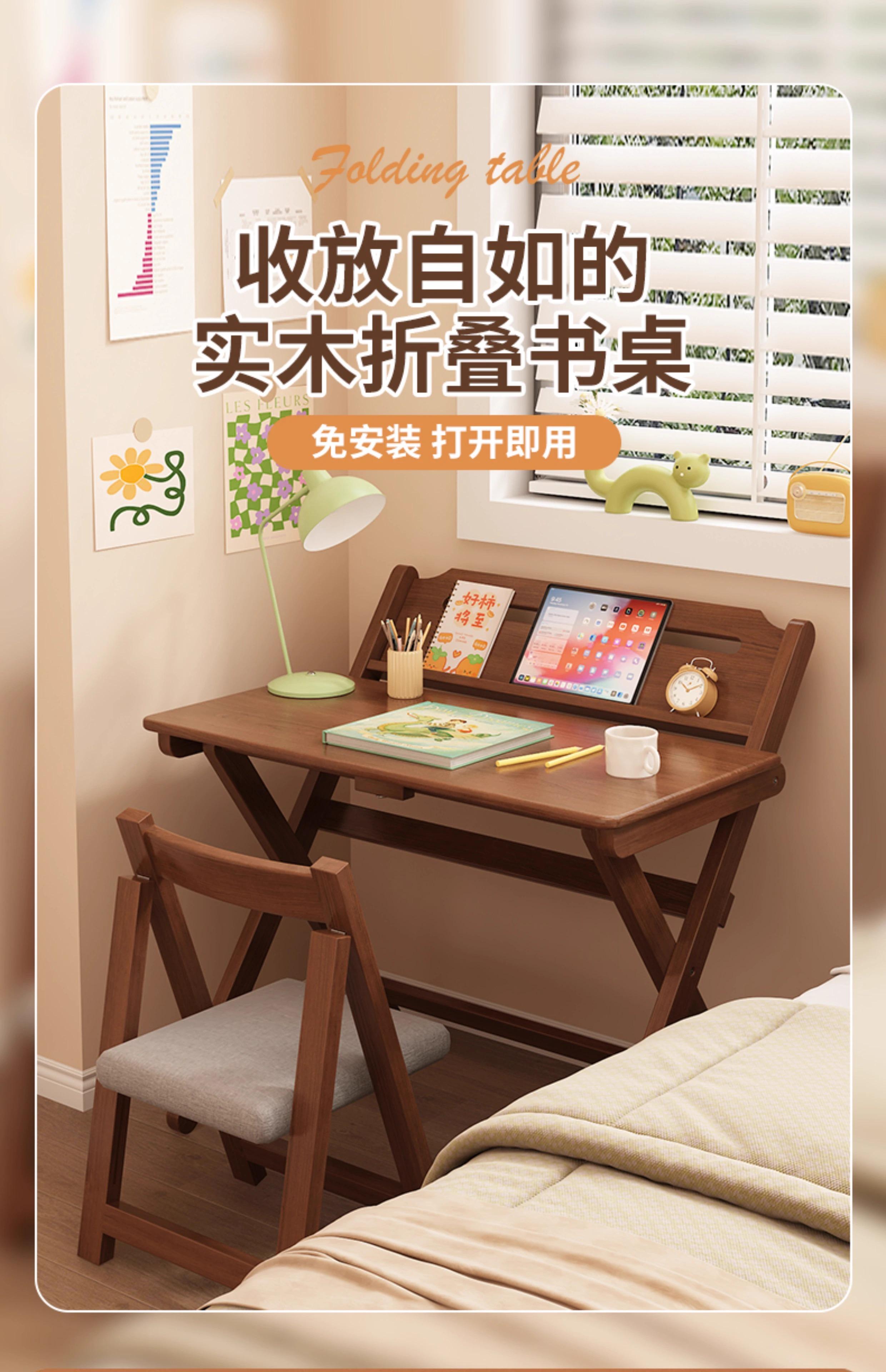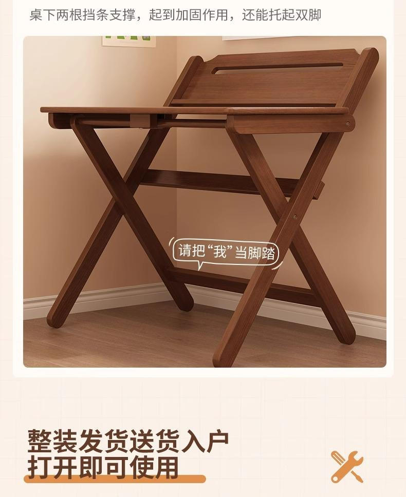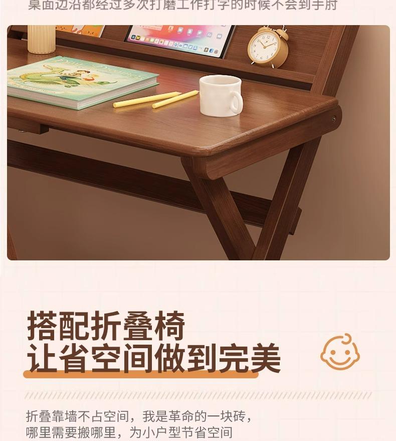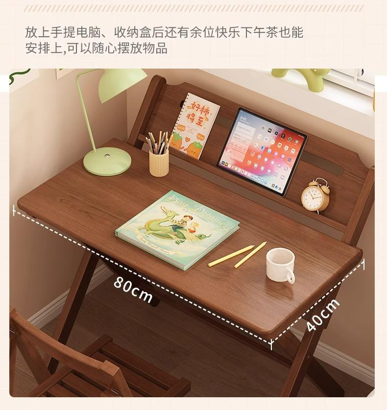 [solid wood adjustable upgraded version] folding desk + upholstered chair - solid wood color 80cm
