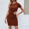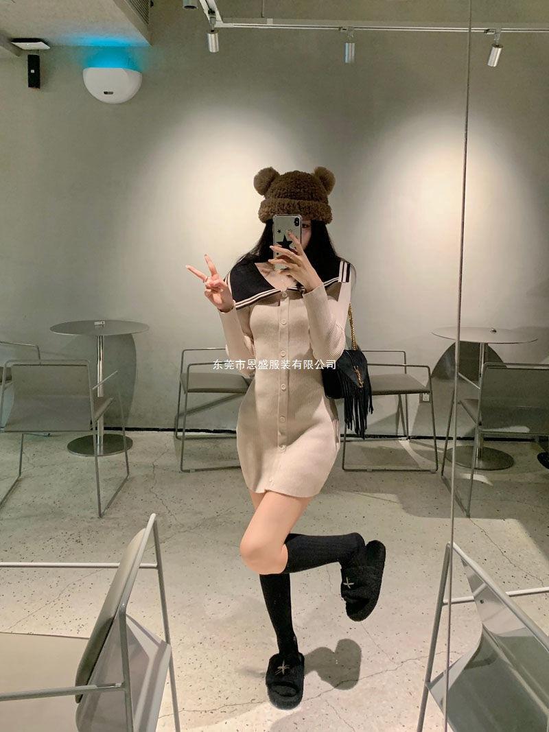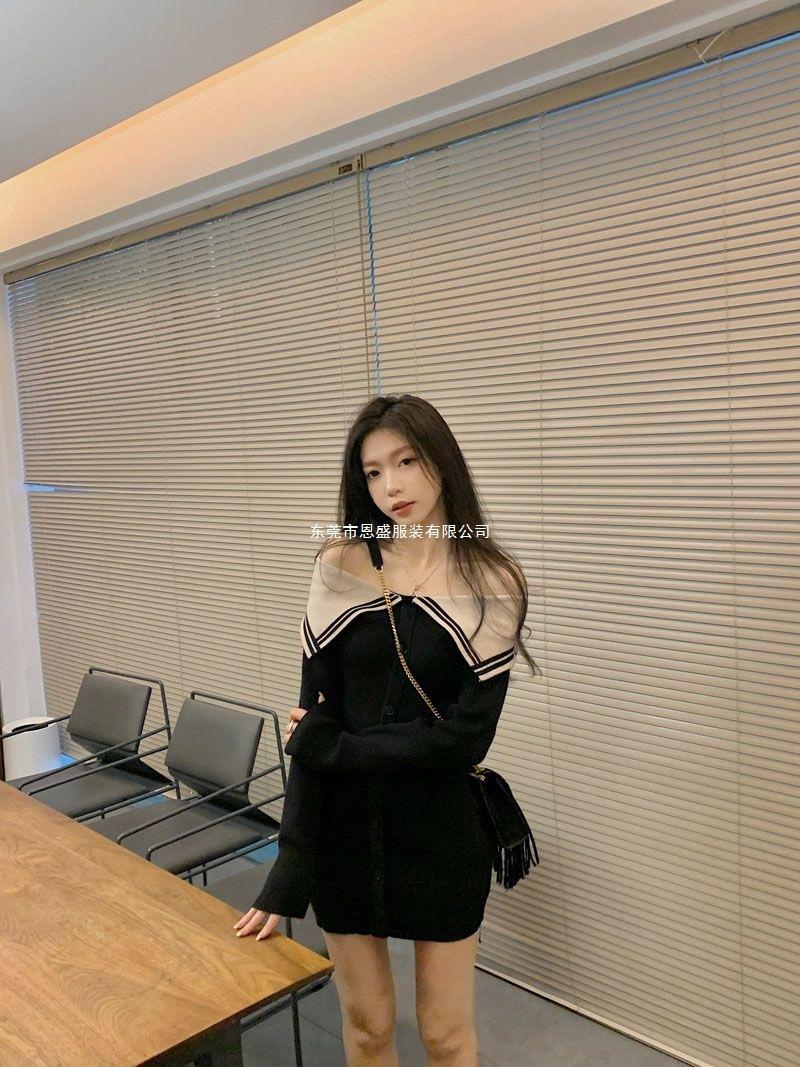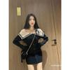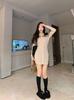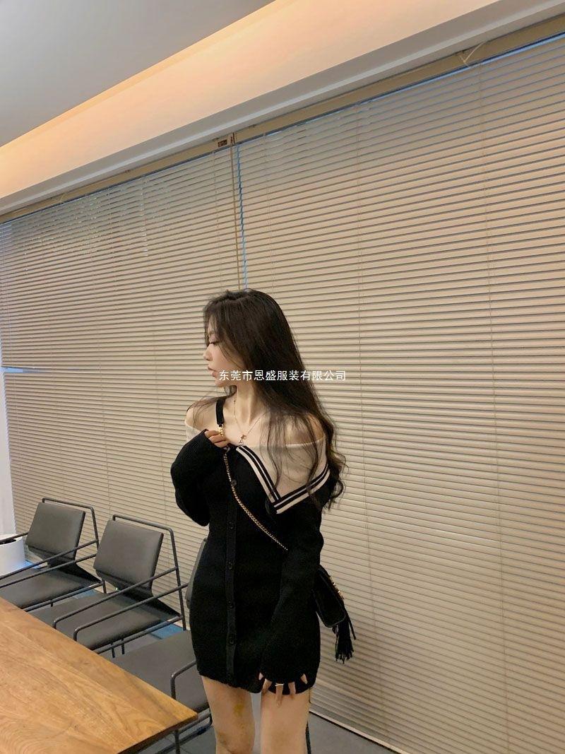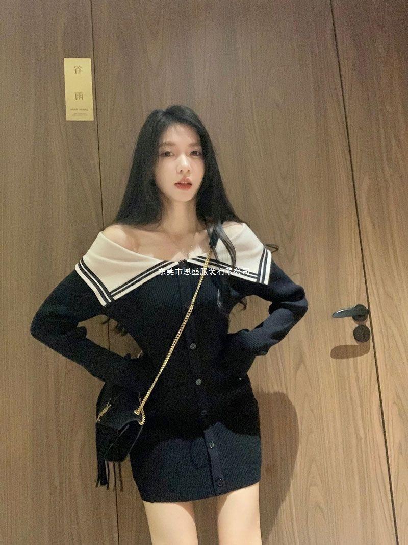 Vestido de punto de un solo hombro para mujer, sexy, con hombros descubiertos, manga larga, falda inferior, nueva falda de primavera con aspecto adelgazante.
