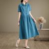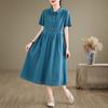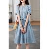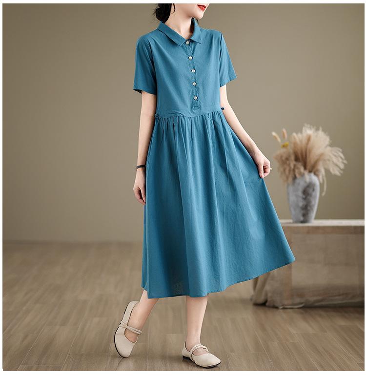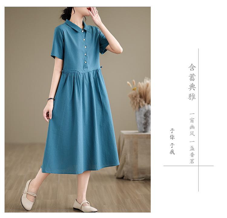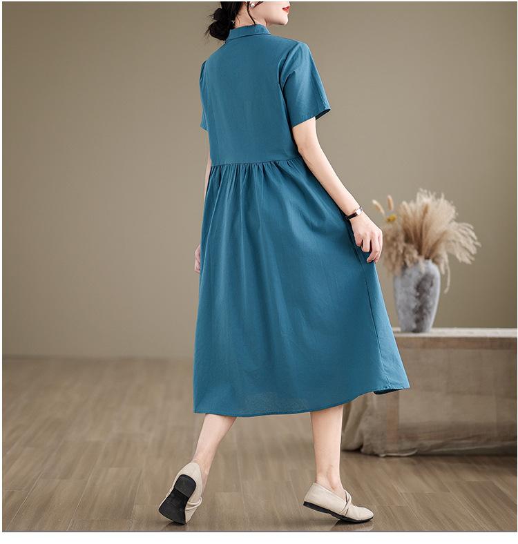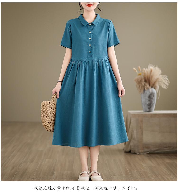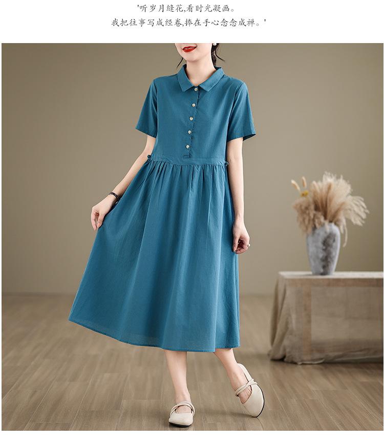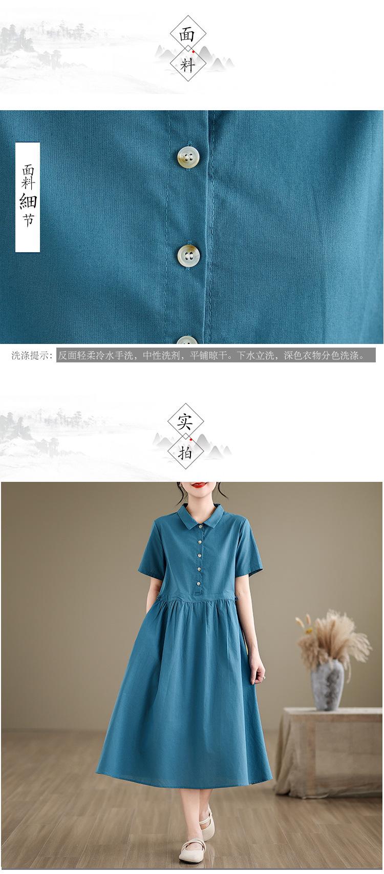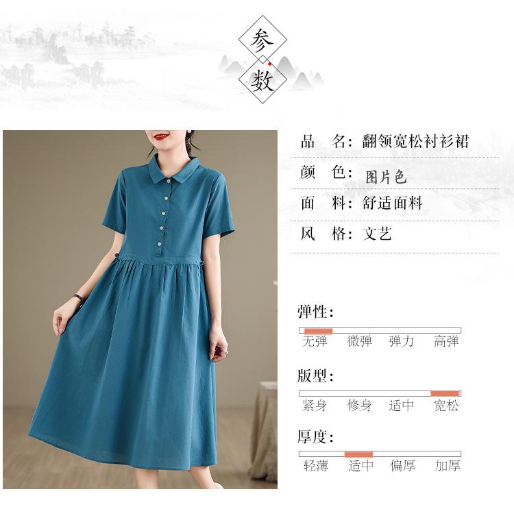 Foto Real 2024 Verano Nuevo Artístico Holgado Adelgazante Hermana Gorda Vestido de Manga Corta Mujeres