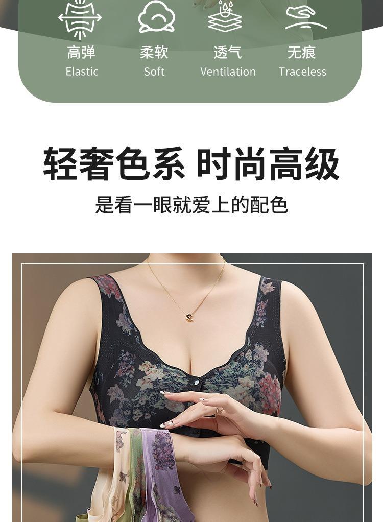 Ropa Interior de Mamá Semifija para Mujer Gasa Hebilla Delantera Tipo Chaleco Sin Marcas Cobertura para Edad Media y Avanzada Recolección de Busto Sujetador Anticaída