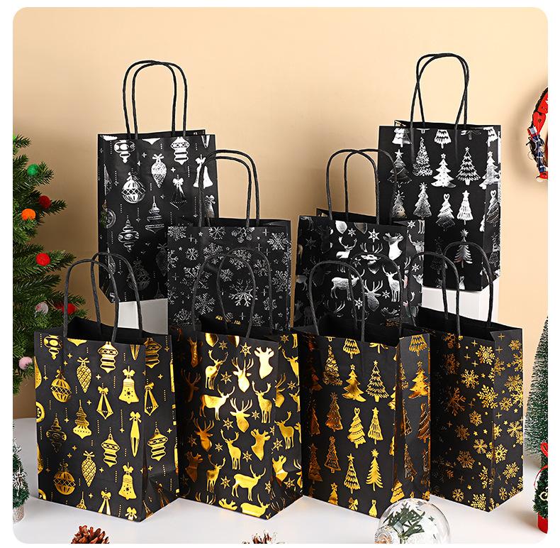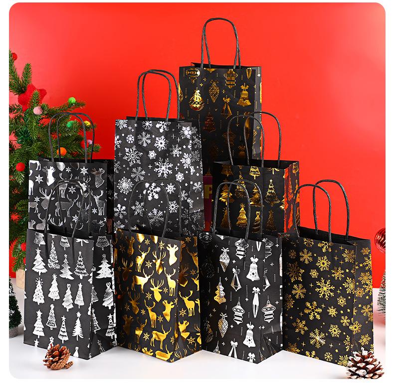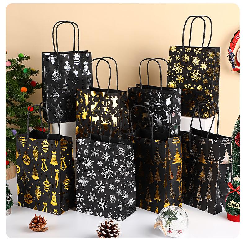 Black hot stamping-snowflake, Black hot silver-christmas tree, Black hot stamping-bell, Black hot silver-snowf...