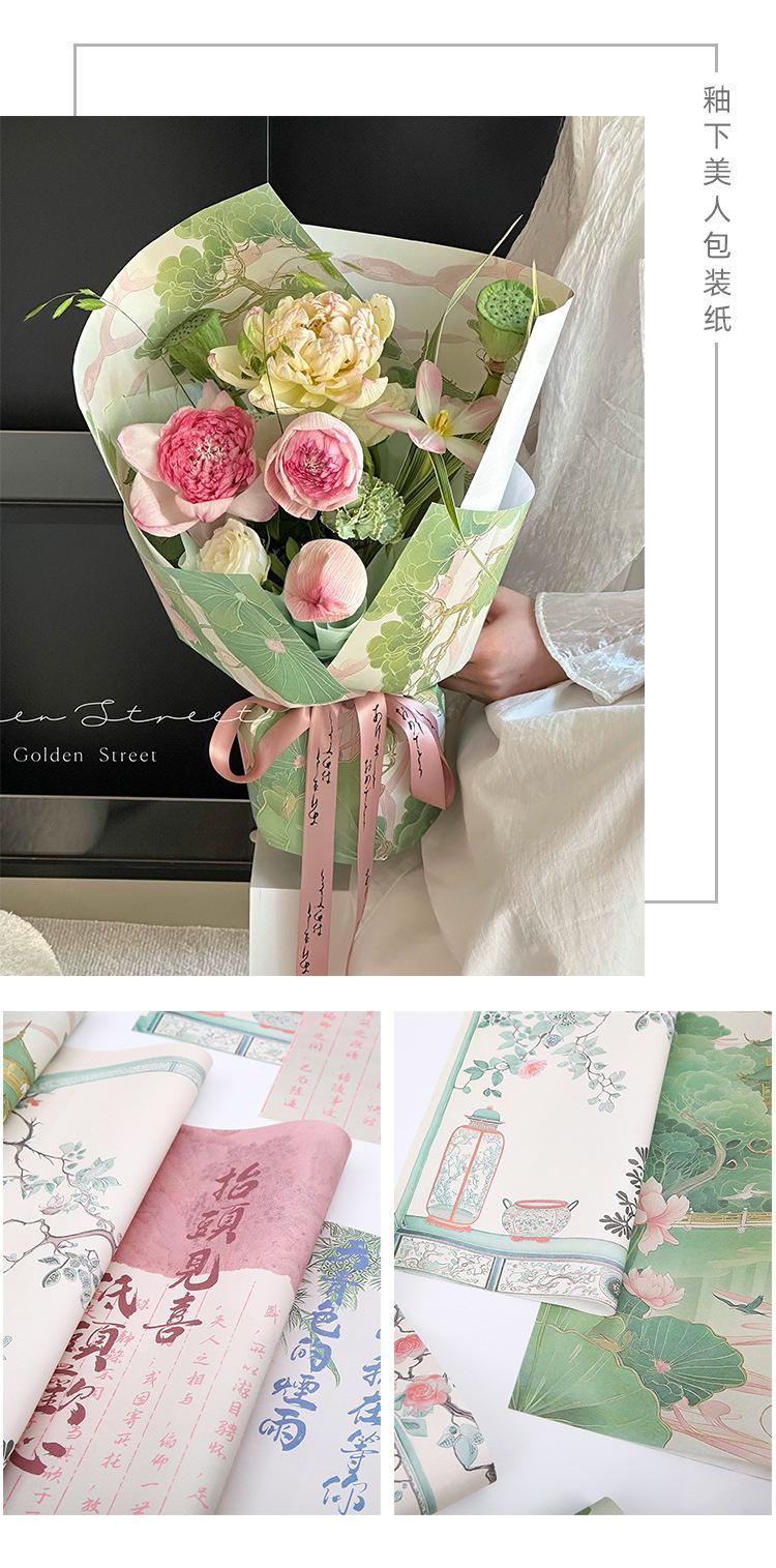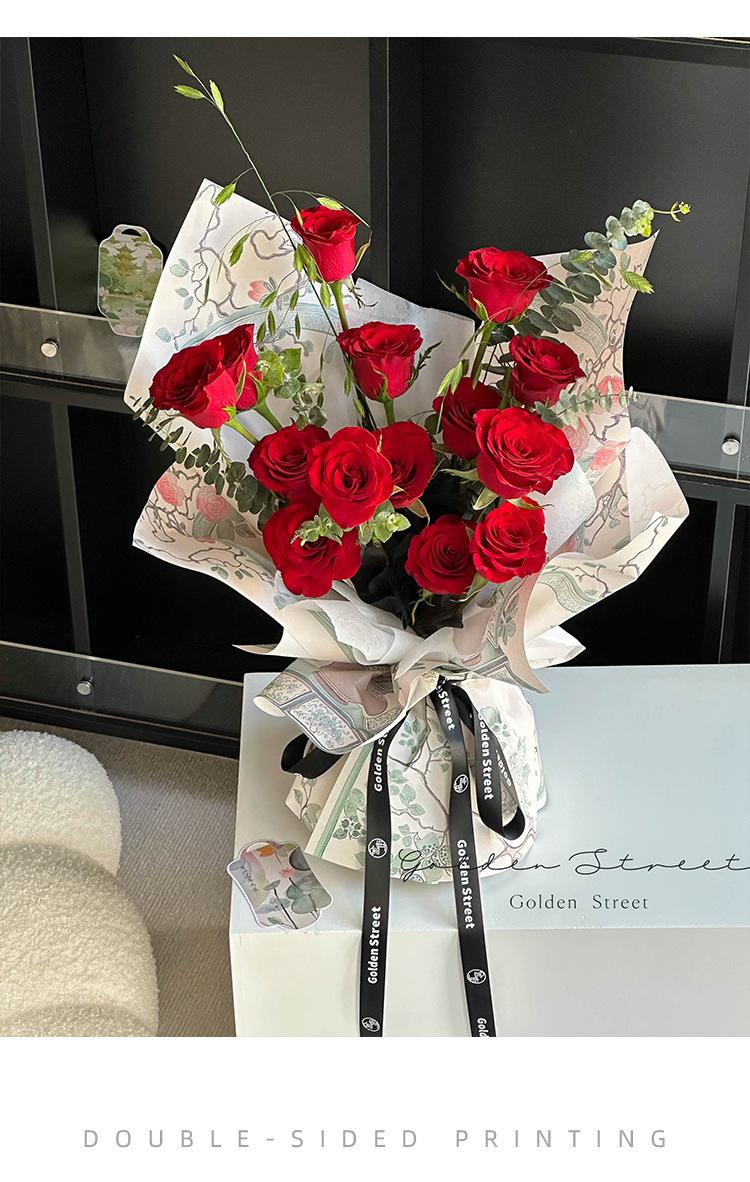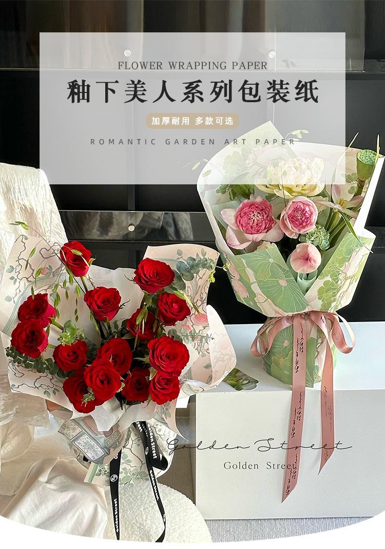 Nuevo Papel para Envolver Flores del Día de San Valentín Chino Belleza Bajo Esmalte Papel para Ramo Papel Kraft Engrosado Materiales para Embalaje de Flores al Por Mayor