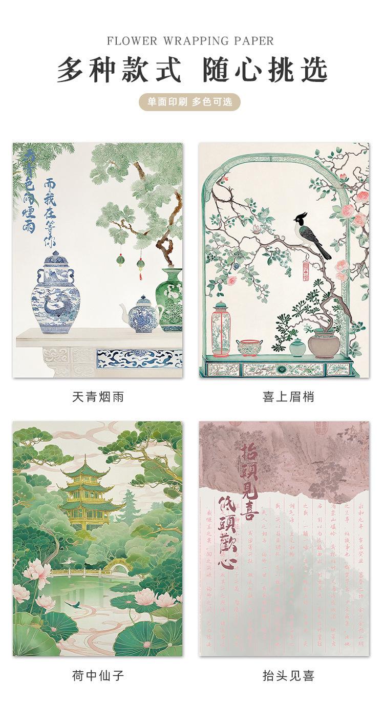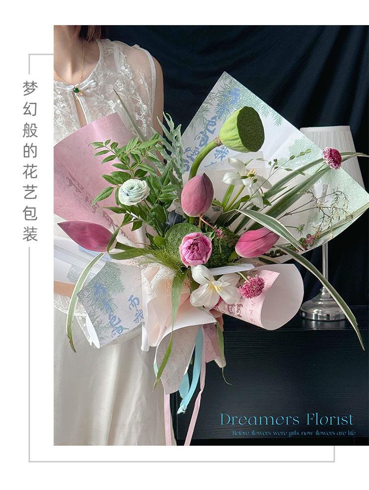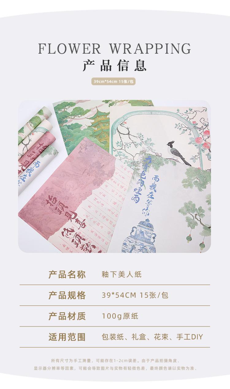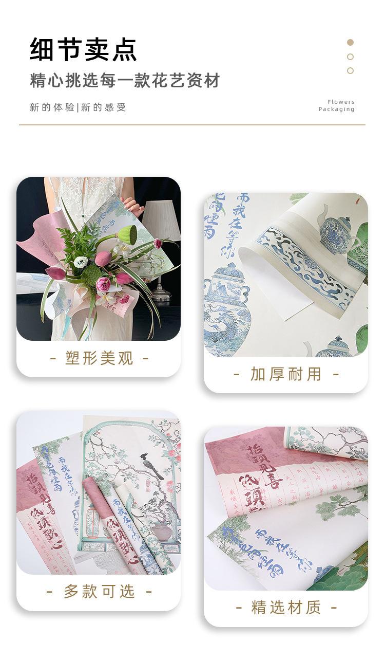 Nuevo Papel para Envolver Flores del Día de San Valentín Chino Belleza Bajo Esmalte Papel para Ramo Papel Kraft Engrosado Materiales para Embalaje de Flores al Por Mayor