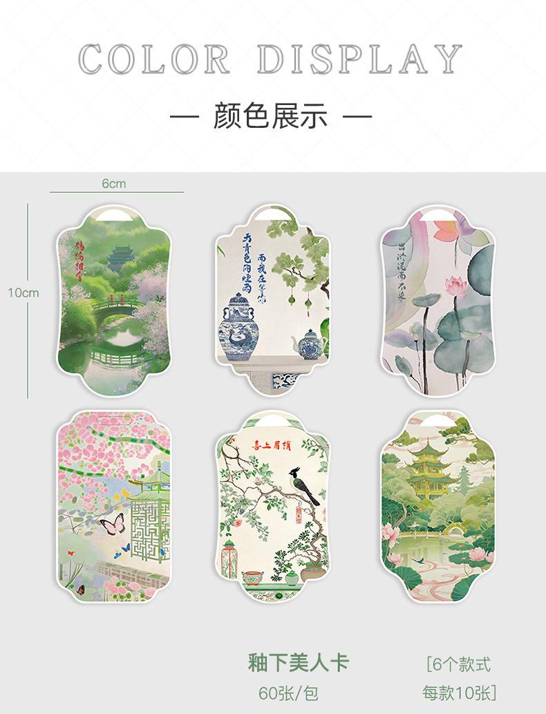 Default item; 6 types of underglaze beauty cards, 60 in total, 6*10cm; multiple grids