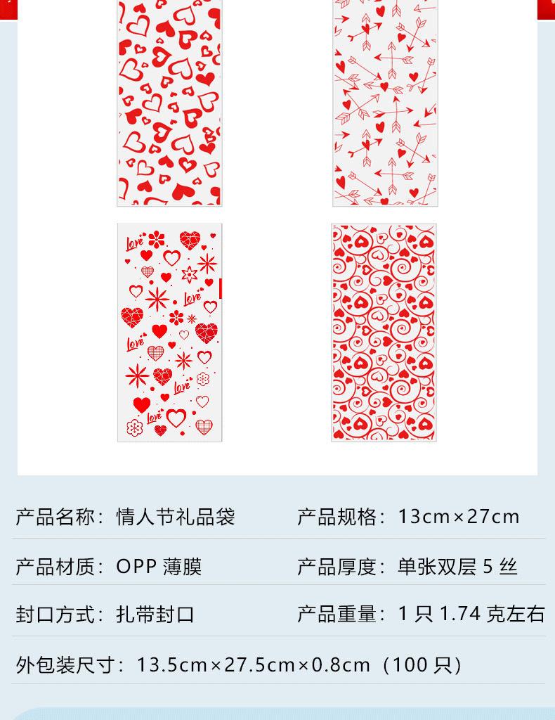 Nueva bolsa de dulces para el Día de San Valentín, bolsa de embalaje de plástico OPP para decoración de bodas, compromisos y fiestas de San Valentín europeas y americanas.