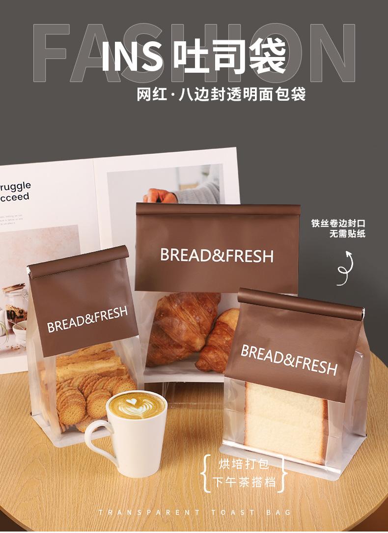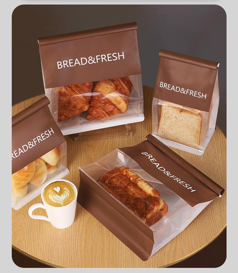 Bolsa de embalaje para pan horneado comida de alta calidad tostada pastel bolsa para pan crujiente sellada a máquina bolsa de embalaje de ocho lados