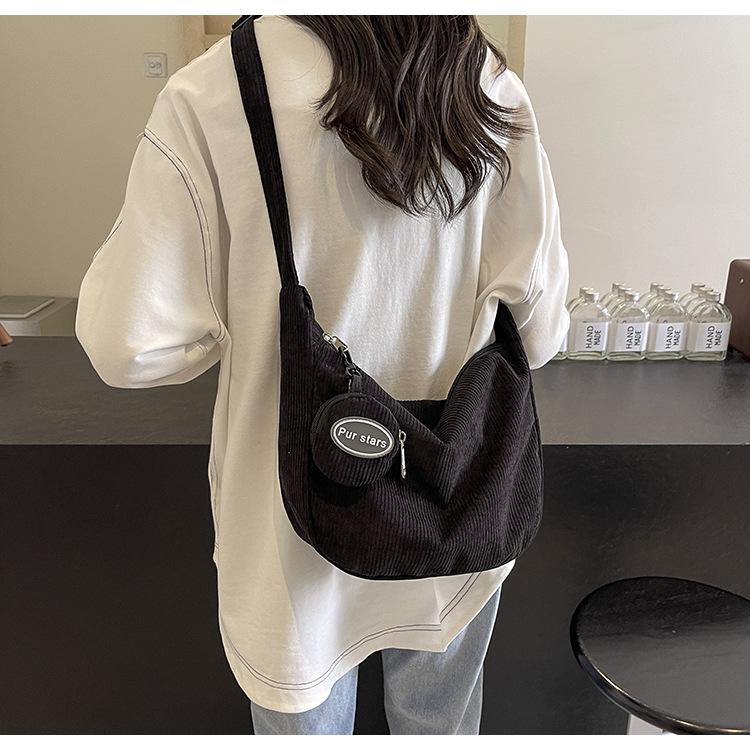 Bolso elegante de estilo coreano para mujer, nuevo estilo 2021, moderno bolso cruzado de banda ancha con borlas y remaches texturizados, bolso de pecho para mujer | |