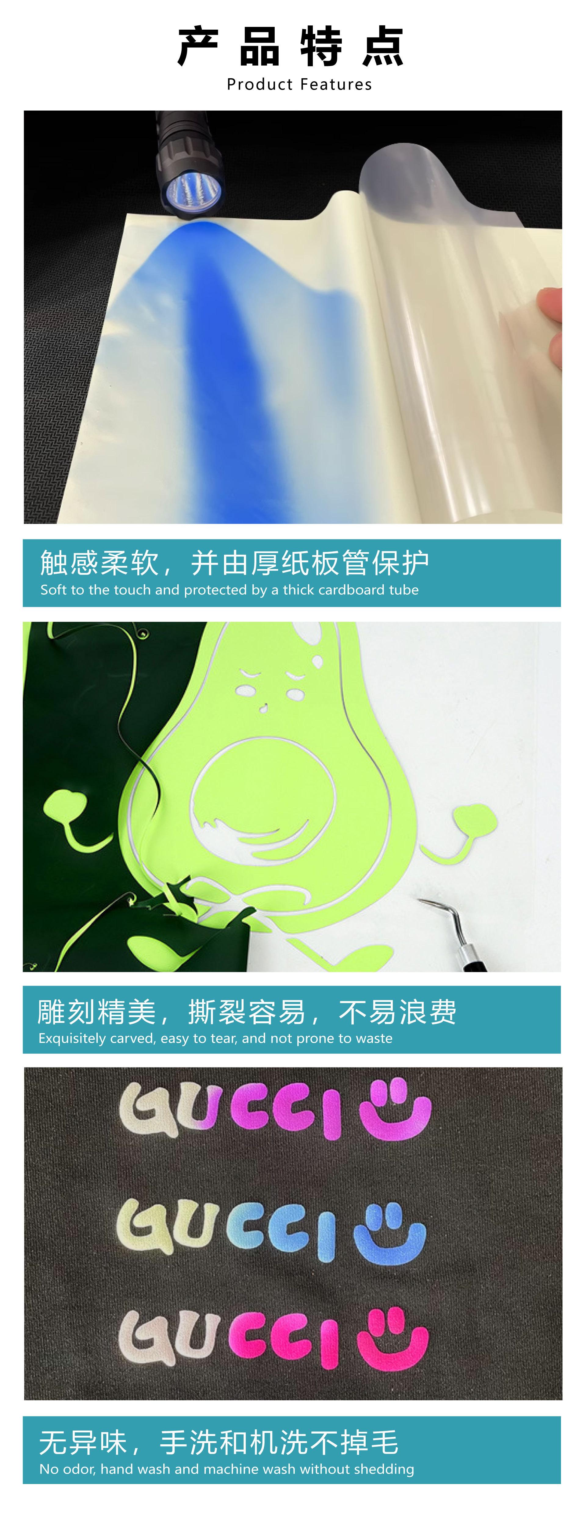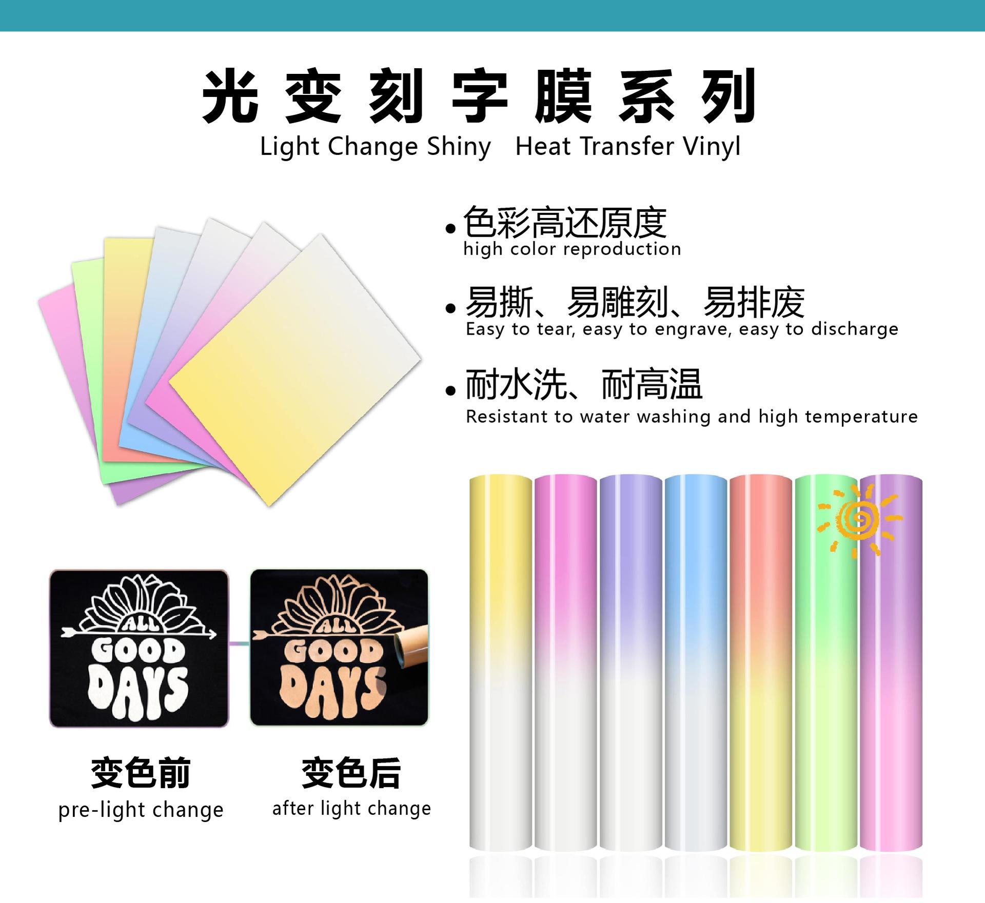 Película de letras azul Tiffany que cambia de color con la luz Hongcai, cambio de color fotosensible UV, transferencia térmica DIY, material de película para estampado en caliente de ropa