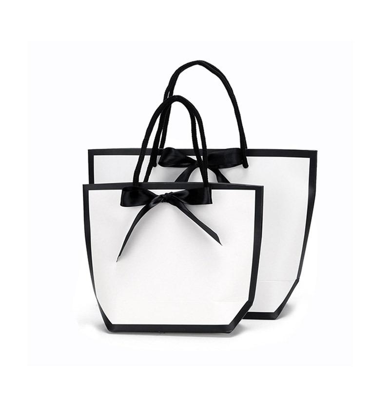 Bolsa de cartón blanca fresca en stock, venta al por mayor, nueva, multitamaño, regalo, embalaje portátil, bolsa de papel de compras simple