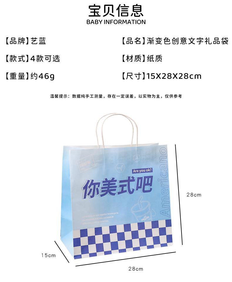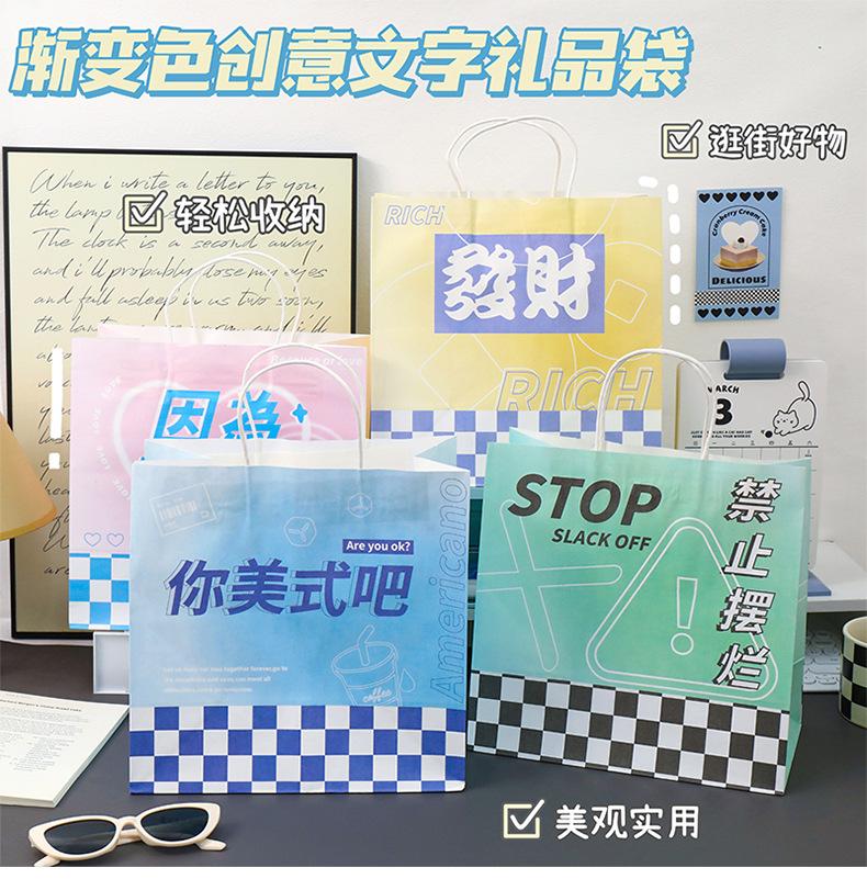 Bolsa de Regalo de Texto Degradado Creativo Bolsa Grande para Empaque de Regalo Bolsa de Compras Bolsa de Compras Bolsa de Empaque para Postre de Té con Leche Venta al por Mayor