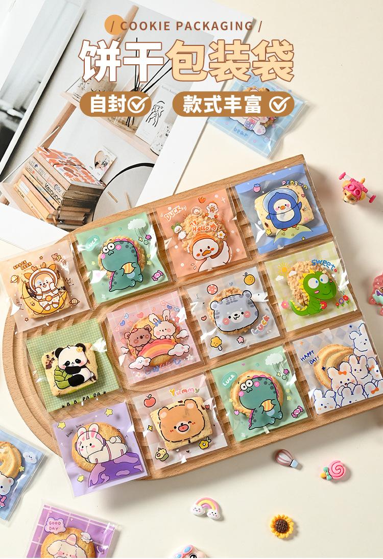 Bolsa de embalaje transparente con dibujos animados de copos de nieve crujientes, autoadhesiva, con autosellado, para hornear galletas, dulces y repostería.