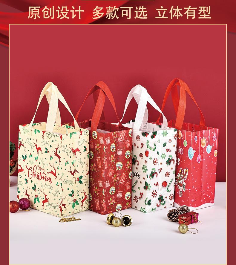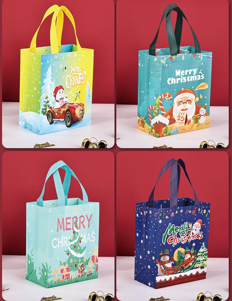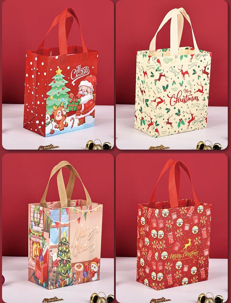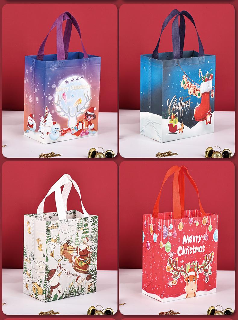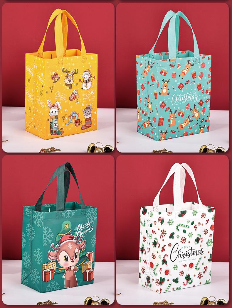 Bolsa de Tela No Tejida Lista para Entrega Bolsa de Regalo Recubierta Colorida Bolsa Navideña Bolso de Mano Logotipo Impreso Bolsa de Embalaje para Regalo Personalización