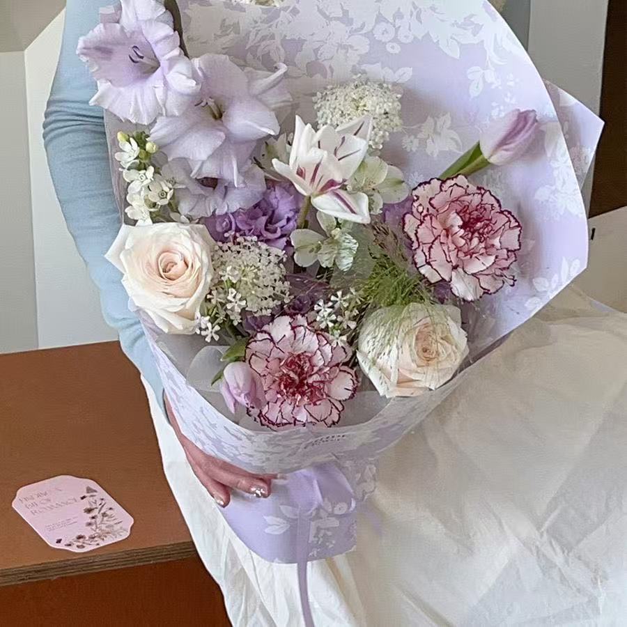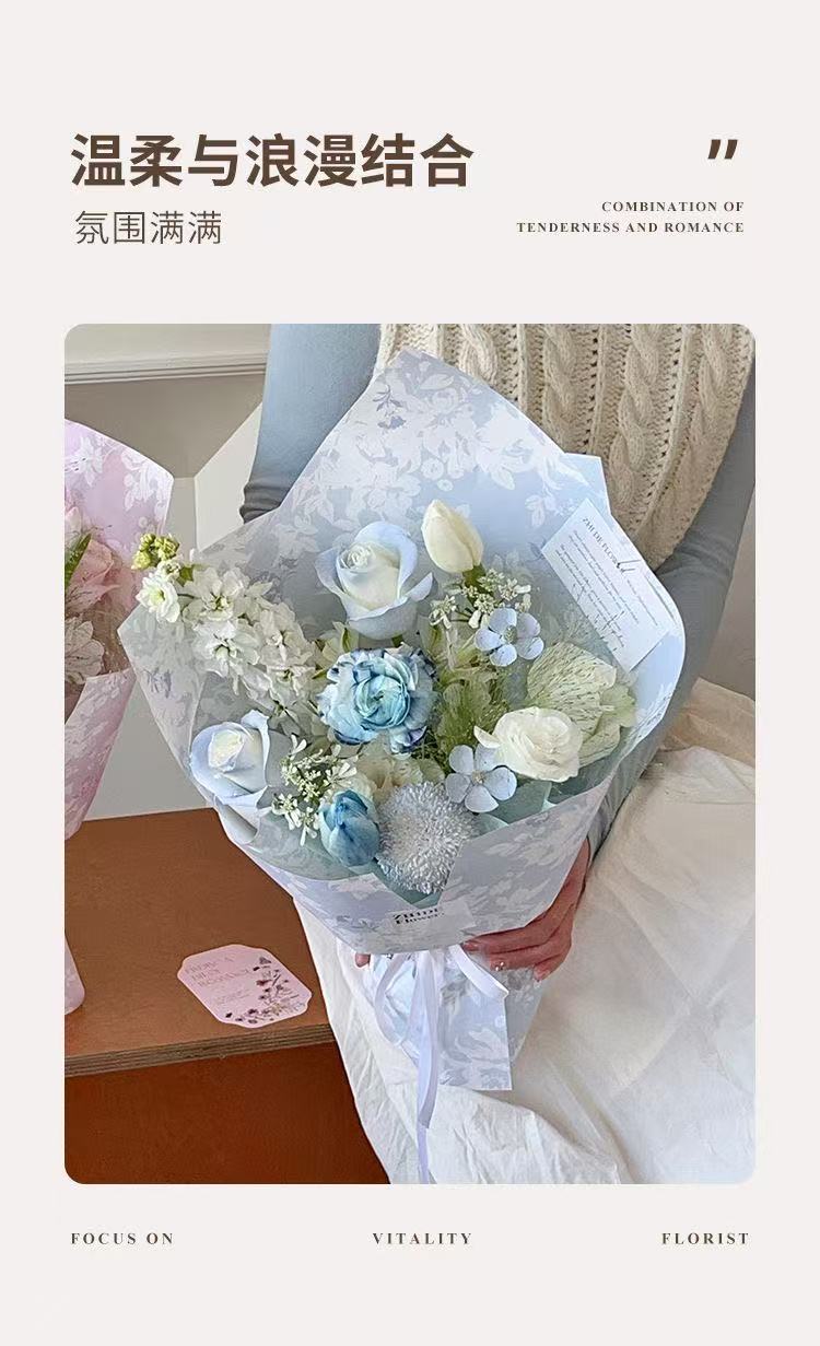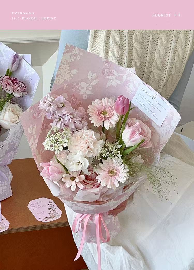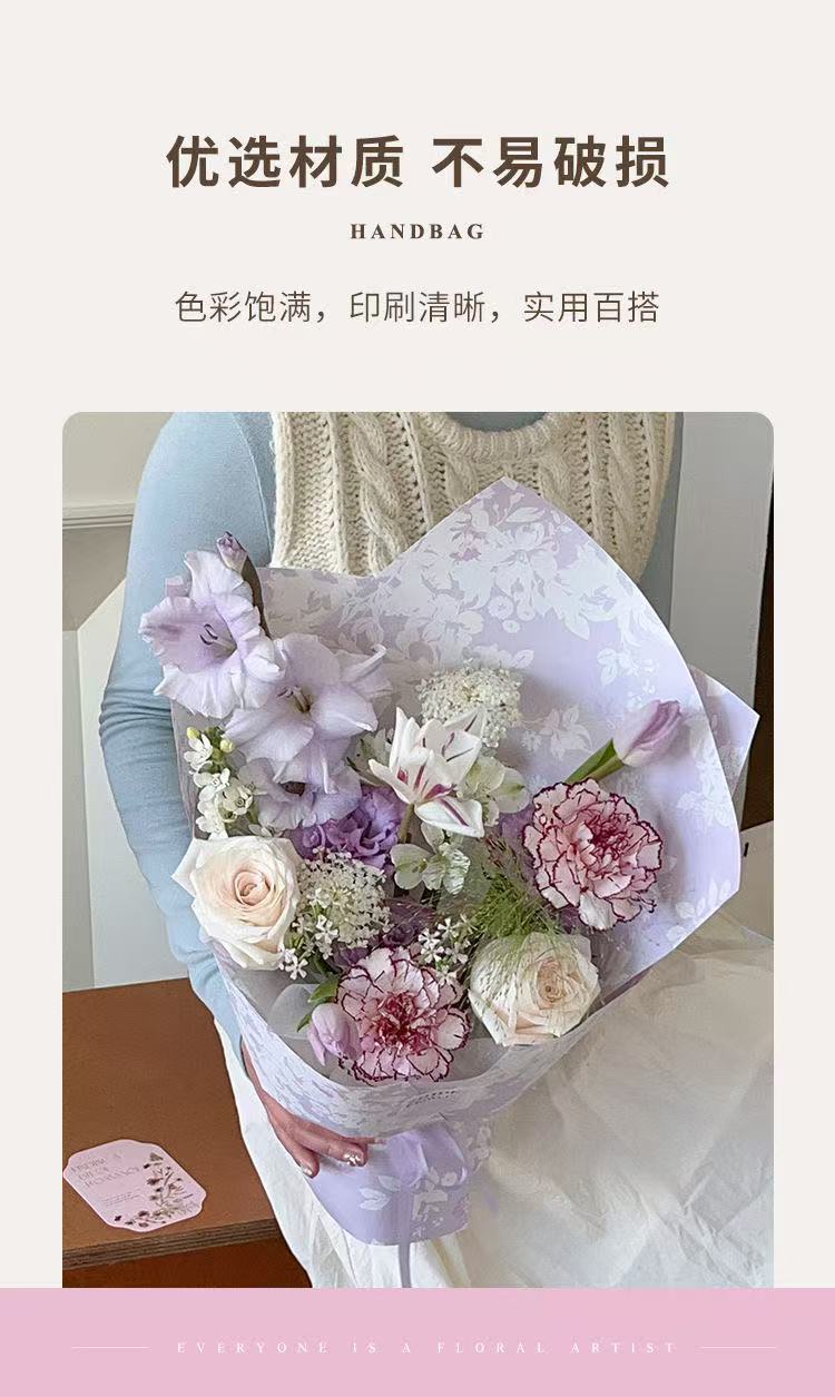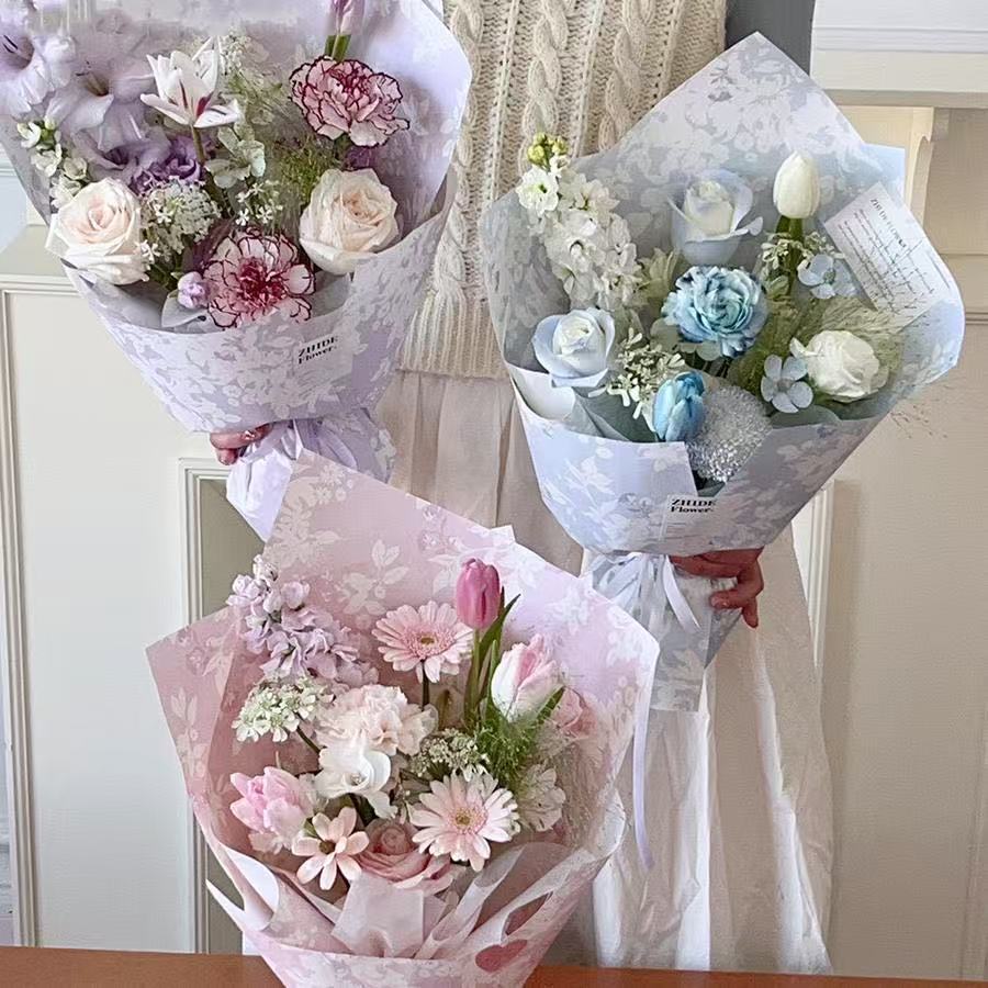 Nuevo Papel para Envolver Ramo de Flores Papel Kraft Grueso de Doble Capa Arte de Pintura al Óleo de Flores Papel para Envolver Tienda de Flores Venta al por Mayor