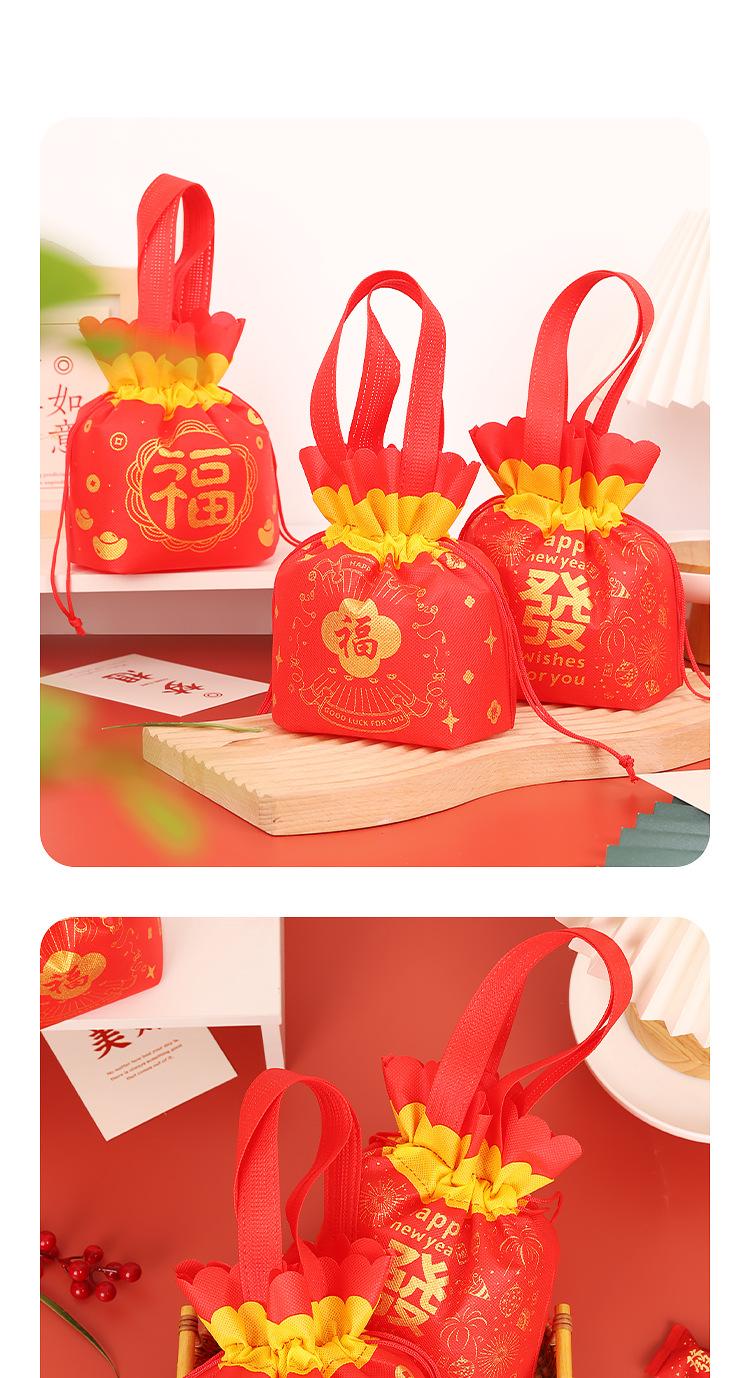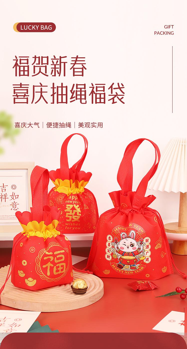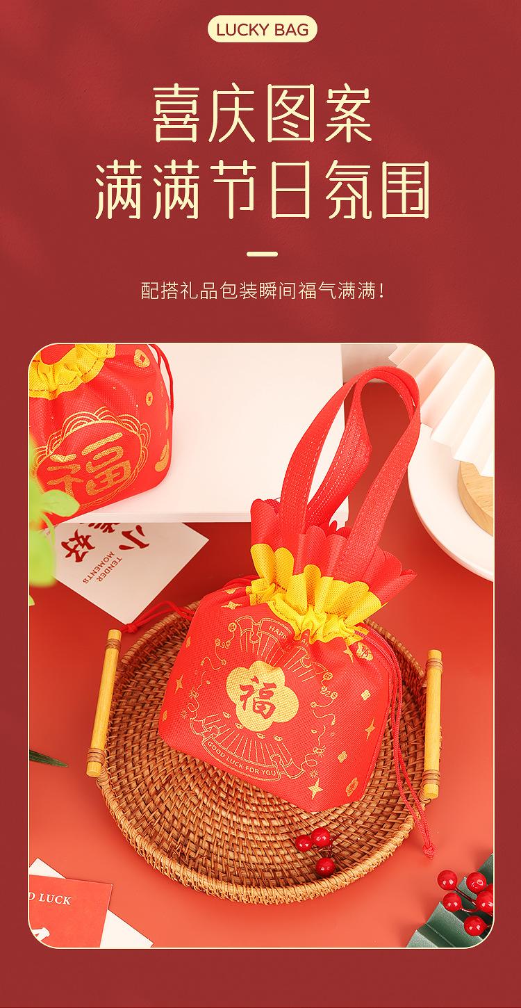 Bolsas con cordón para Año Nuevo y Festival de Primavera, Bolsas de la suerte, Embalaje festivo para regalos, Tela no tejida con estampado dorado e impresión a color