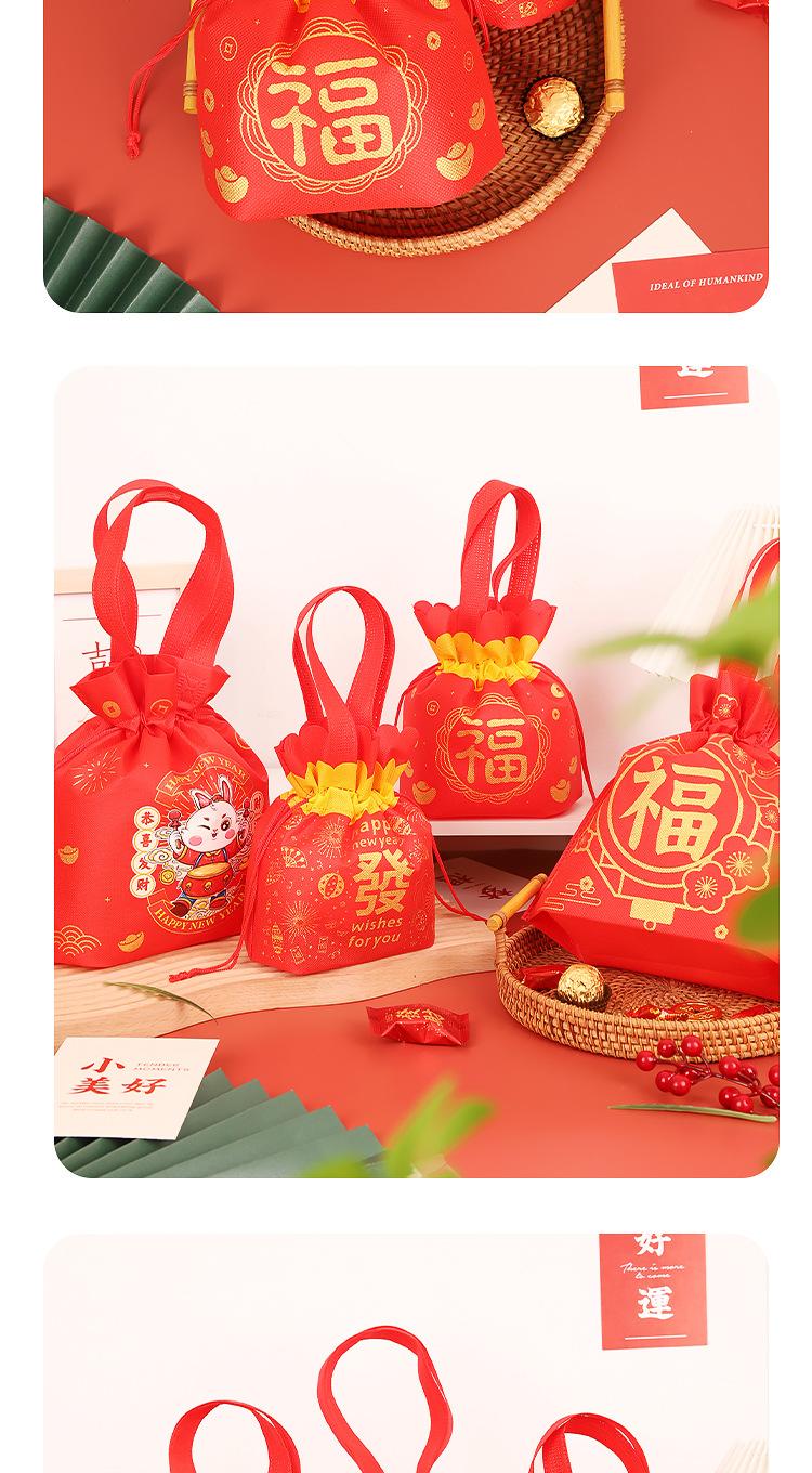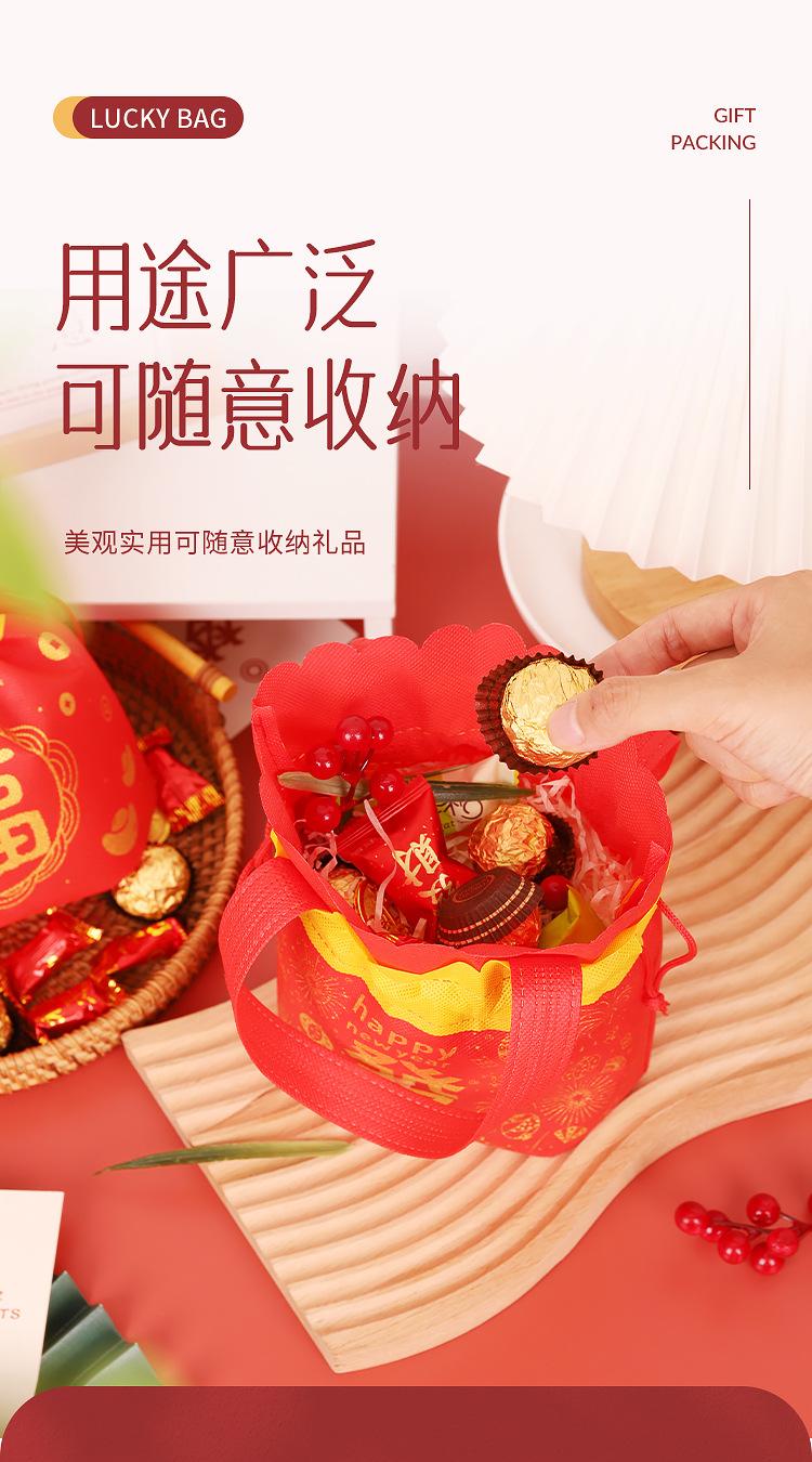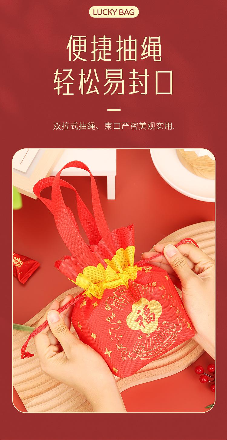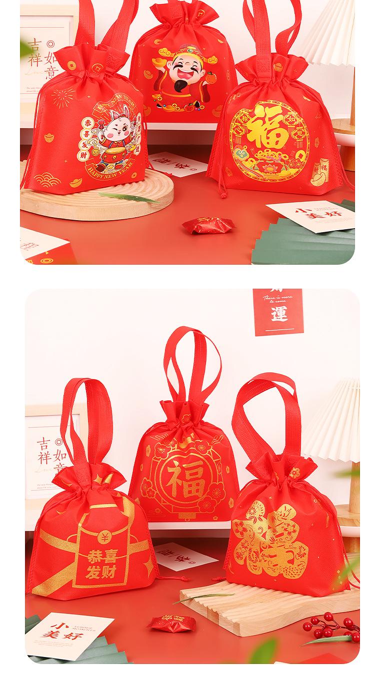 Bolsas con cordón para Año Nuevo y Festival de Primavera, Bolsas de la suerte, Embalaje festivo para regalos, Tela no tejida con estampado dorado e impresión a color