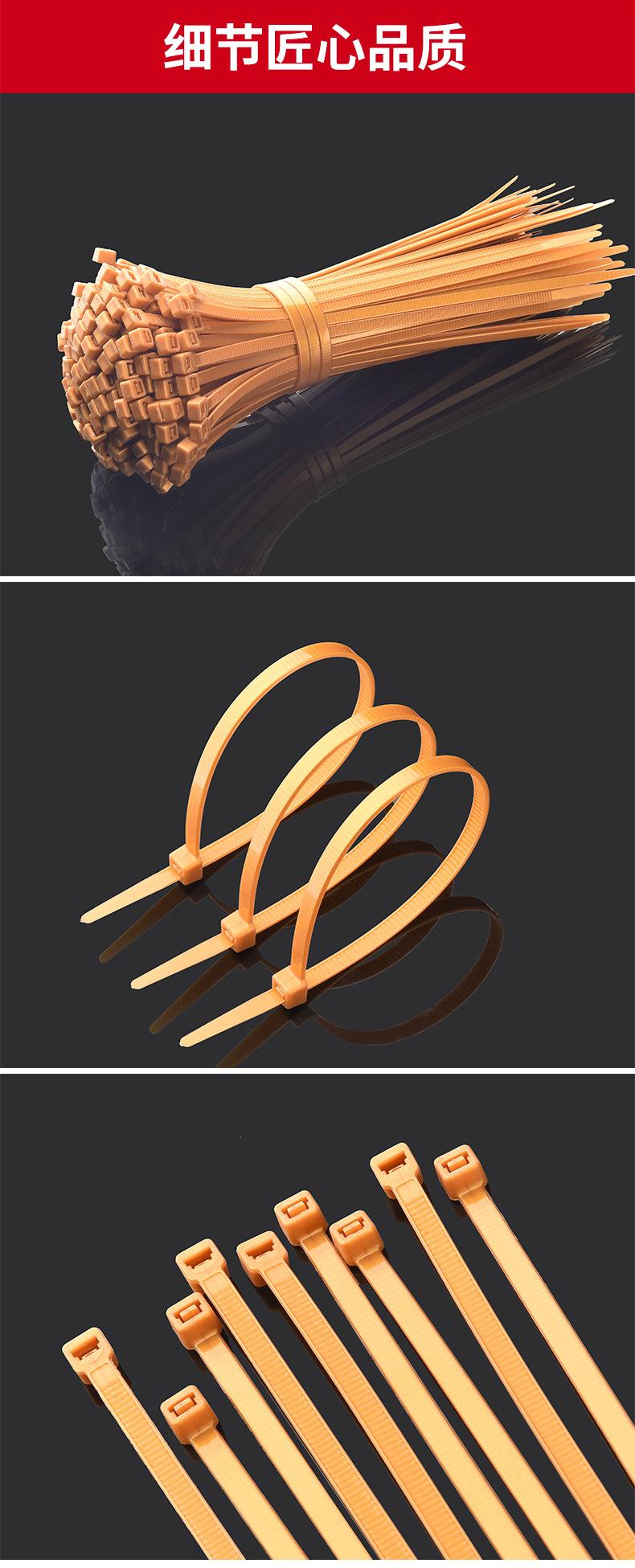 Bridas de cable doradas 3*100*150*4*200*5*300*350*8*200*250*300m brida de cable de plástico
