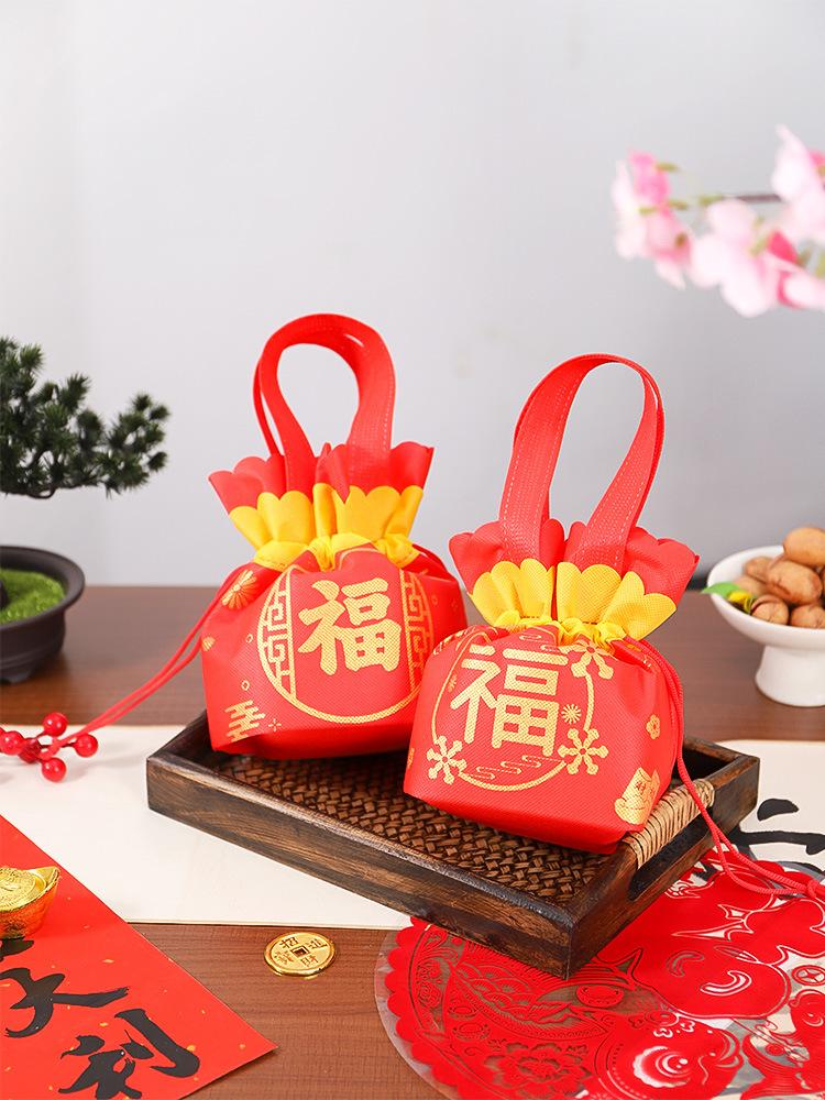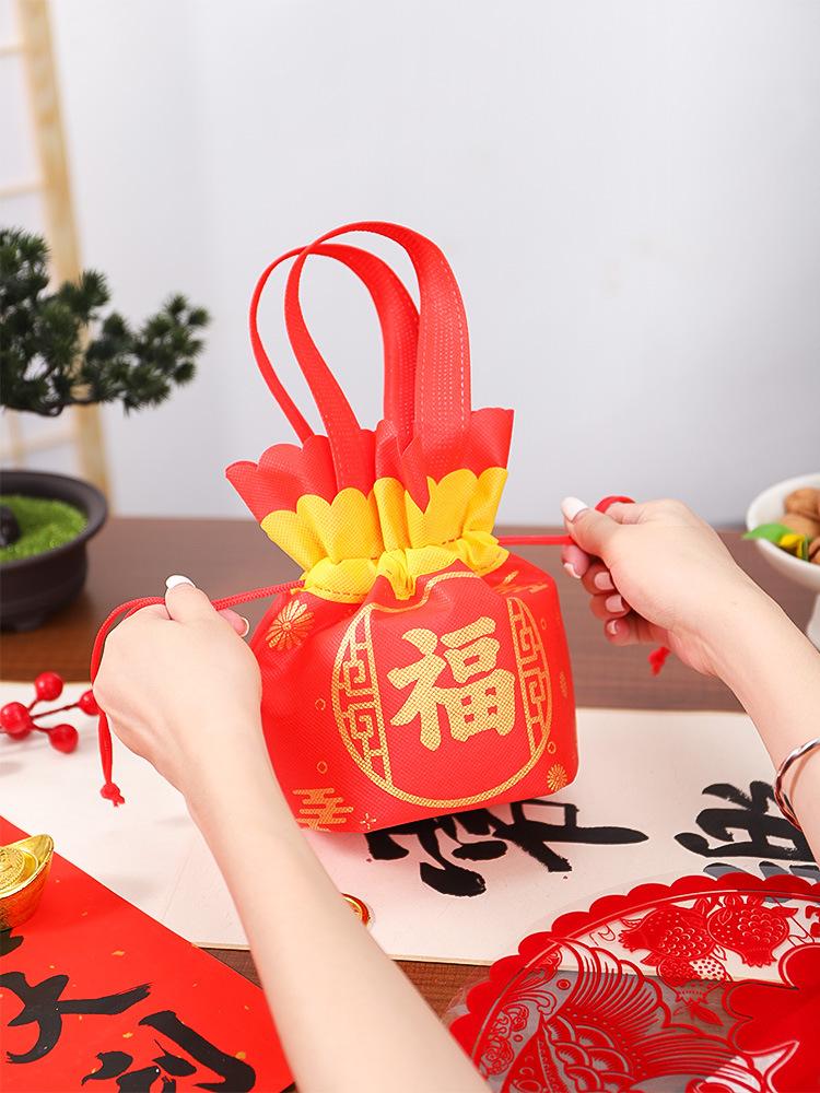 Bolsa Tote con Cordón de Dulces de Souvenir de Año Nuevo Bolsa de Tela No Tejida Bolsa de Regalo para el Festival de Primavera Proceso de Impresión por Transferencia de Calor Personalizado
