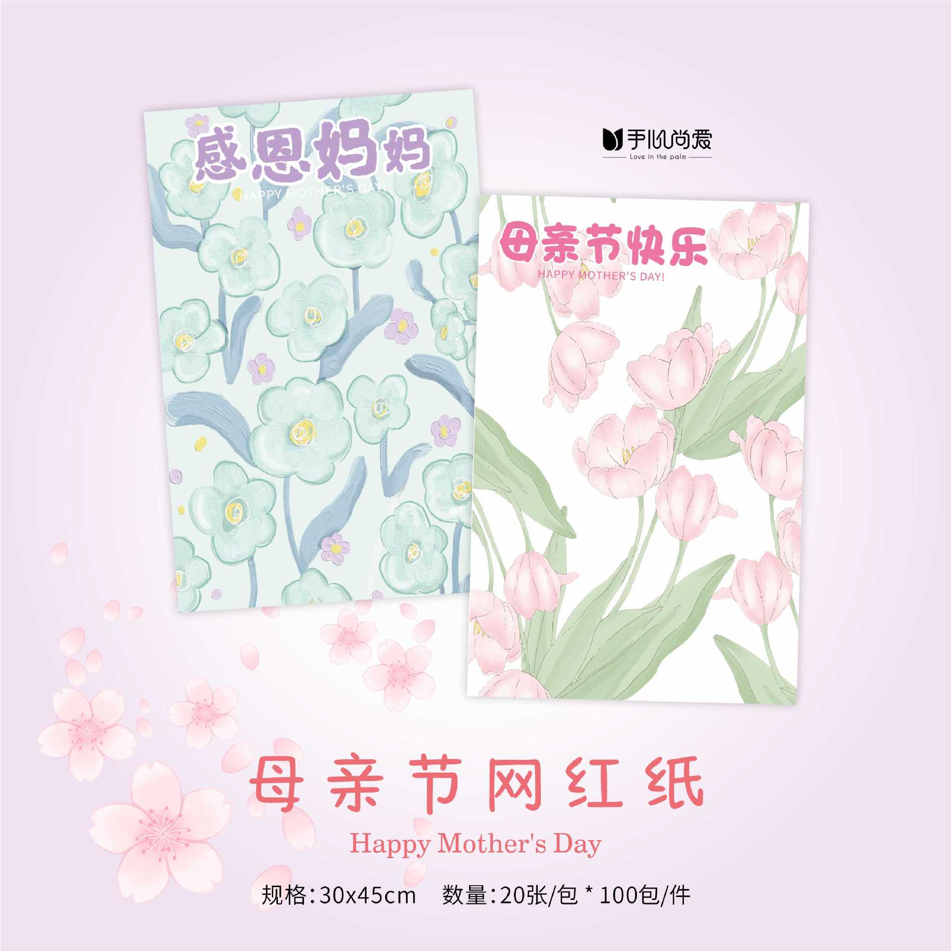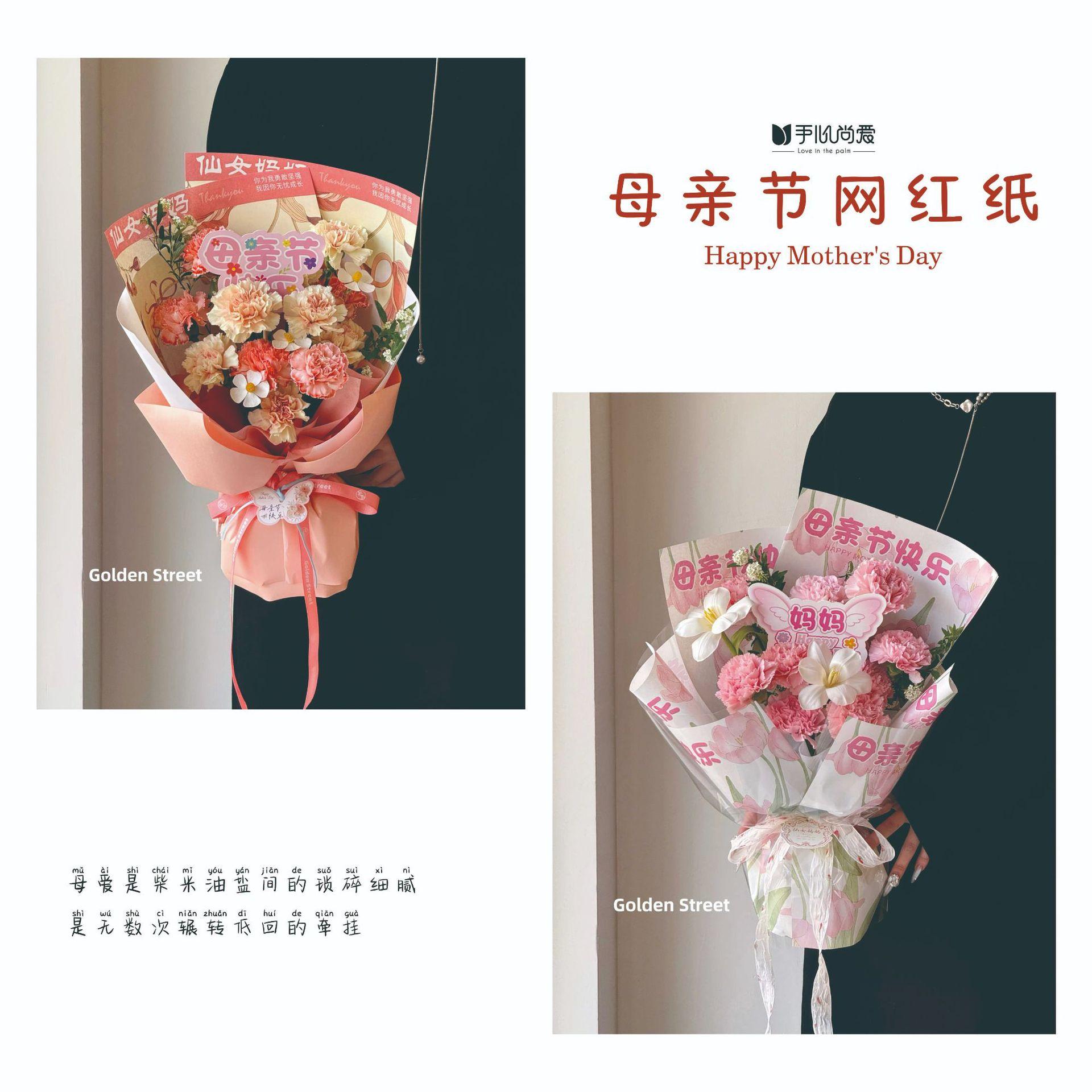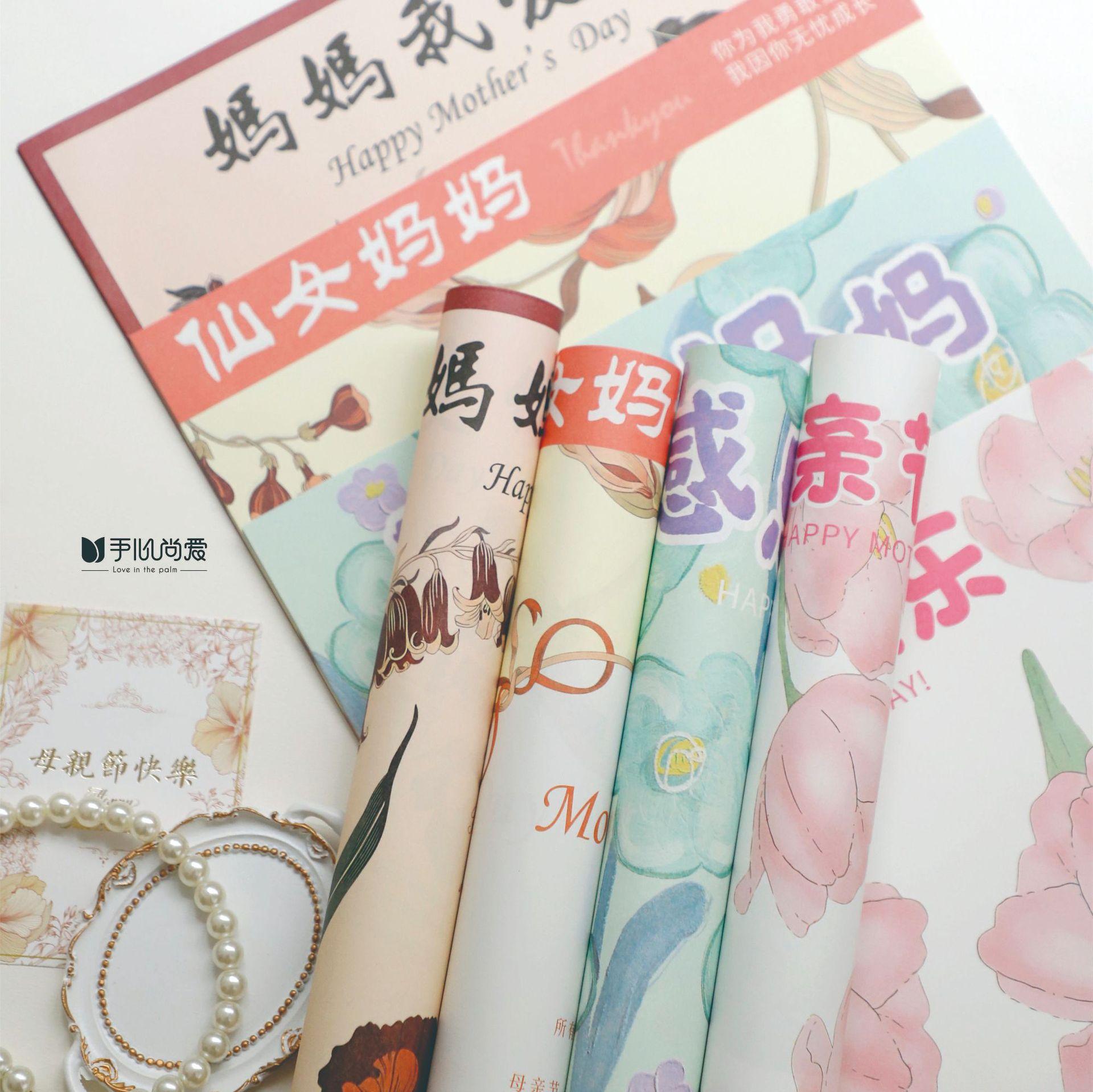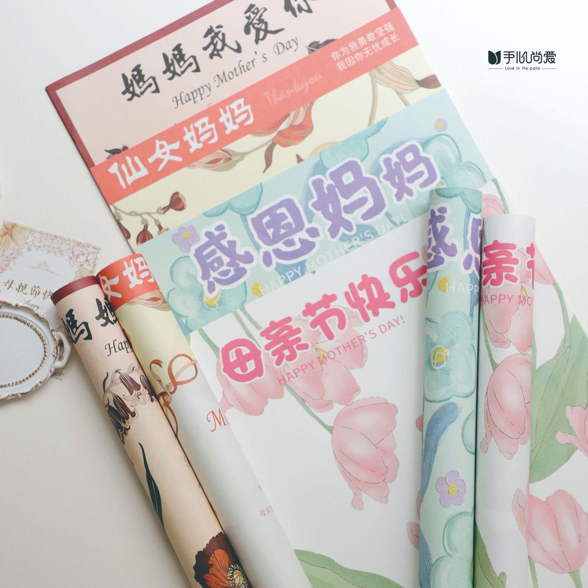 Papel de Envoltura Floral de Moda Día de la Madre Estampado Pastoral Creativo Papel Kraft Grueso Papel de Envoltura para Ramo Directo del Fabricante