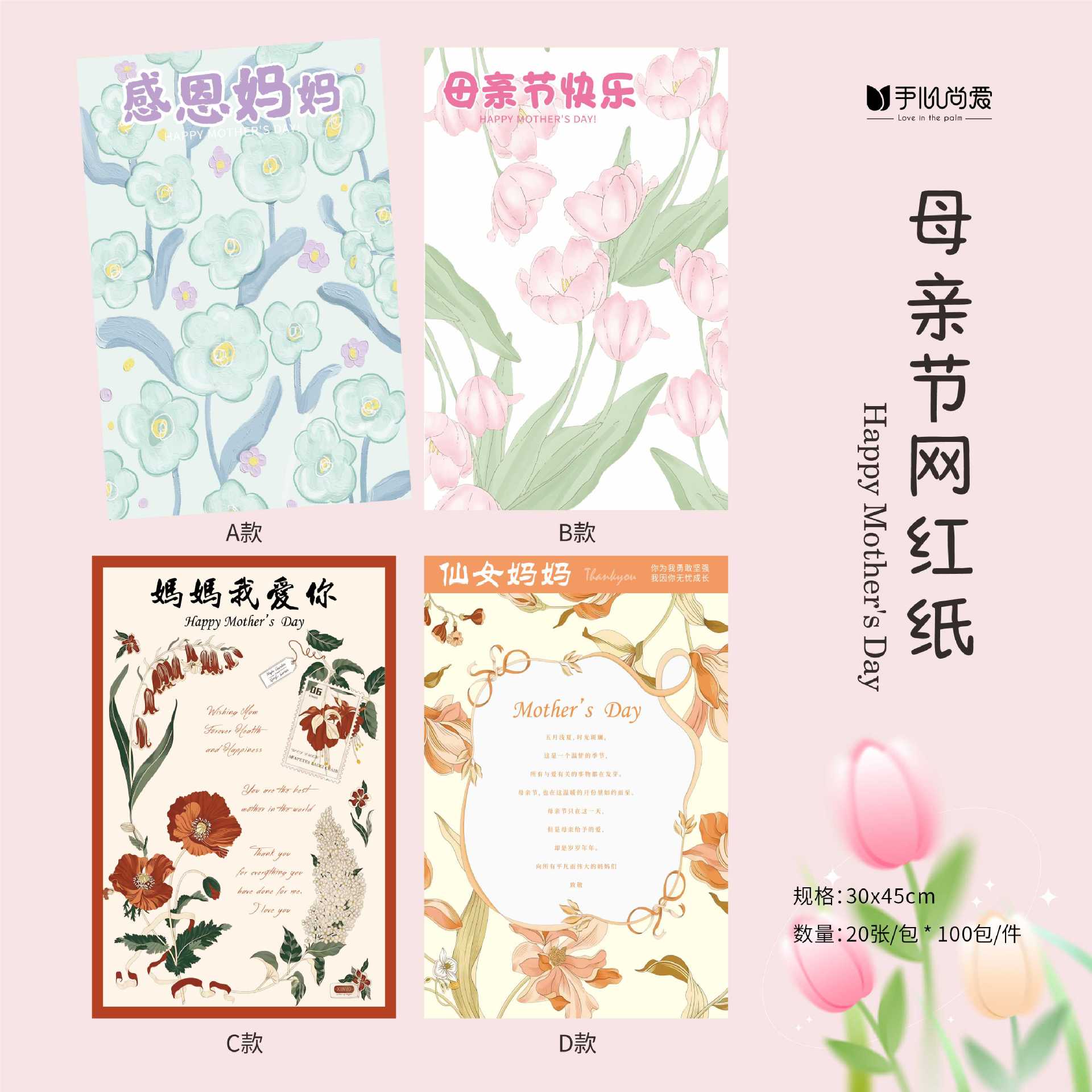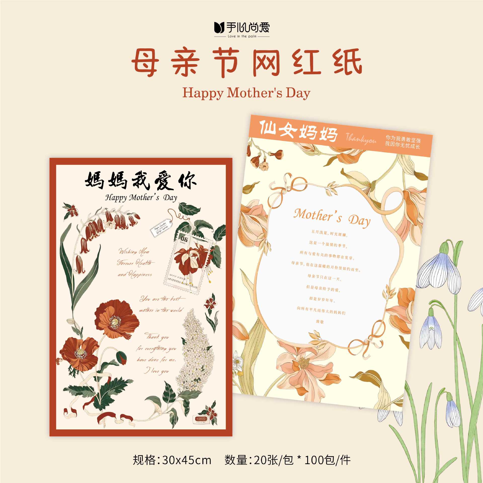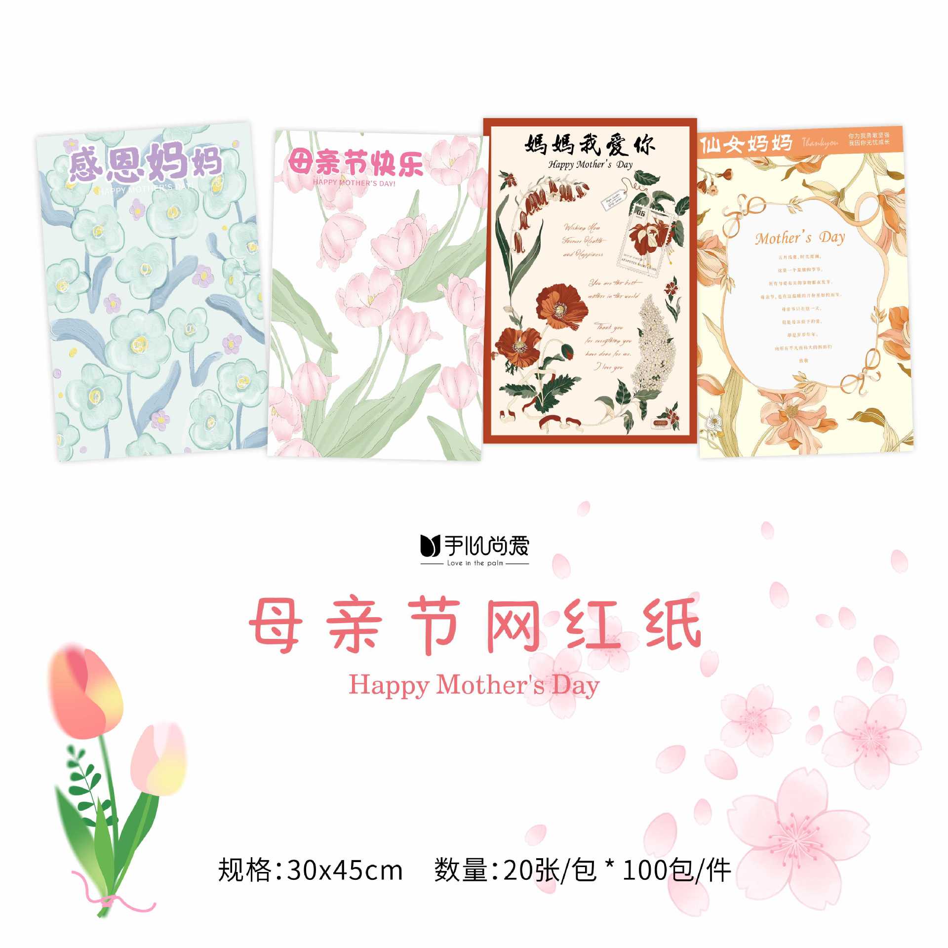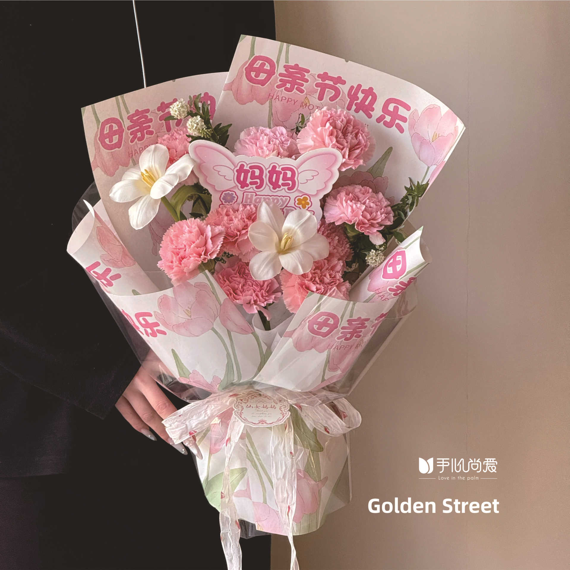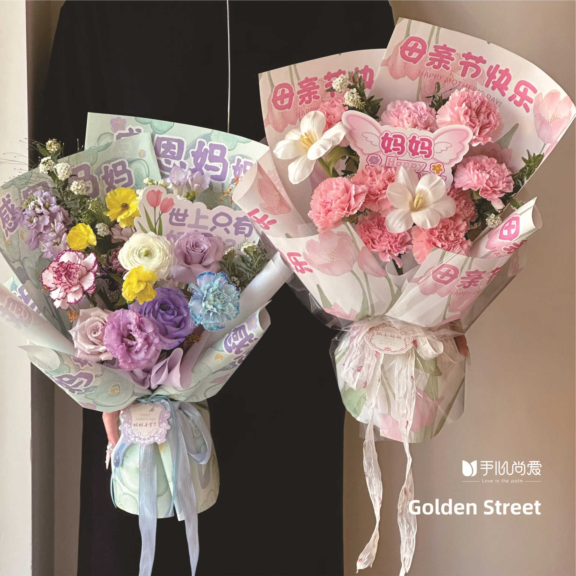Papel de Envoltura Floral de Moda Día de la Madre Estampado Pastoral Creativo Papel Kraft Grueso Papel de Envoltura para Ramo Directo del Fabricante