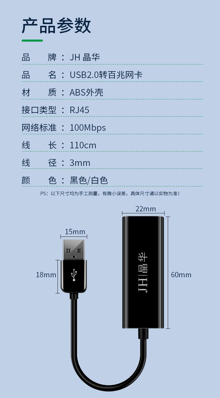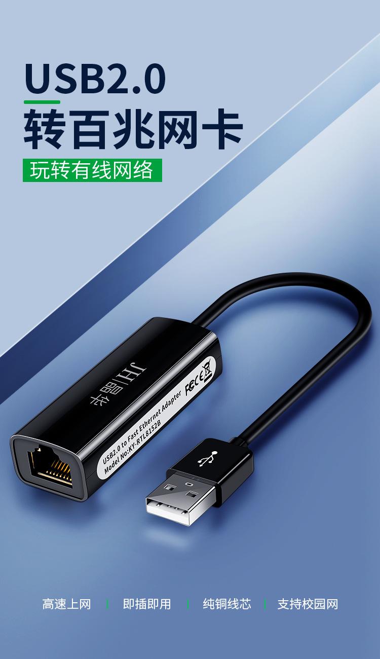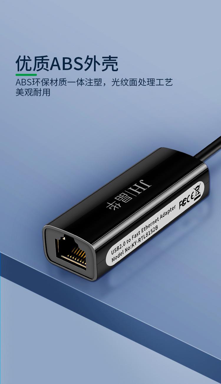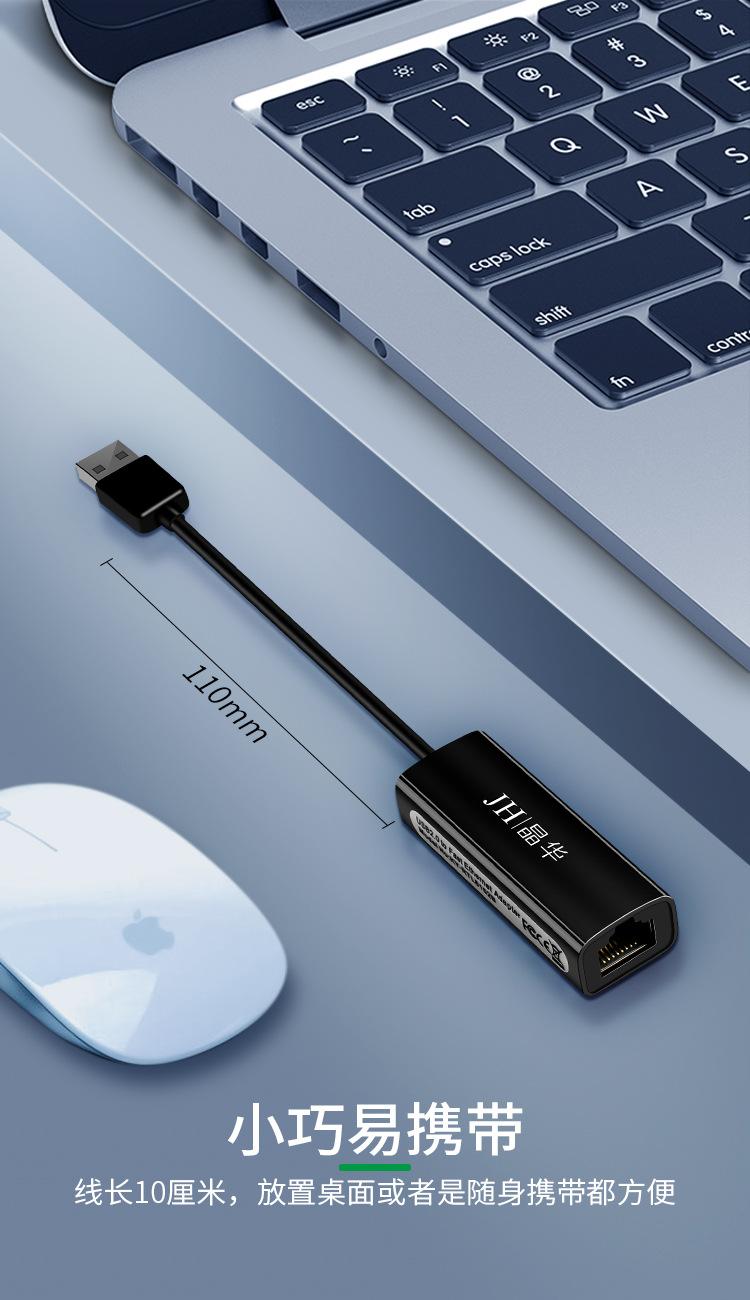 Interfaz USB 2.0 a RJ45 de Jinghua Factory, puerto de red de 100 M, convertidor de tarjeta de red cableada para computadora portátil y MAC