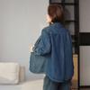 Imagen real de una chaqueta vaquera de manga larga estilo retro de Hong Kong con capas para mujer, primavera 2025.