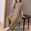 Traje de dos piezas de longitud media de primavera y otoño de talla grande para mujer, holgado, de color liso, para principios de primavera, color albaricoque, azul y negro.