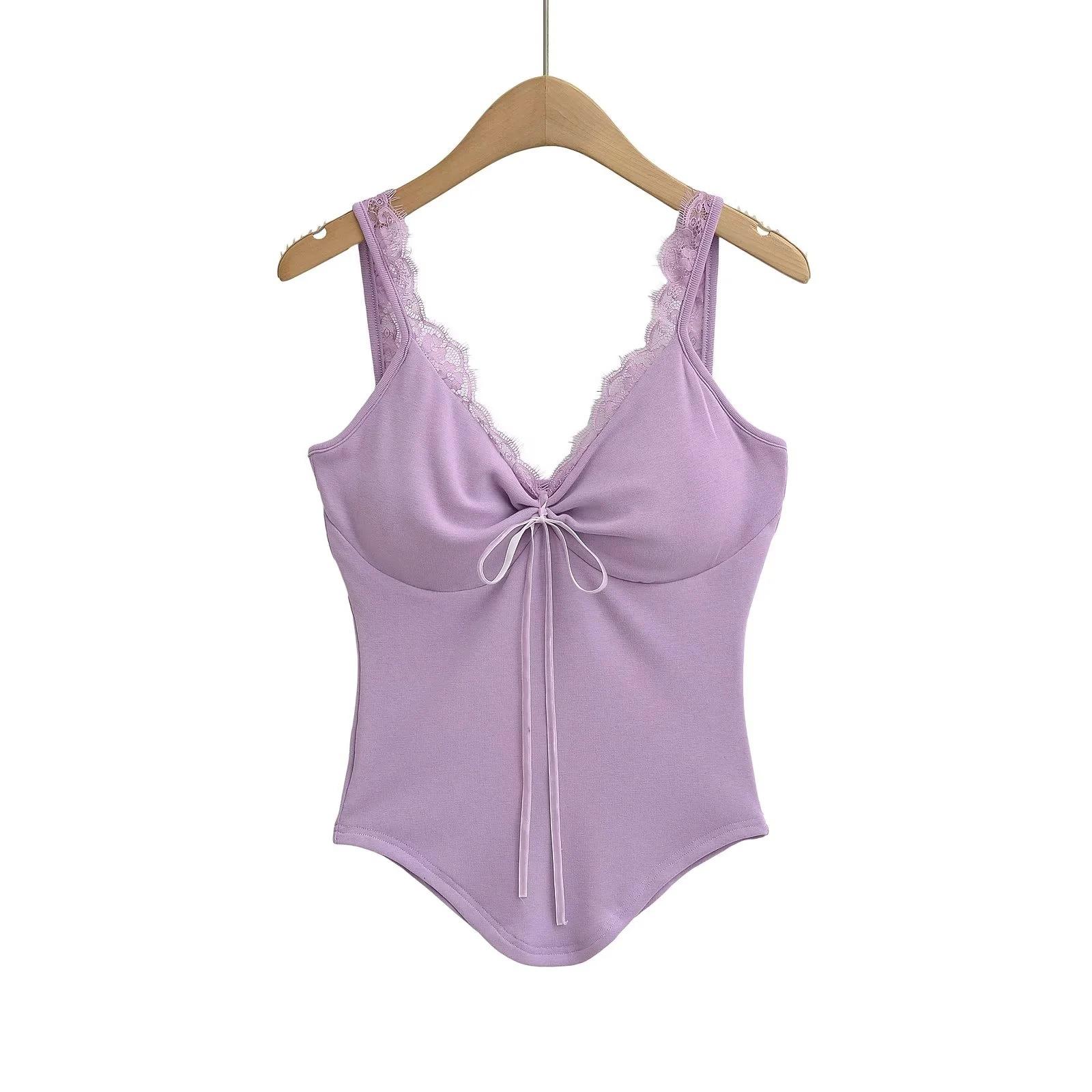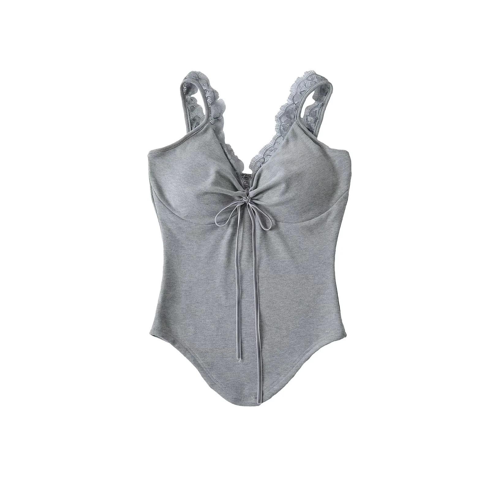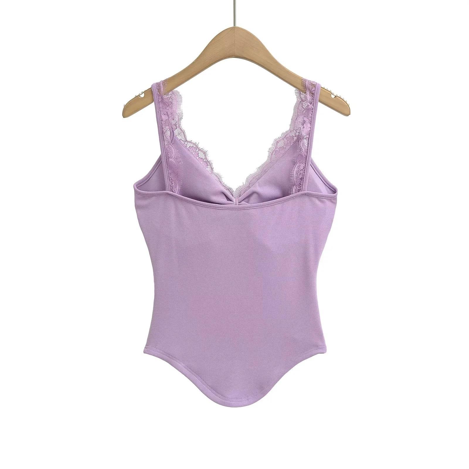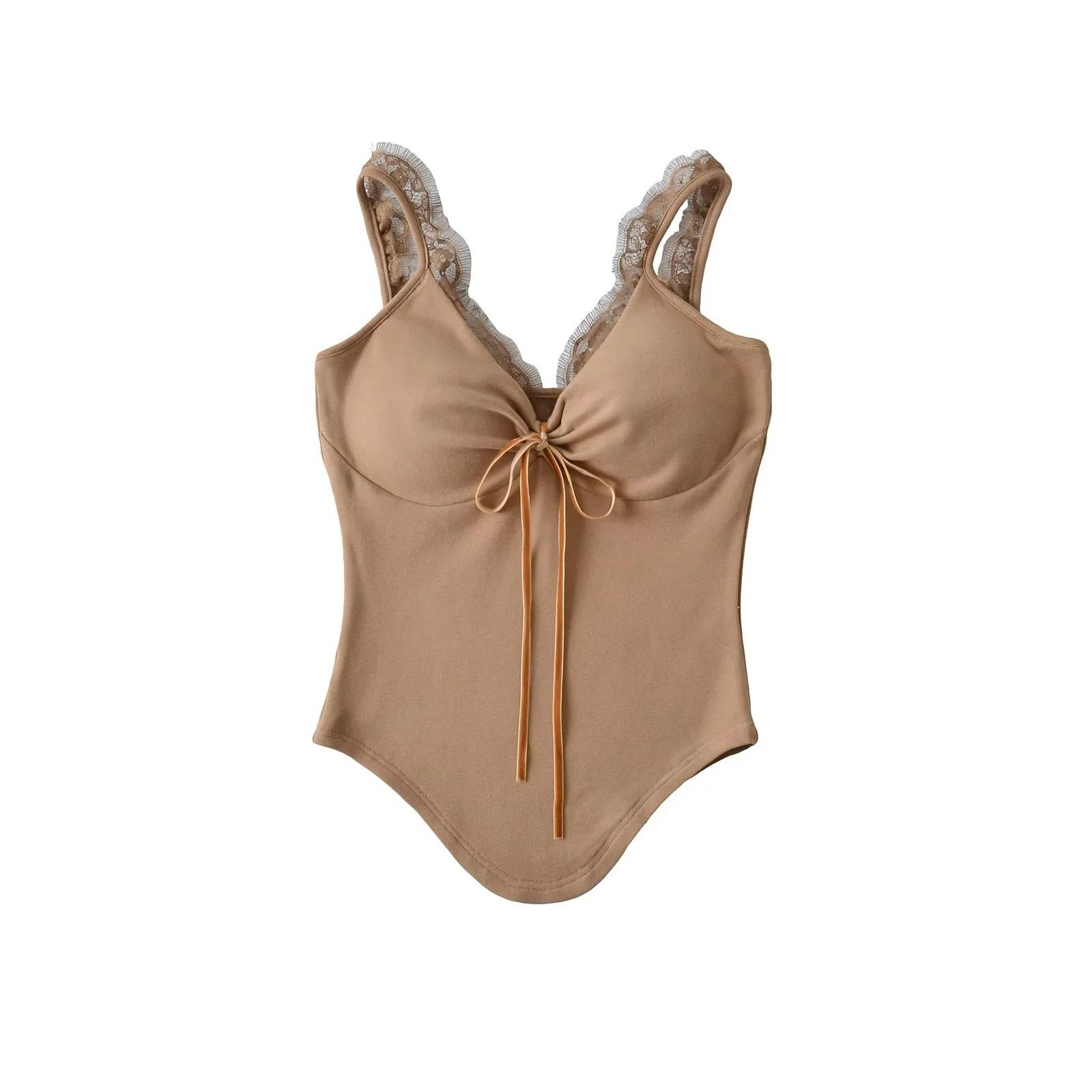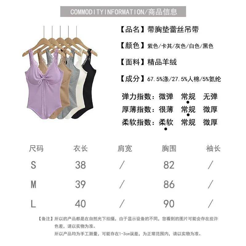 Camisola de Encaje Estilo Deseo Puro para Mujer Camiseta Interior Base Chica Picante Ajustada Sexy con Almohadilla en el Pecho