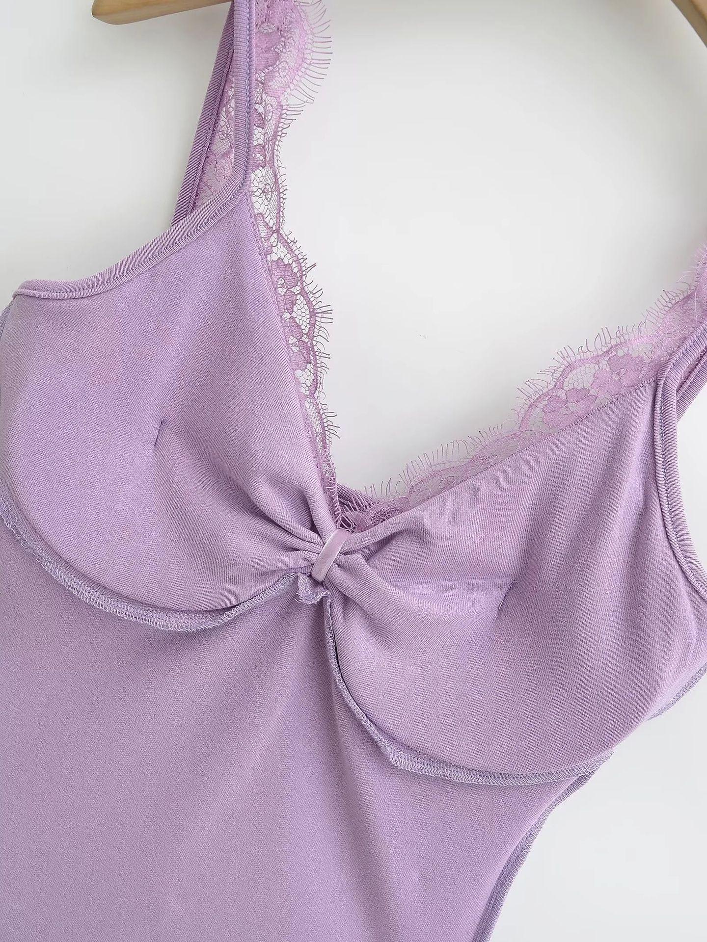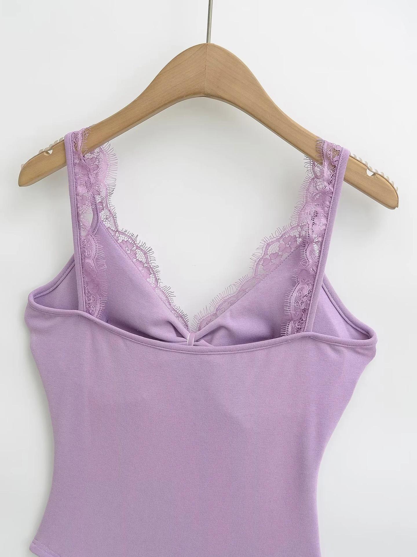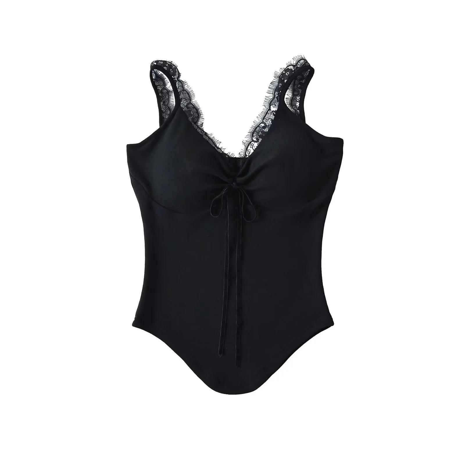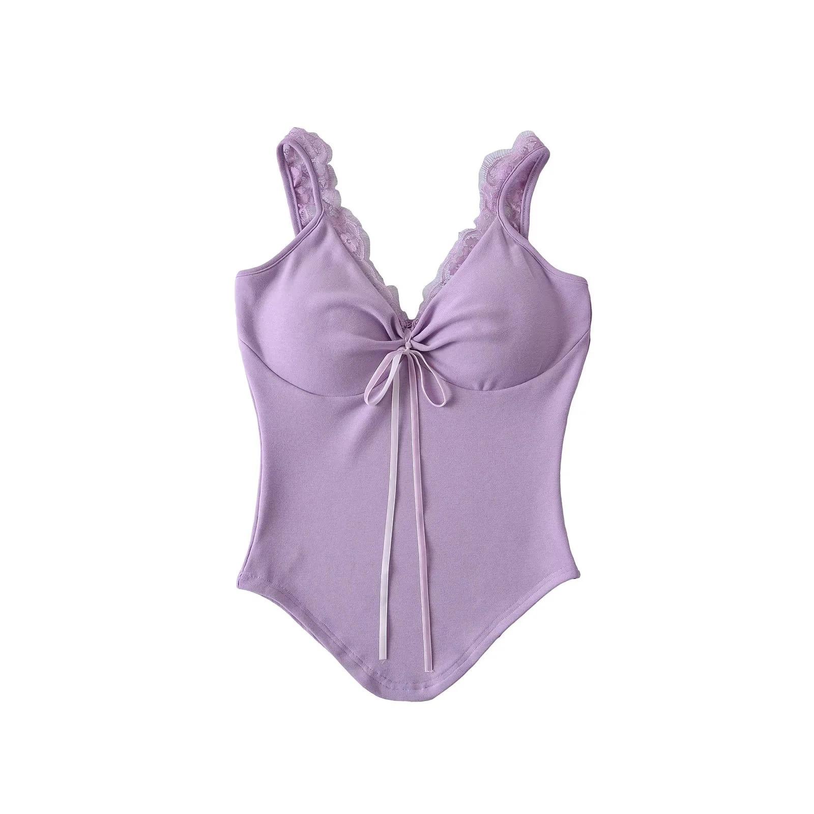Camisola de Encaje Estilo Deseo Puro para Mujer Camiseta Interior Base Chica Picante Ajustada Sexy con Almohadilla en el Pecho