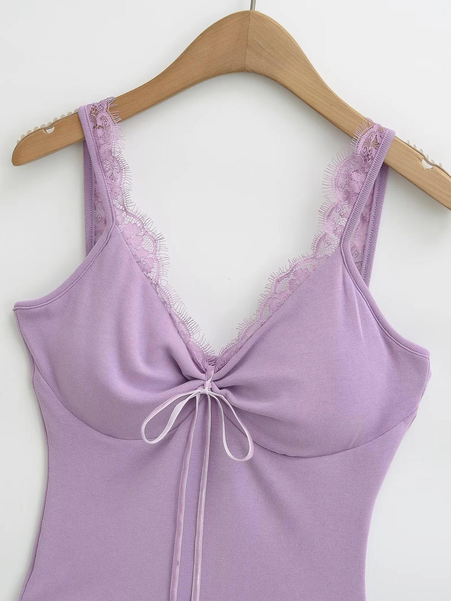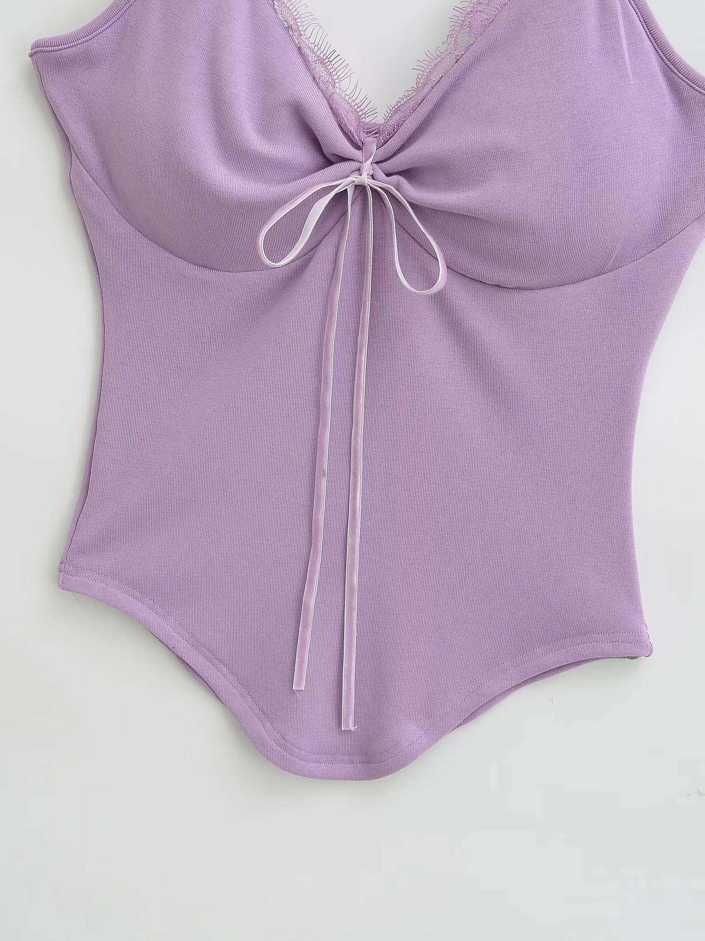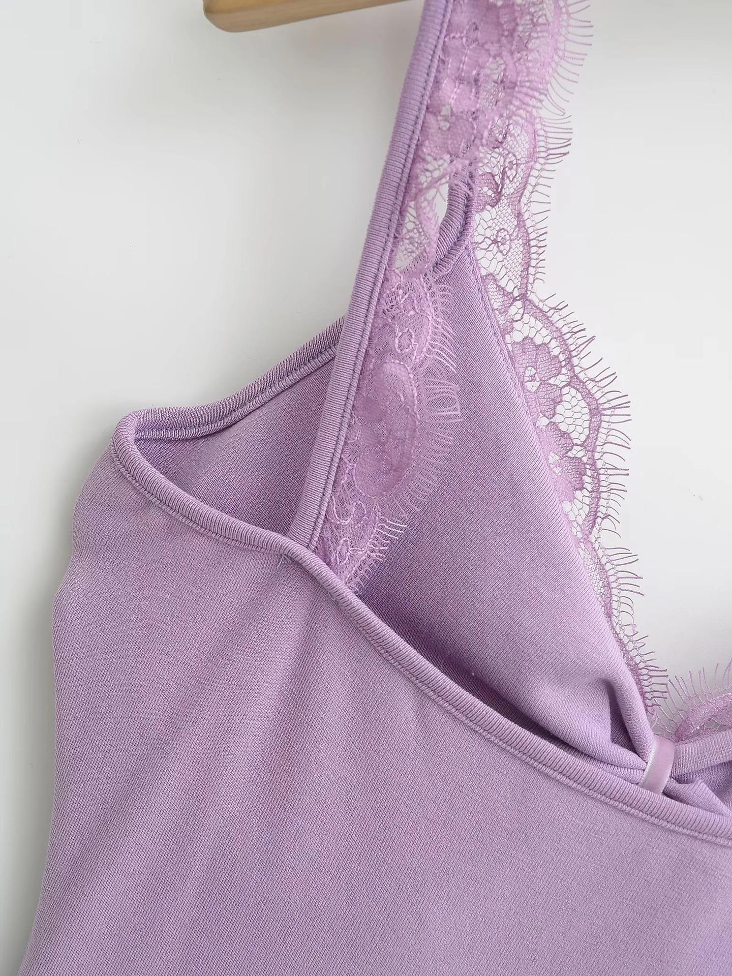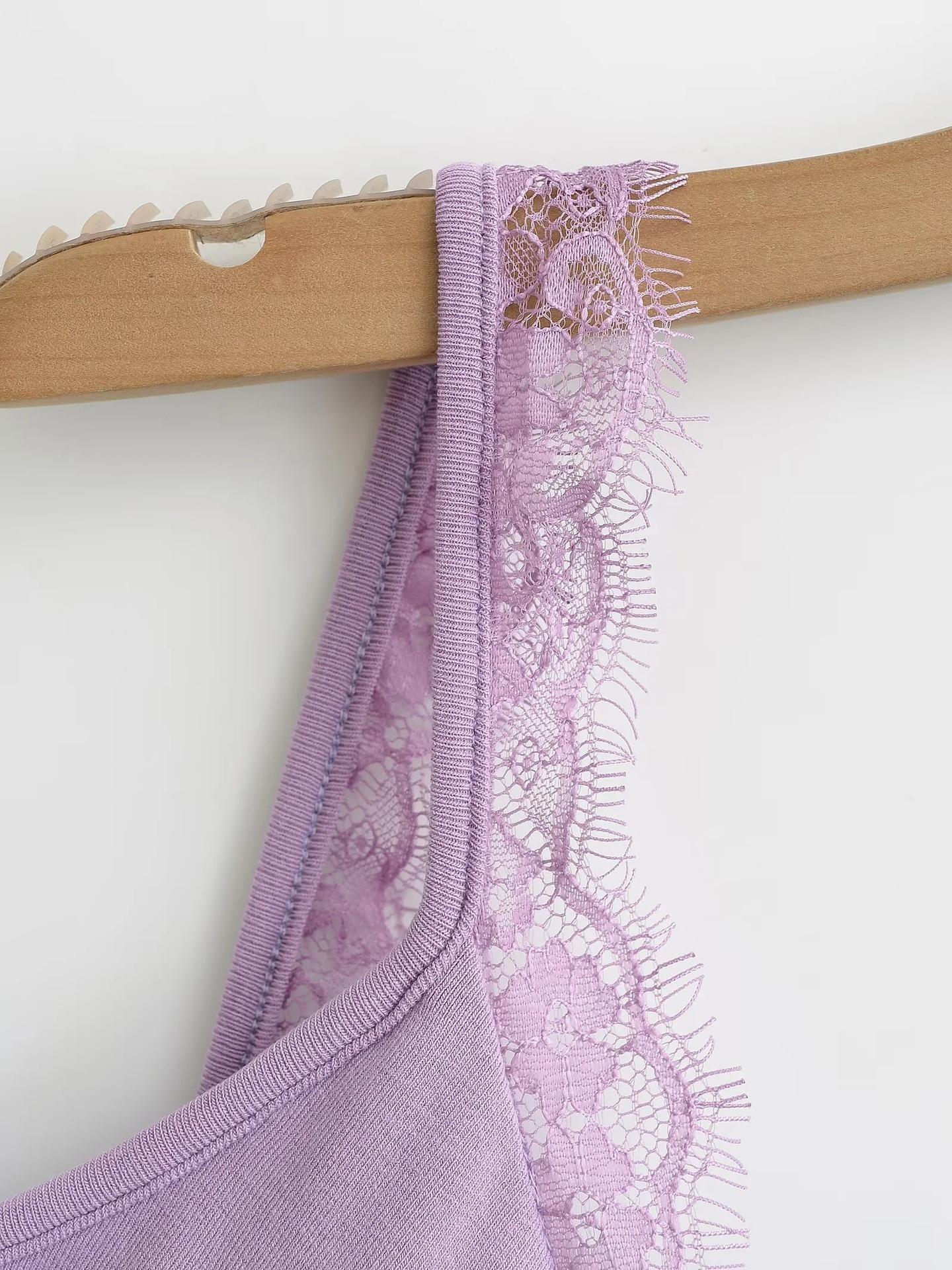 Camisola de Encaje Estilo Deseo Puro para Mujer Camiseta Interior Base Chica Picante Ajustada Sexy con Almohadilla en el Pecho