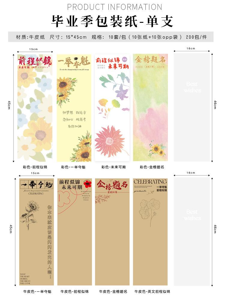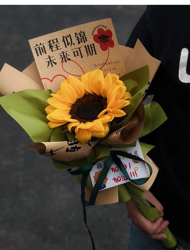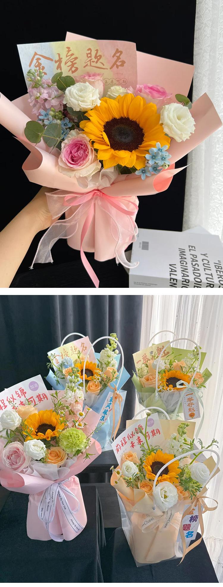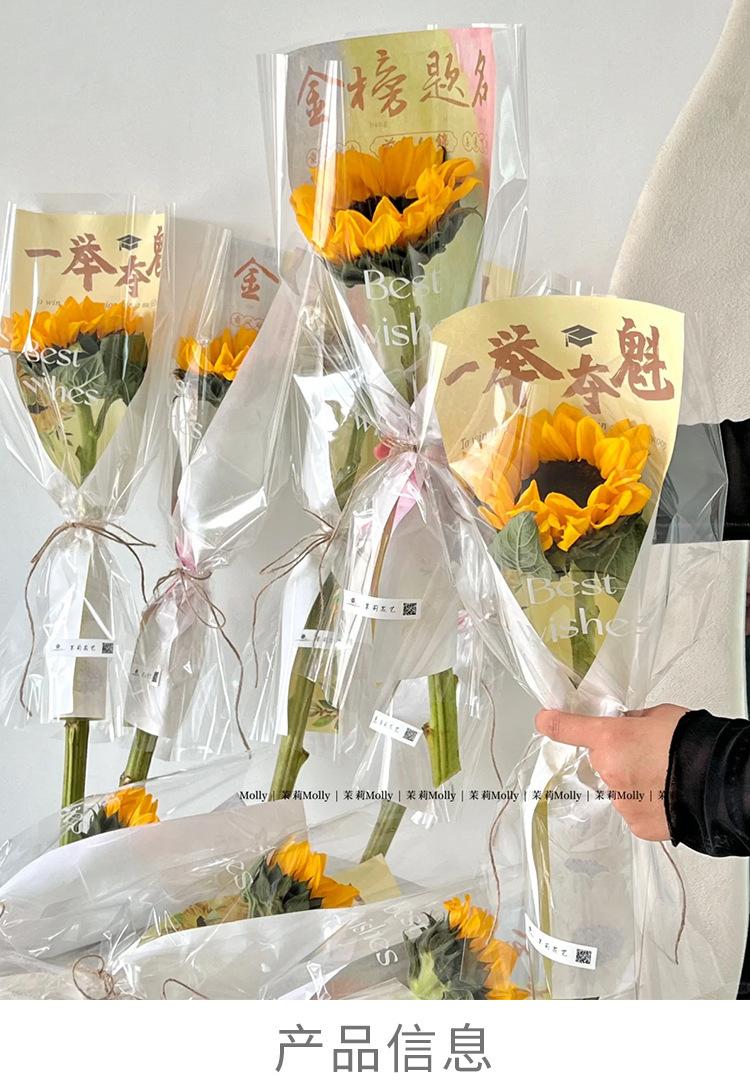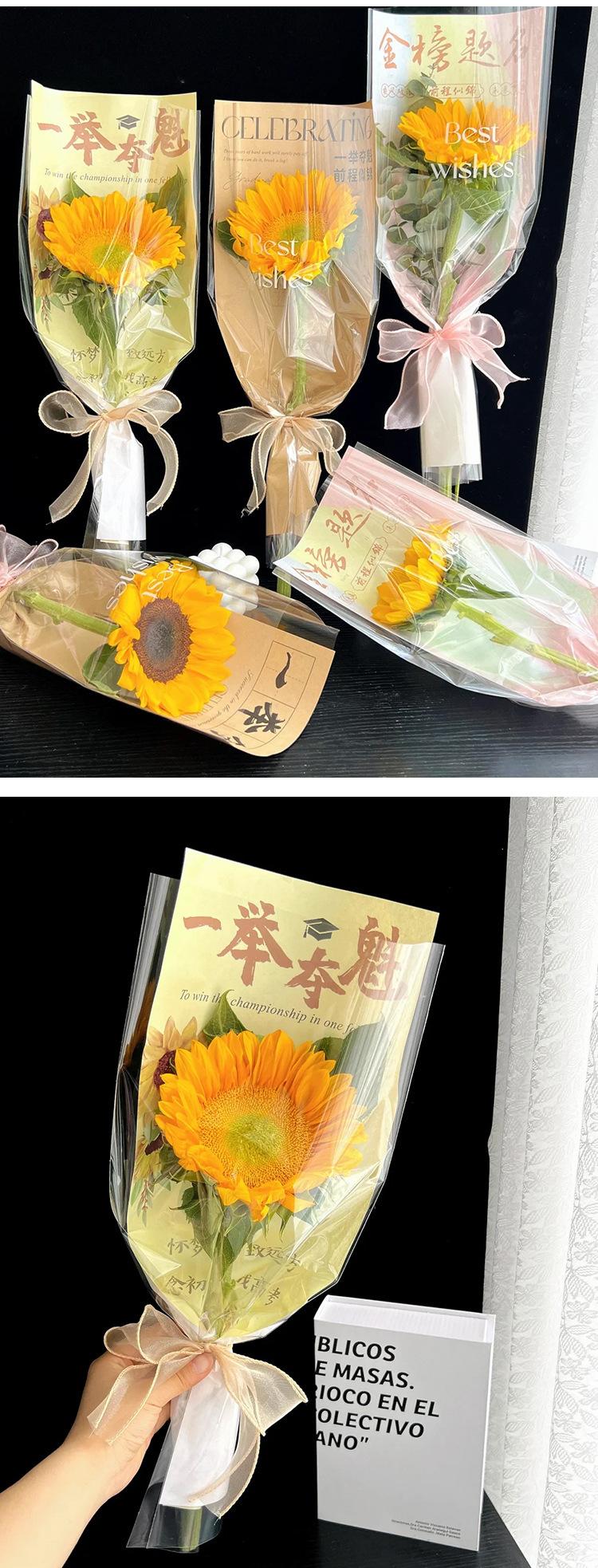 Bolsa de ramo de flores individuales para la temporada de graduación del examen de ingreso a la universidad de 2025, bolsa de ramo de girasol, material de embalaje de flores, bolsa transparente