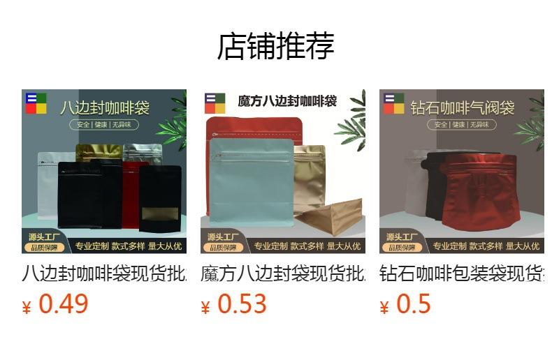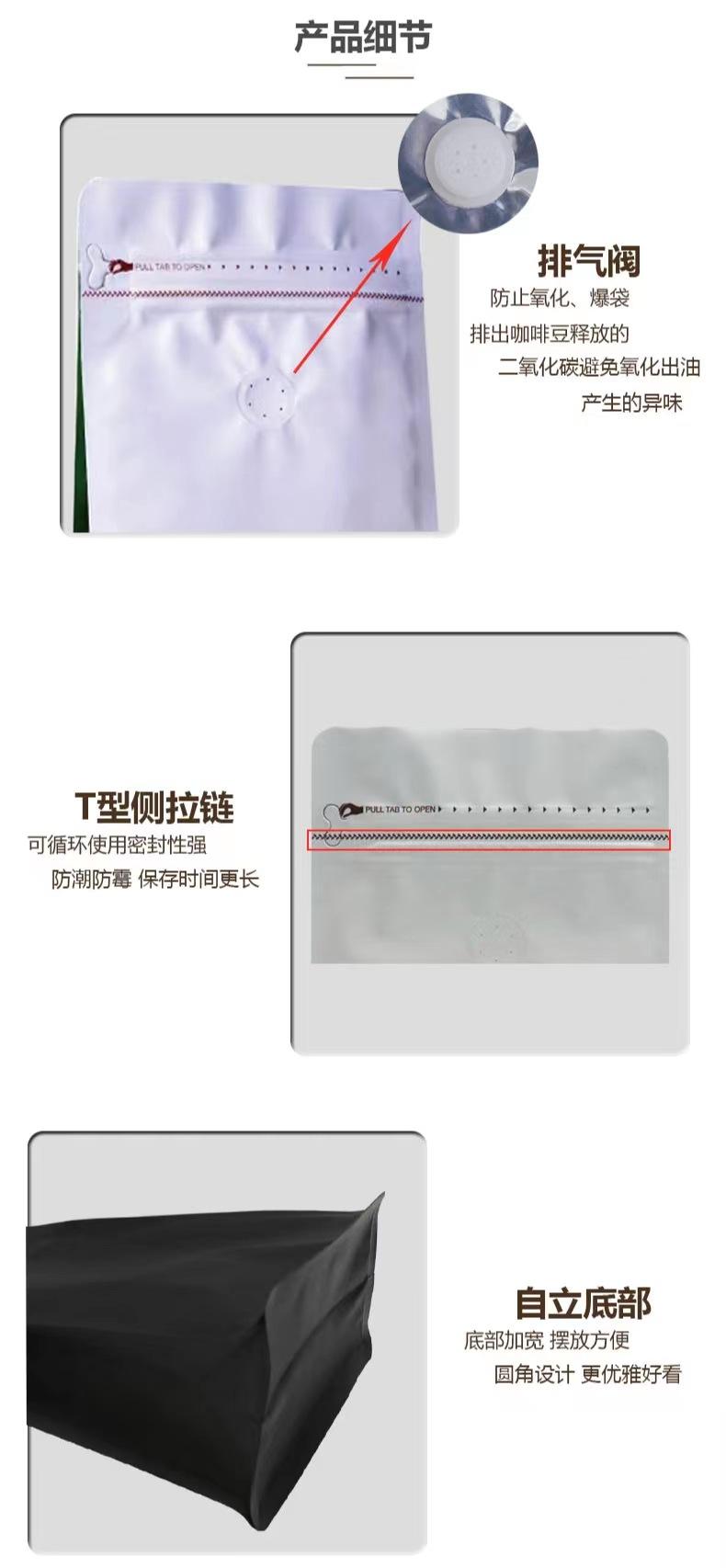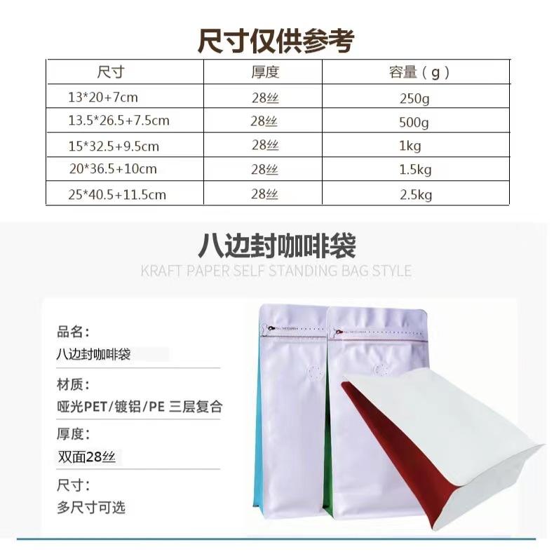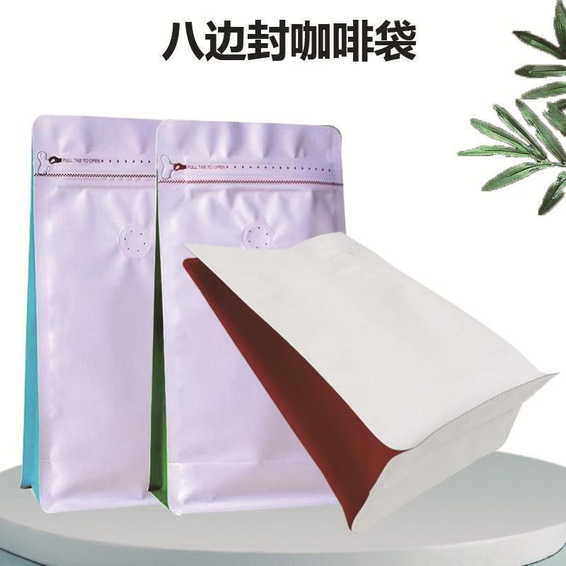 Bolsa de plástico aluminizada con cierre hermético para té, con válvula de aire, para envasado al por mayor, para café y alimentos, con sellado de ocho lados.