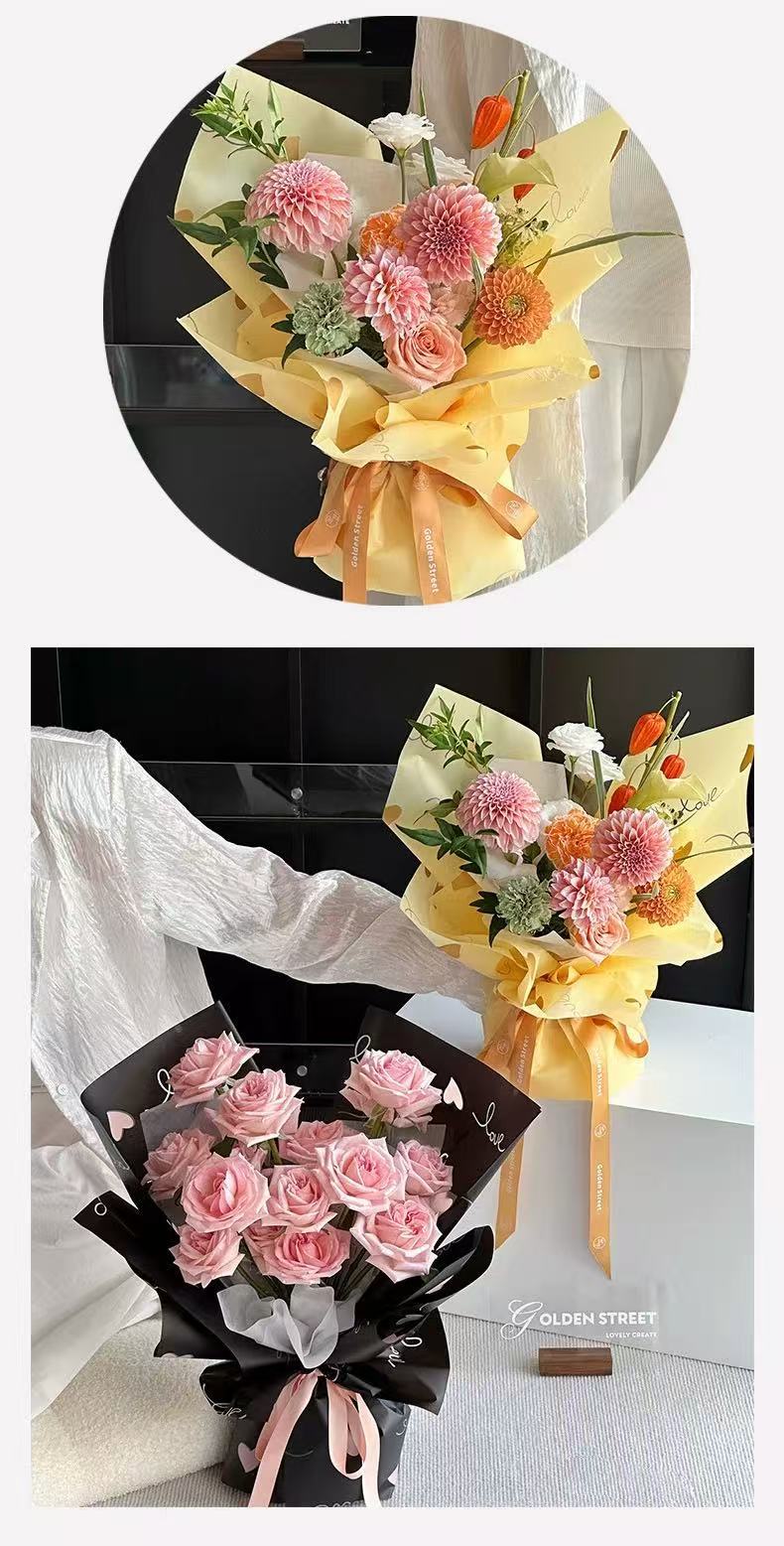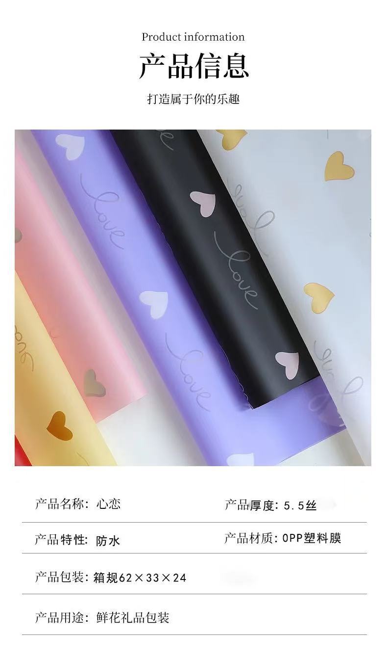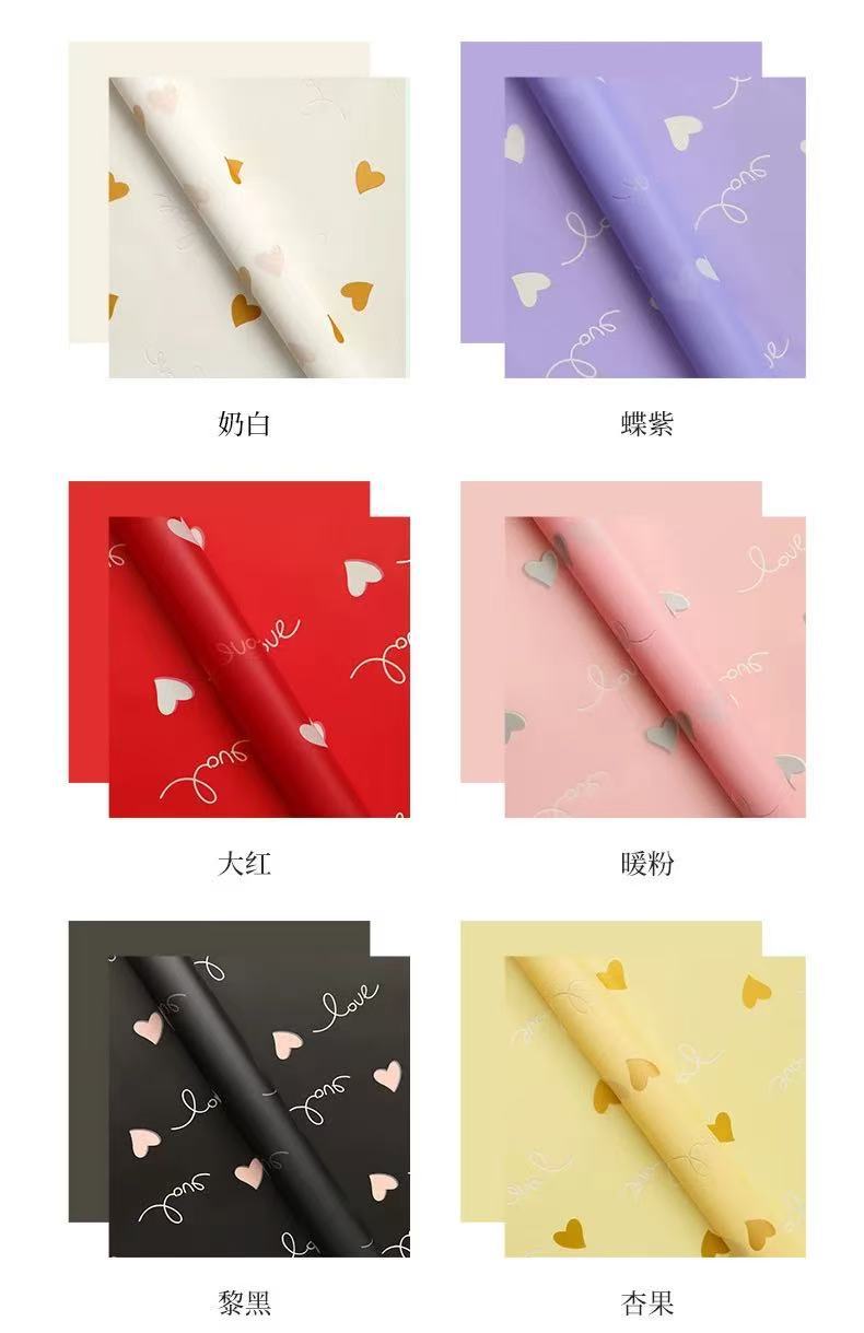 Papel de Envoltura de Corazón de Amor de Flor para el Día de San Valentín de Venta Caliente Día de San Valentín Chino Florería Hecho a Mano DIY Engrosado Impermeable Material de Embalaje para Ramo