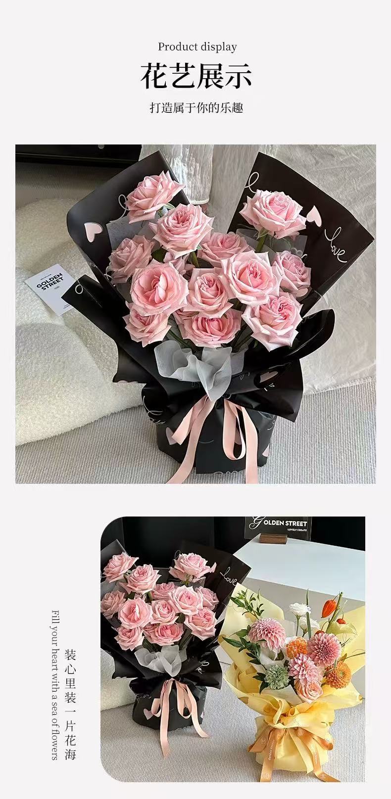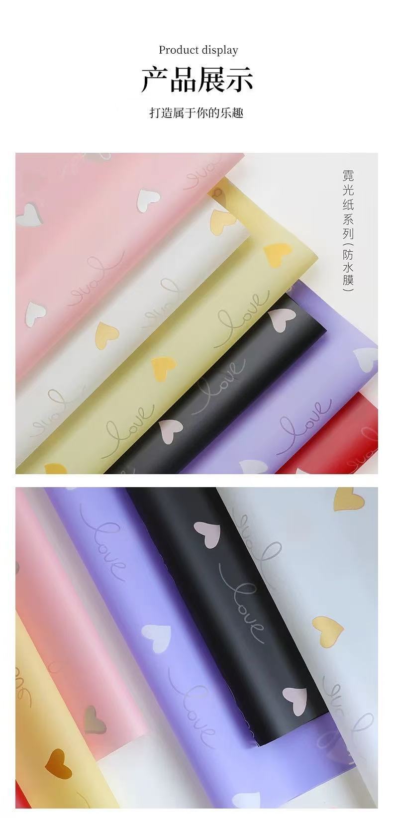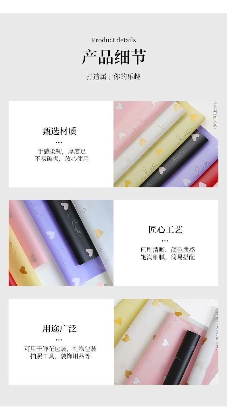 Papel de Envoltura de Corazón de Amor de Flor para el Día de San Valentín de Venta Caliente Día de San Valentín Chino Florería Hecho a Mano DIY Engrosado Impermeable Material de Embalaje para Ramo