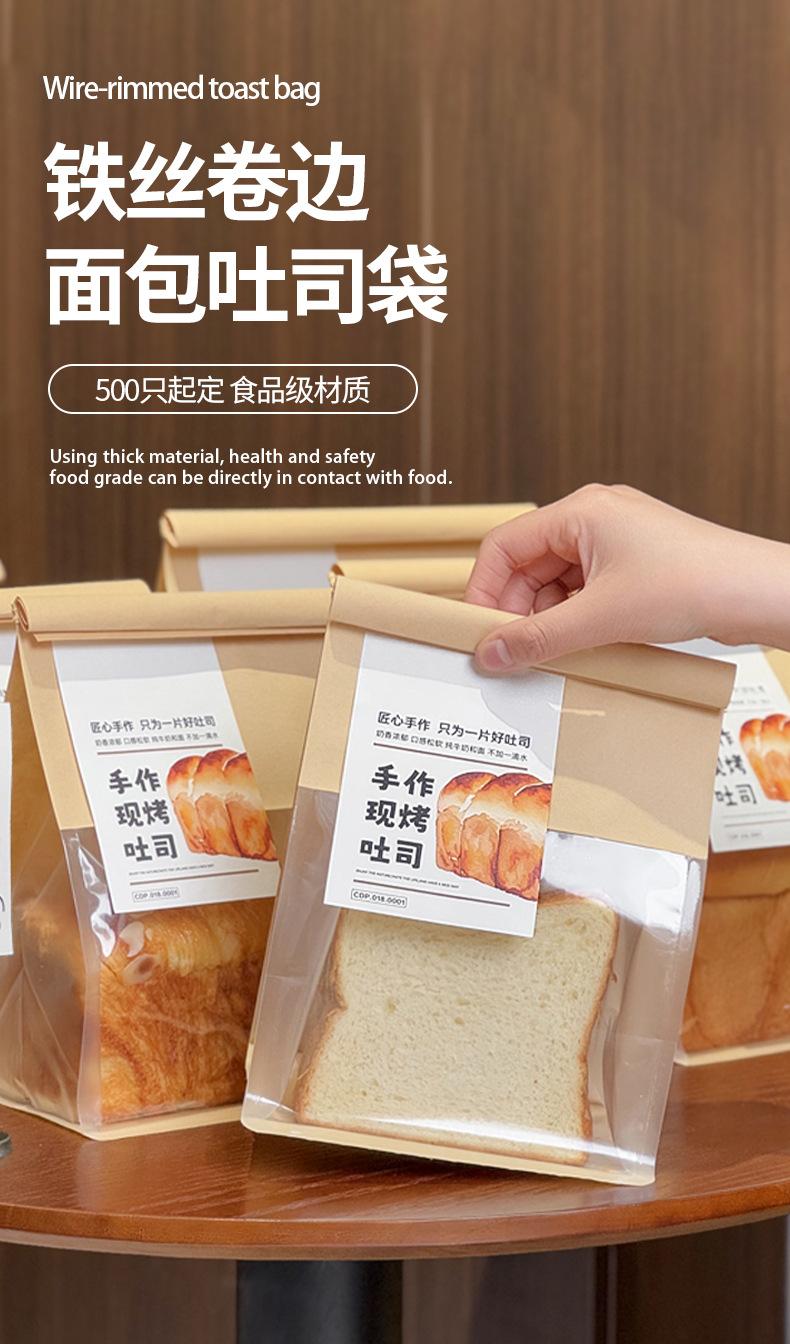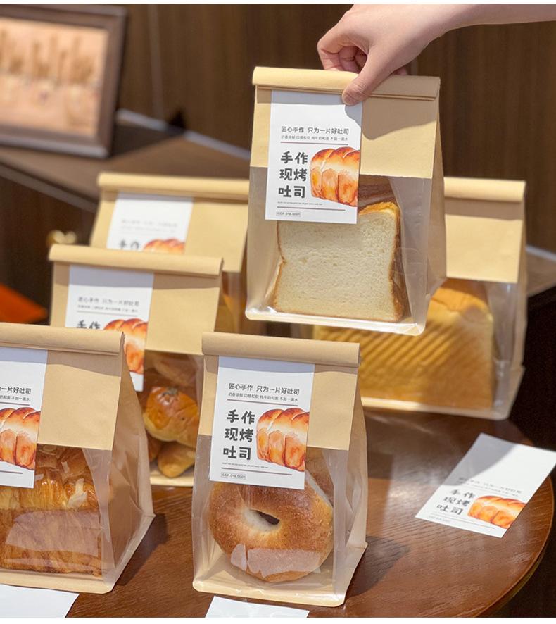 Bolsa de Empaque para Pan Tostado Autosellable Alambre Rizado Horneado Papel Kraft Grado Alimenticio 450g Bolsa para Pan Tostado Japonés Pan Rebanado