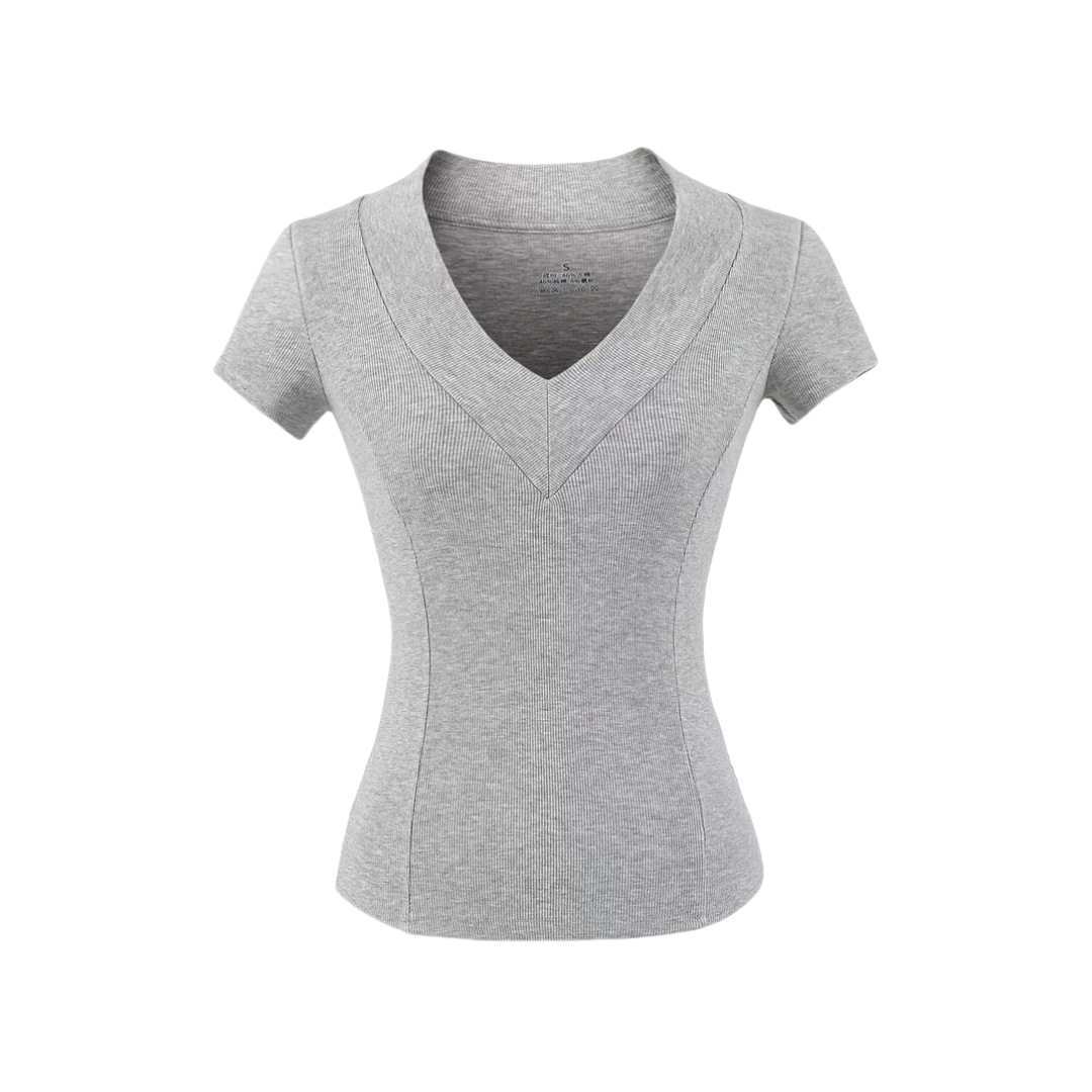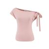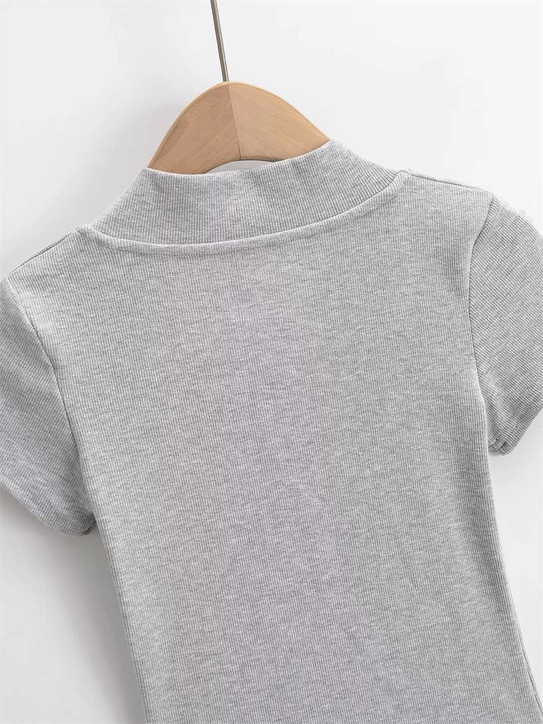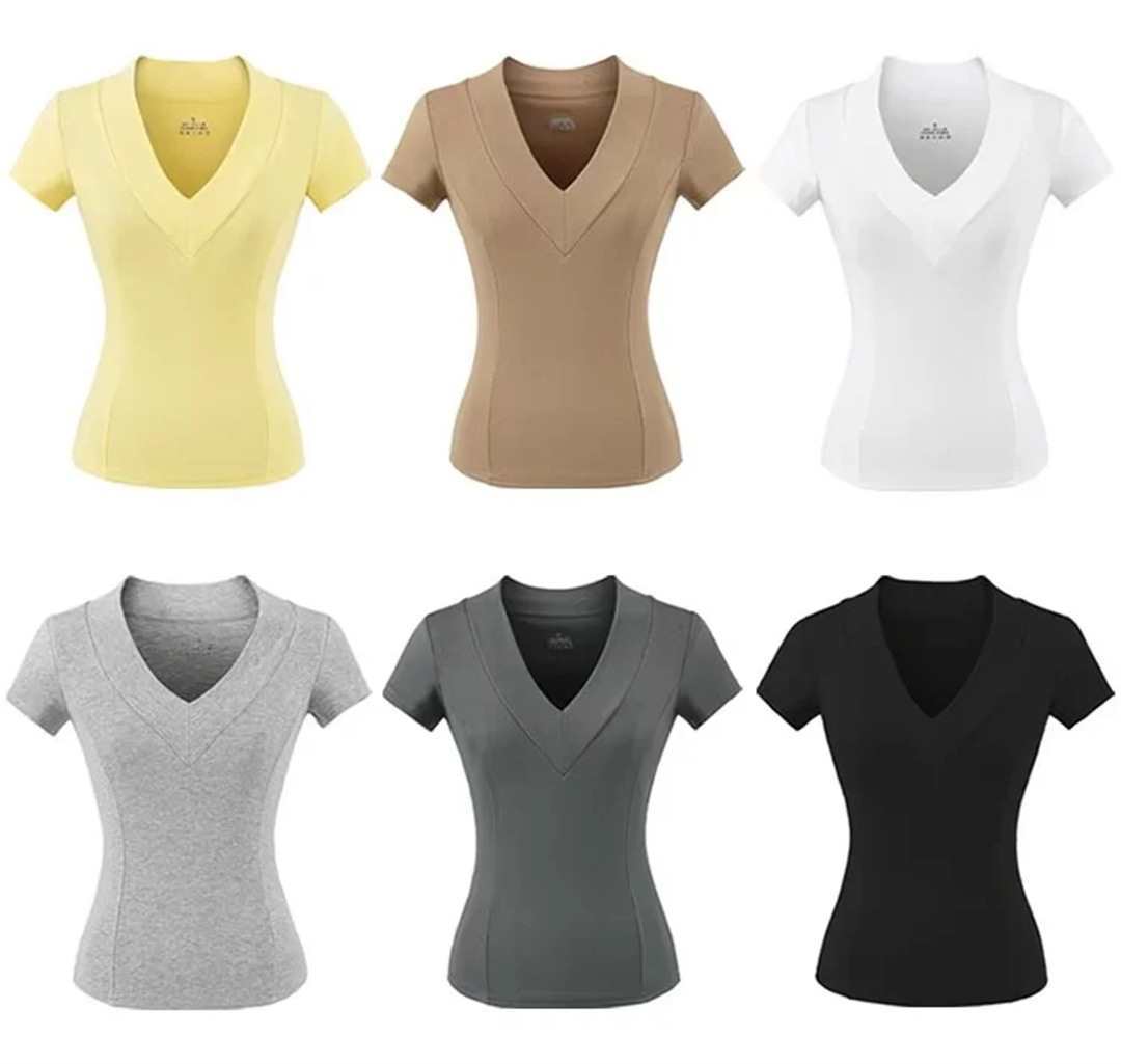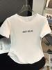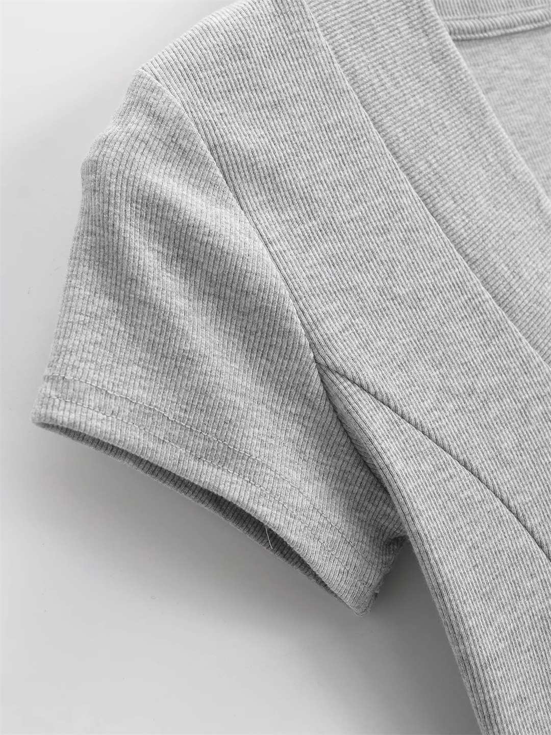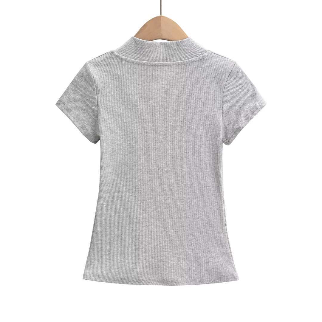 Retro Slim Cuello Profundo Color Sólido Elástico para Mujer Sexy Americano Verano Camisa Nicho Hombro Derecho Top Manga Corta Chica Caliente
