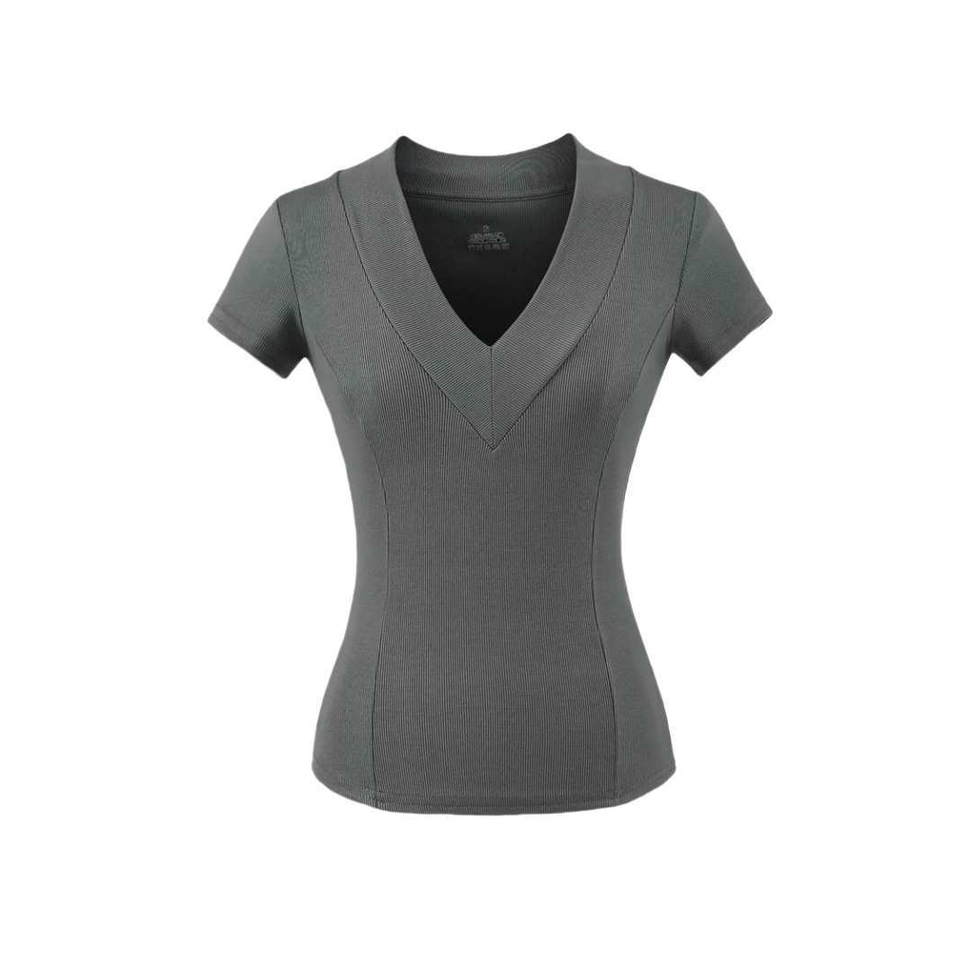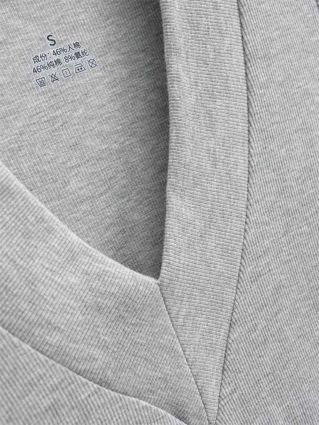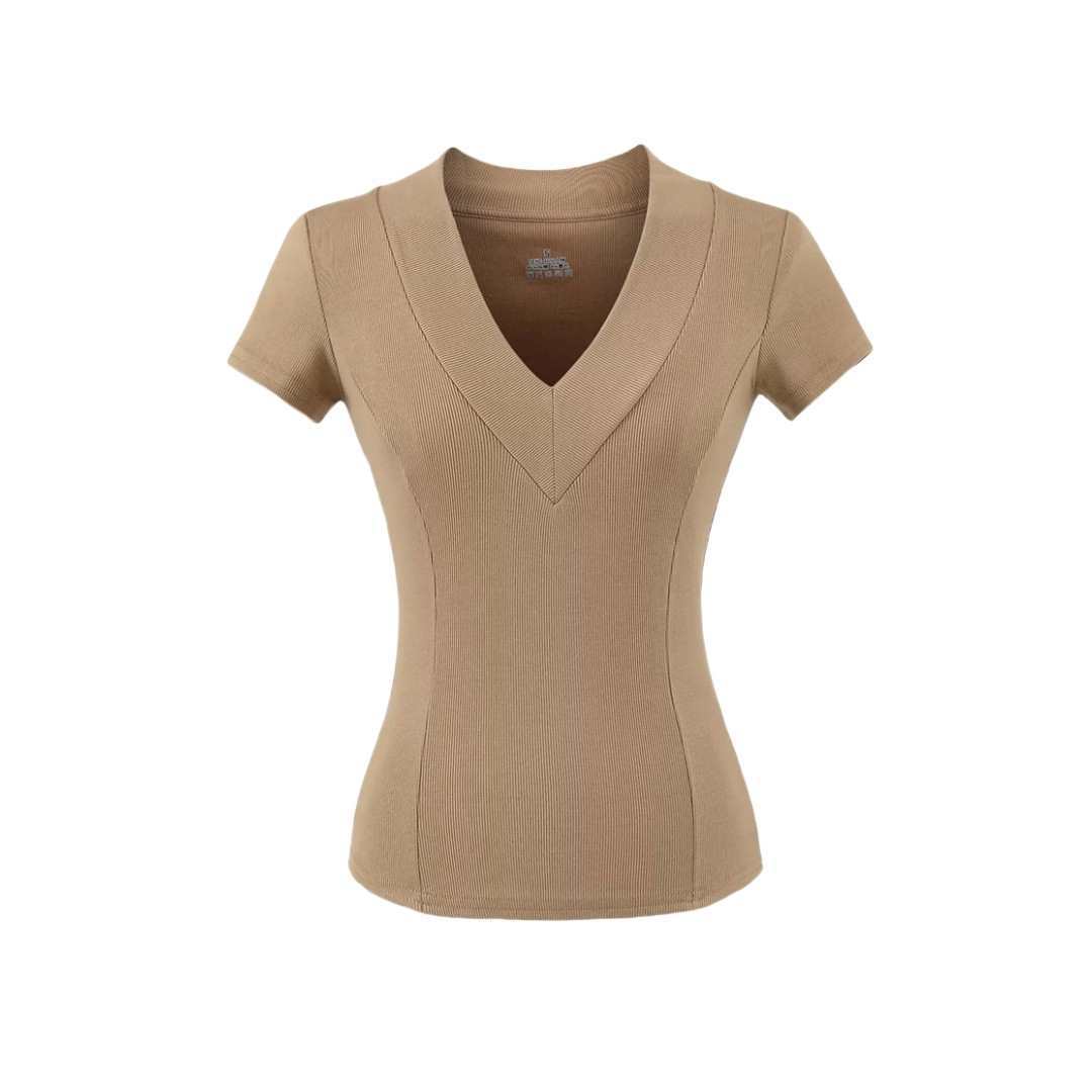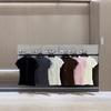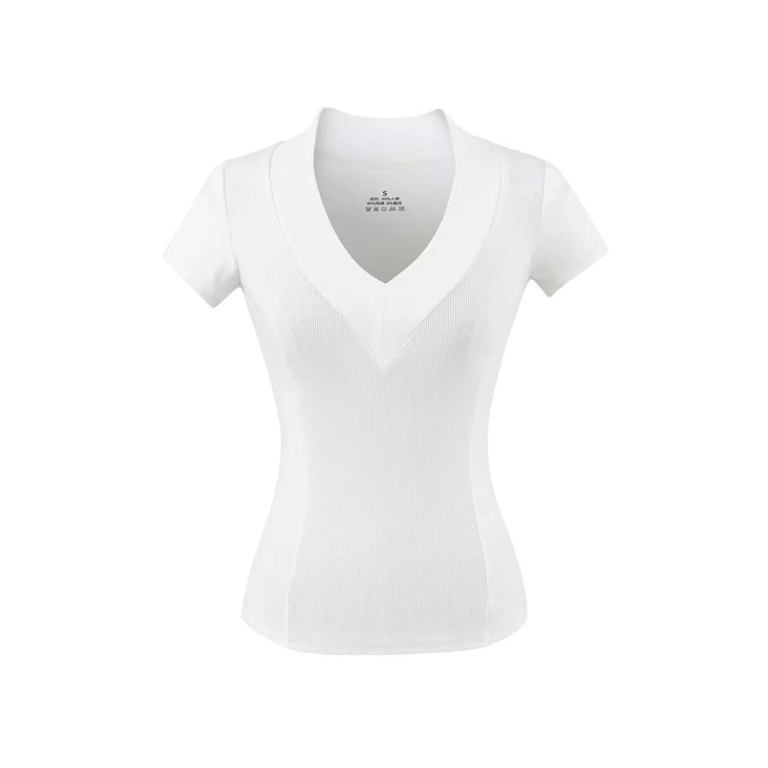 Retro Slim Cuello Profundo Color Sólido Elástico para Mujer Sexy Americano Verano Camisa Nicho Hombro Derecho Top Manga Corta Chica Caliente