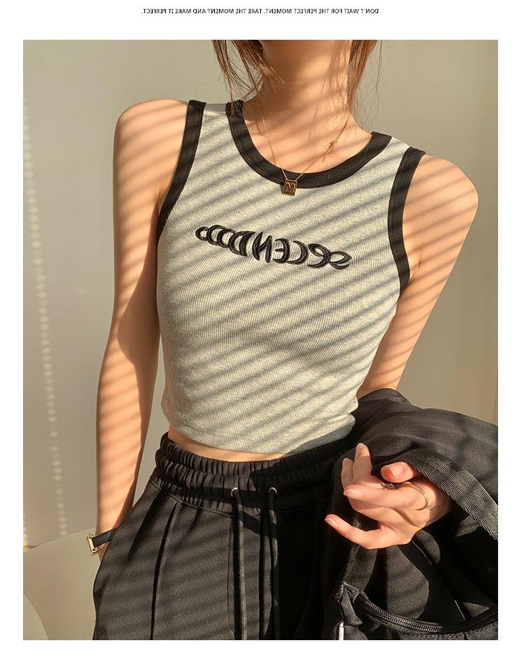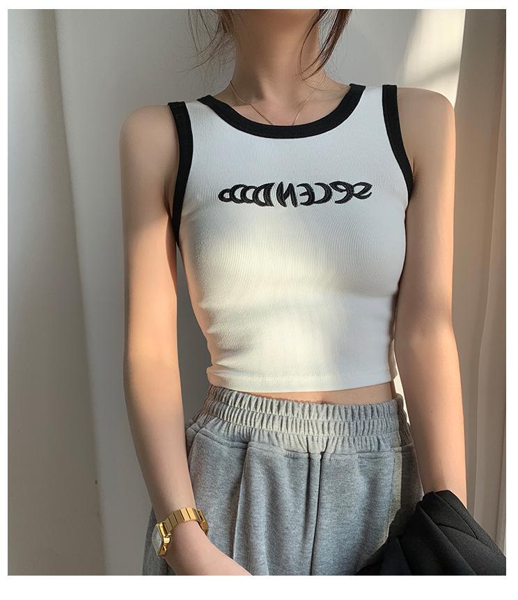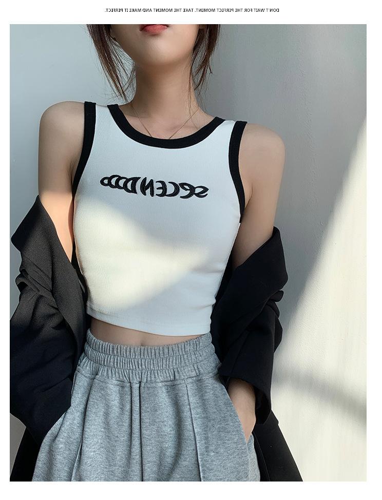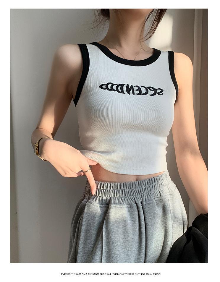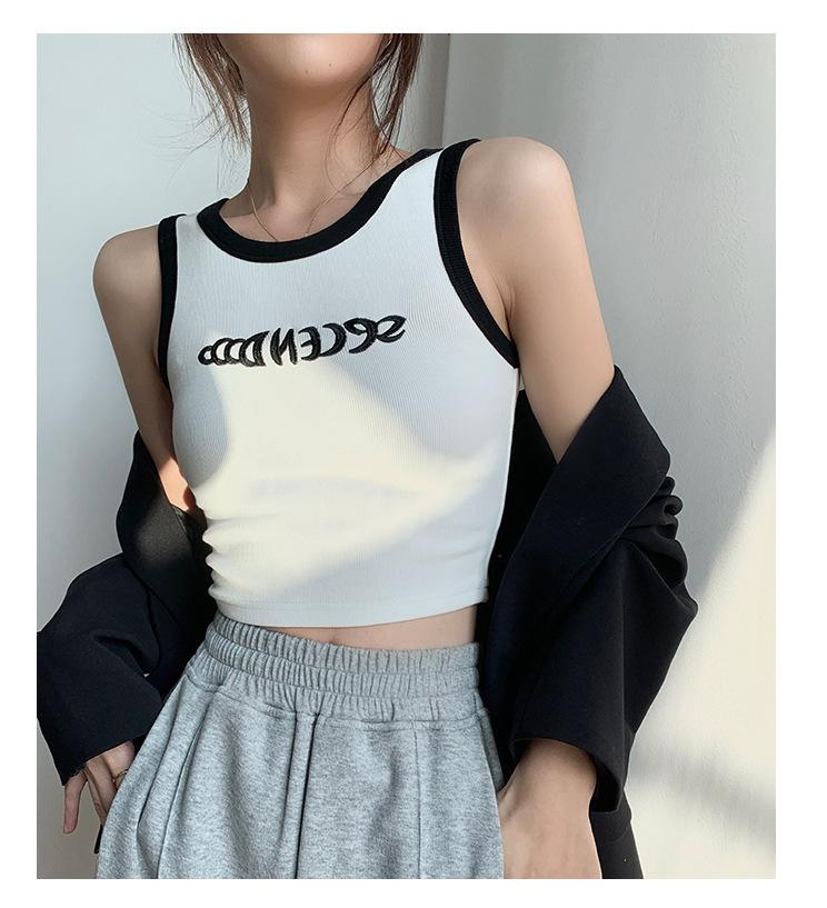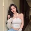 Camisola de verano para mujer, estilo 2024, nueva prenda exterior, fina, corta, con ombligo al descubierto, blanca, ajustada, sin mangas.