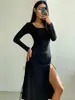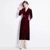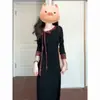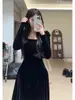 Vestido Hepburn francés negro con cuello en V de terciopelo dorado, vestido elegante de otoño de alta calidad, vestido interior