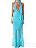2025 Nuevo Vestido Halter de Verano Europeo y Americano Transfronterizo de Moda Sexy Color Puro Gasa Escote en V Profundo Sin Espalda Falda Larga para Mujer
