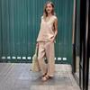 Traje de mujer de primavera y verano 2024, nuevo, de algodón y lino, informal, holgado, de dos piezas, sin mangas, con pantalones holgados