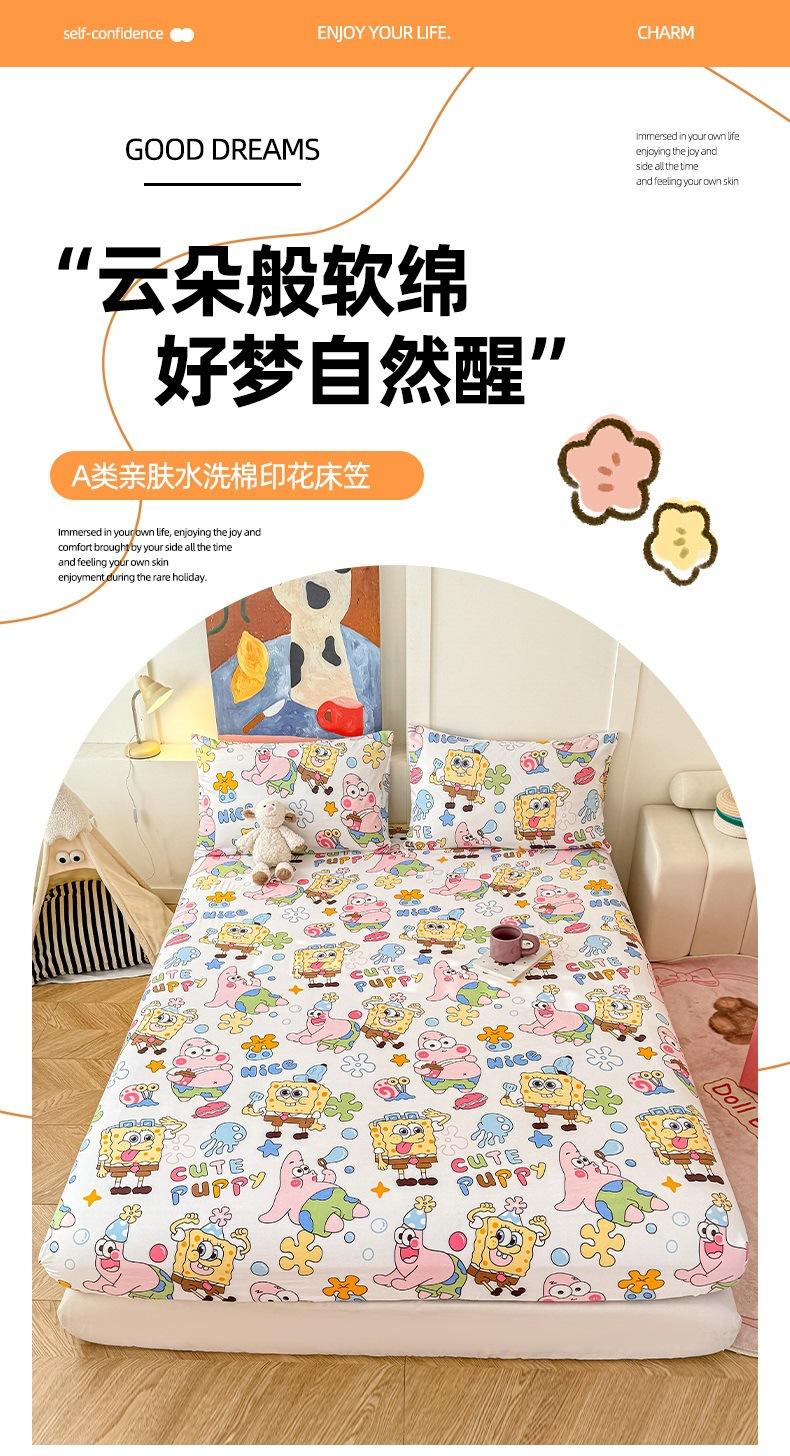 2025 nuevo gorro de cama de algodón lavado clase A respetuoso con la piel con estampado de dibujos animados lindo