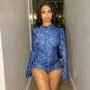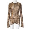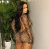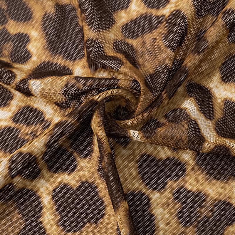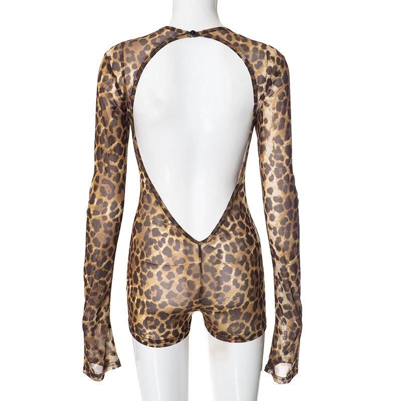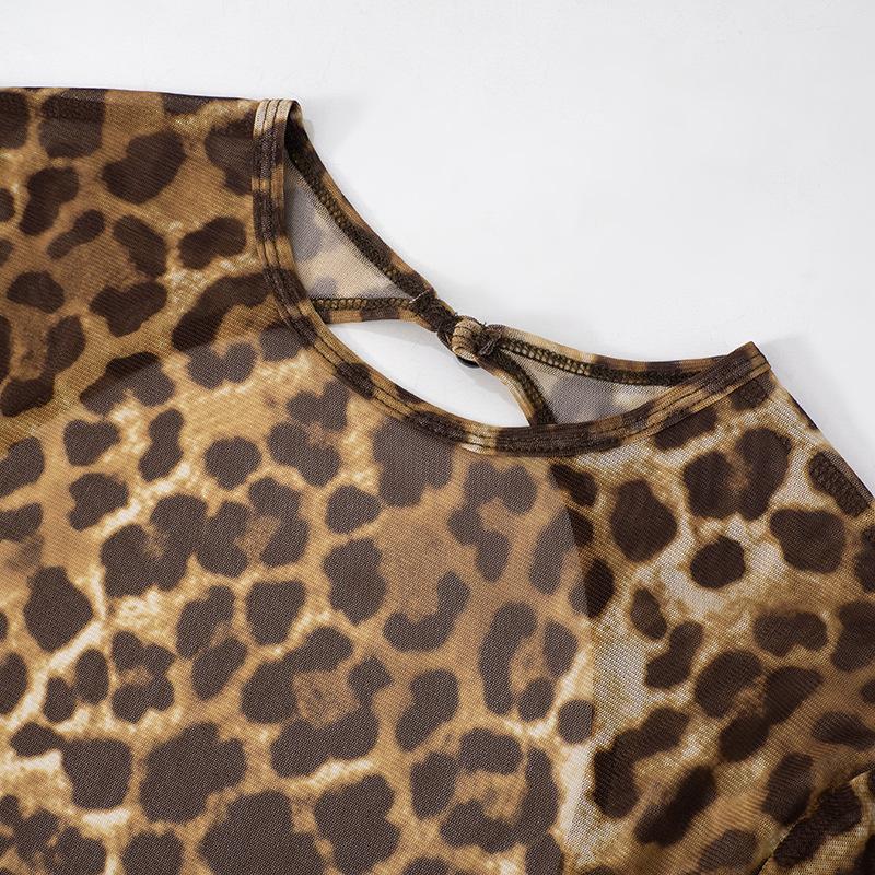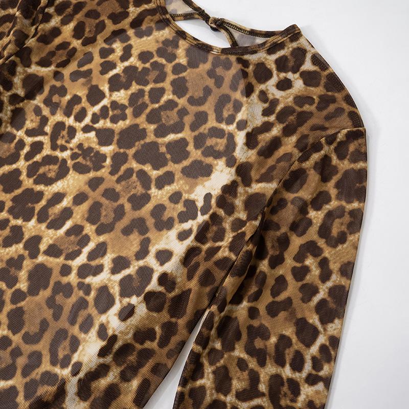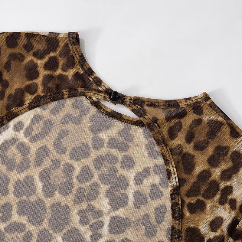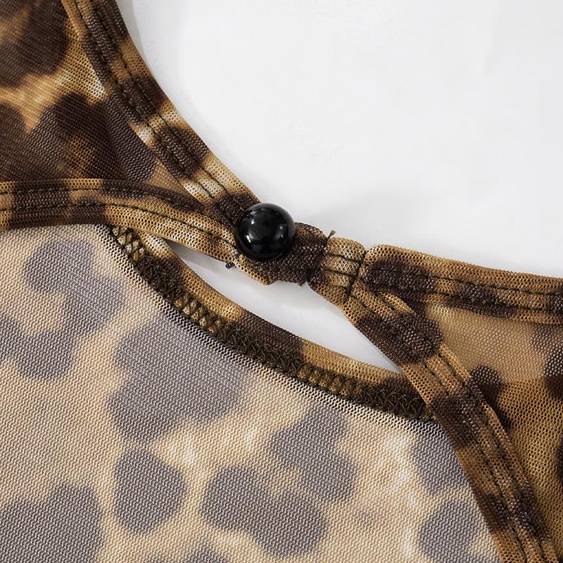 Mono de cuello redondo ajustado para mujer, con personalidad transfronteriza europea y americana, de primavera y verano, con estampado de leopardo, de malla, hueco, con botones grandes sin espalda