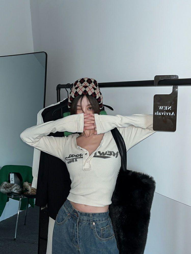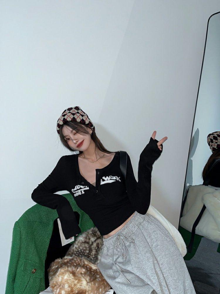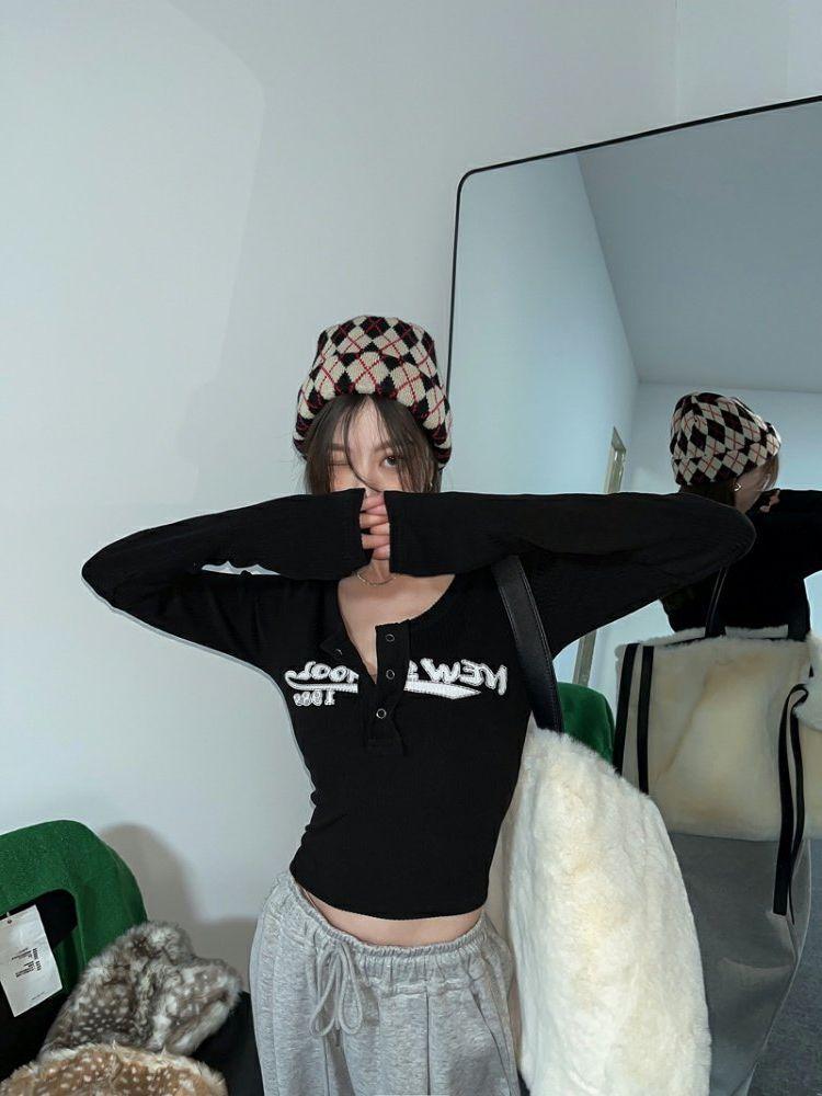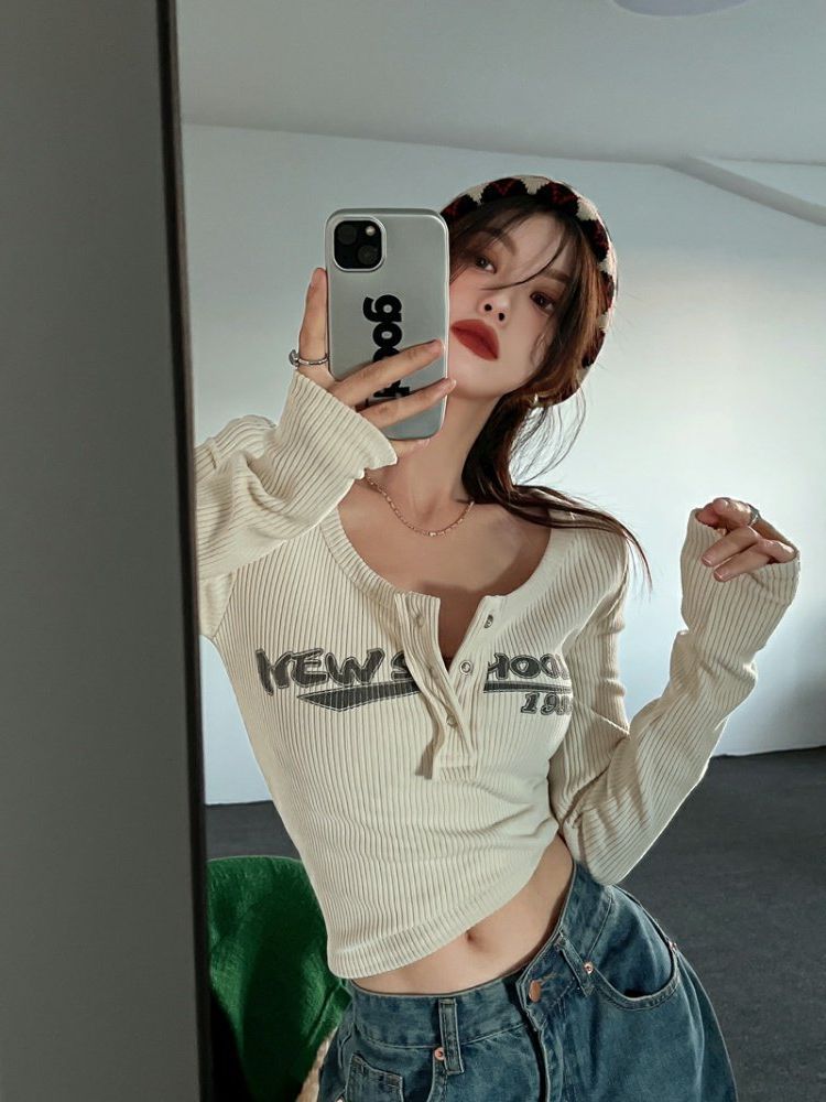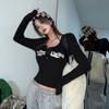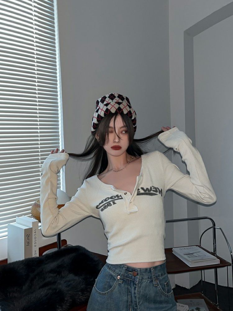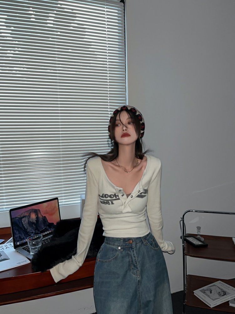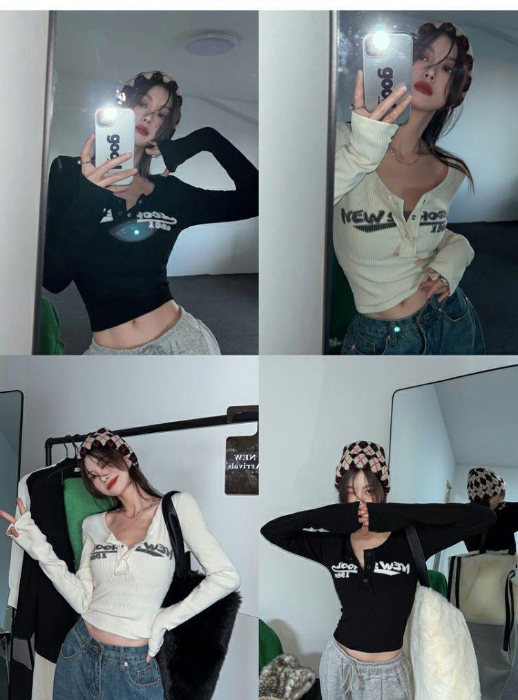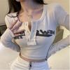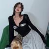 Camiseta Sexy de Manga Larga con Cuello en V Corta Pura Spice Girls para Mujer Otoño e Invierno Top Chic Camiseta Básica Trendy Comercio Exterior Transfronterizo Venta al por Mayor