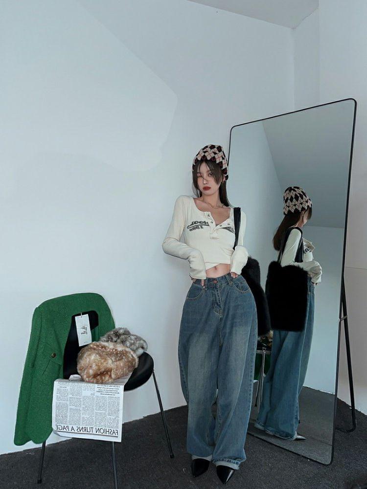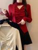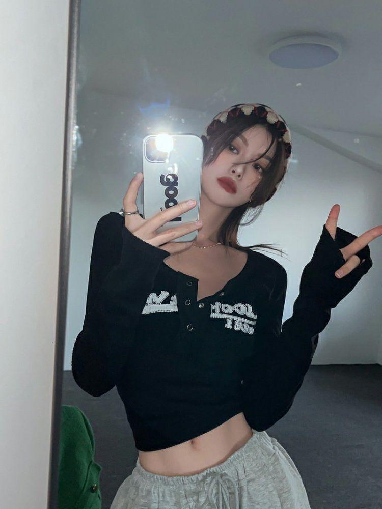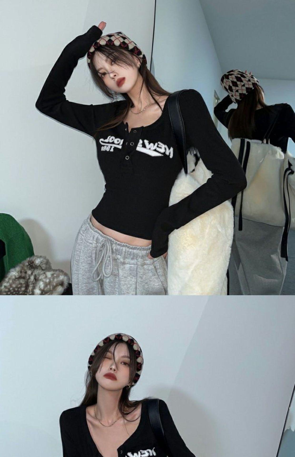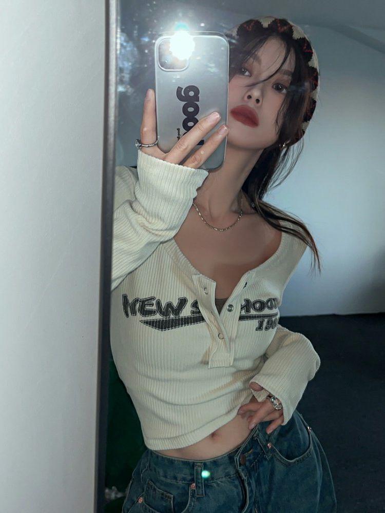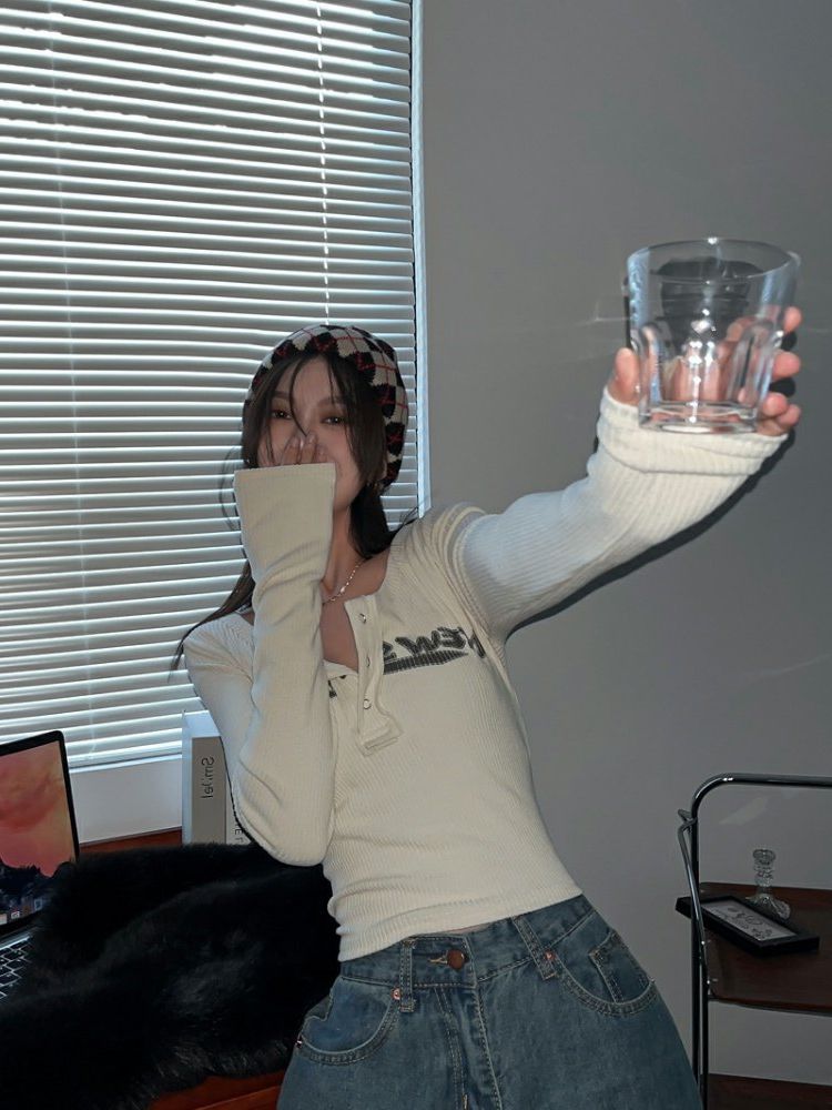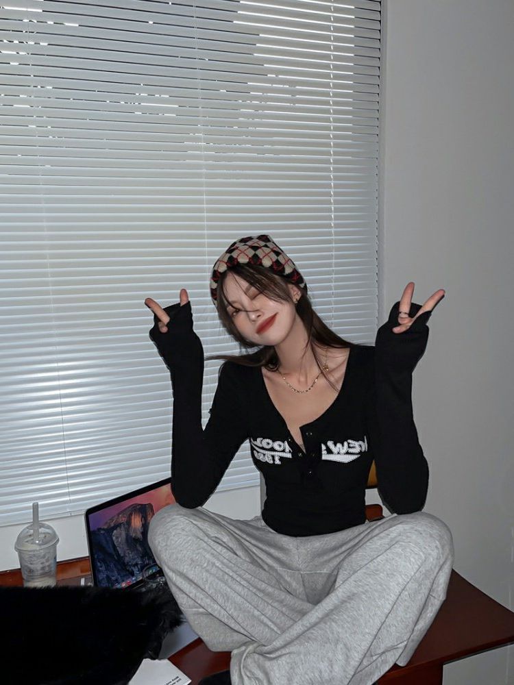 Camiseta Sexy de Manga Larga con Cuello en V Corta Pura Spice Girls para Mujer Otoño e Invierno Top Chic Camiseta Básica Trendy Comercio Exterior Transfronterizo Venta al por Mayor