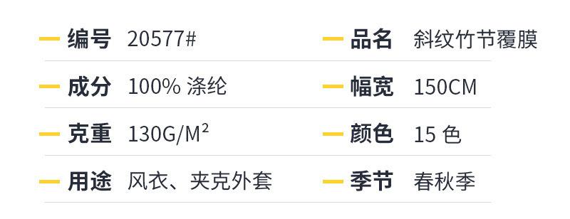 Sarga Recubrimiento de Bambú Nuevo Tejido Repelente al Agua Cortavientos Chaqueta de Algodón Chaqueta de Montañismo Tejido Listo para la Venta