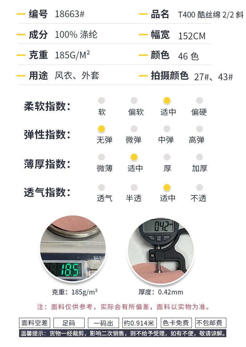Fabricante de origen Venta al por mayor de punto T400 Algodón de seda fría 2/2 Diagonal Imitación Algodón Poliéster Tela Parka Cortavientos Tela