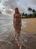 Vestido sexy sin tirantes con cuello y abertura lateral, estampado de leopardo, estilo europeo y americano, para mujer, verano 2025